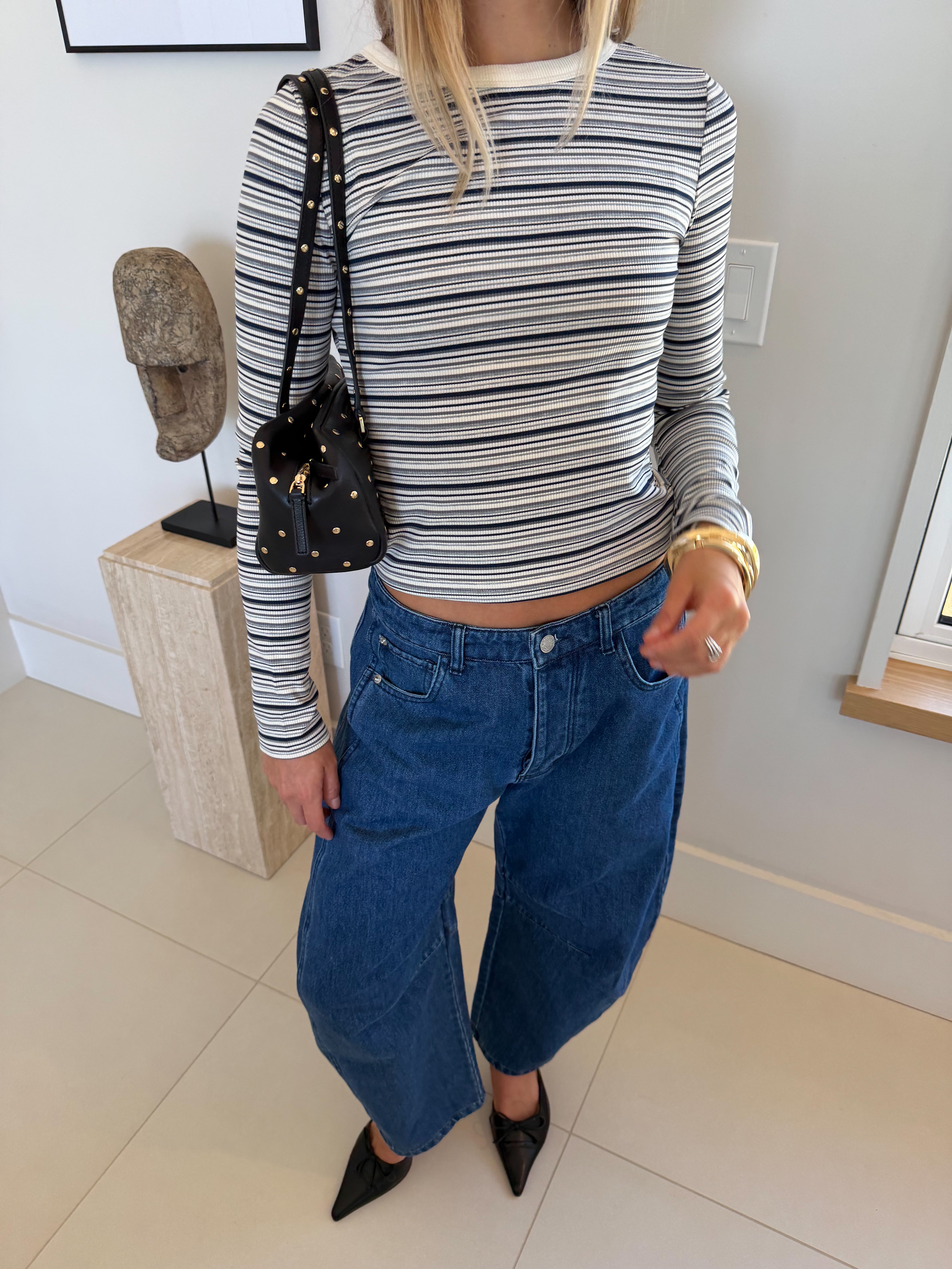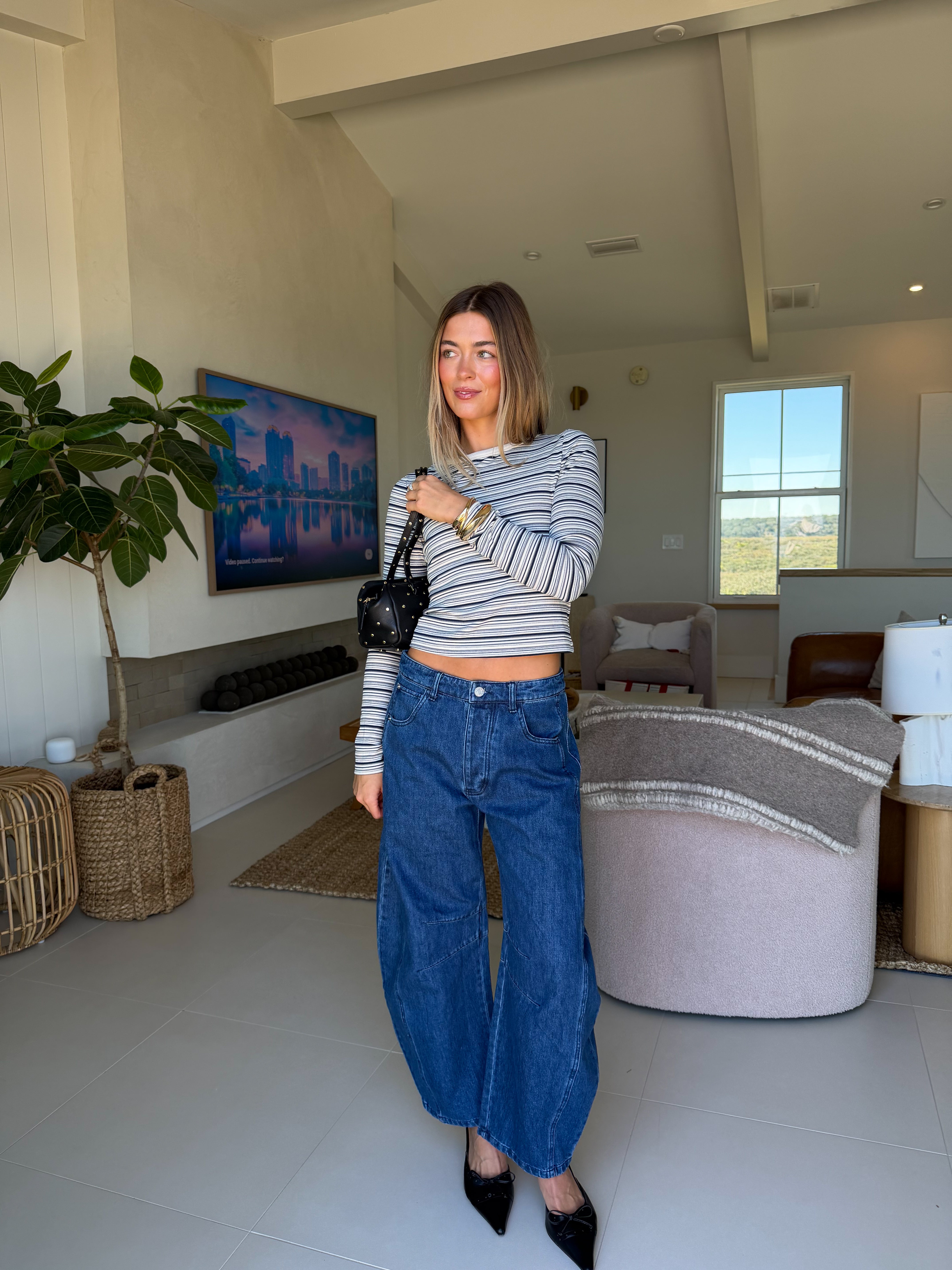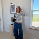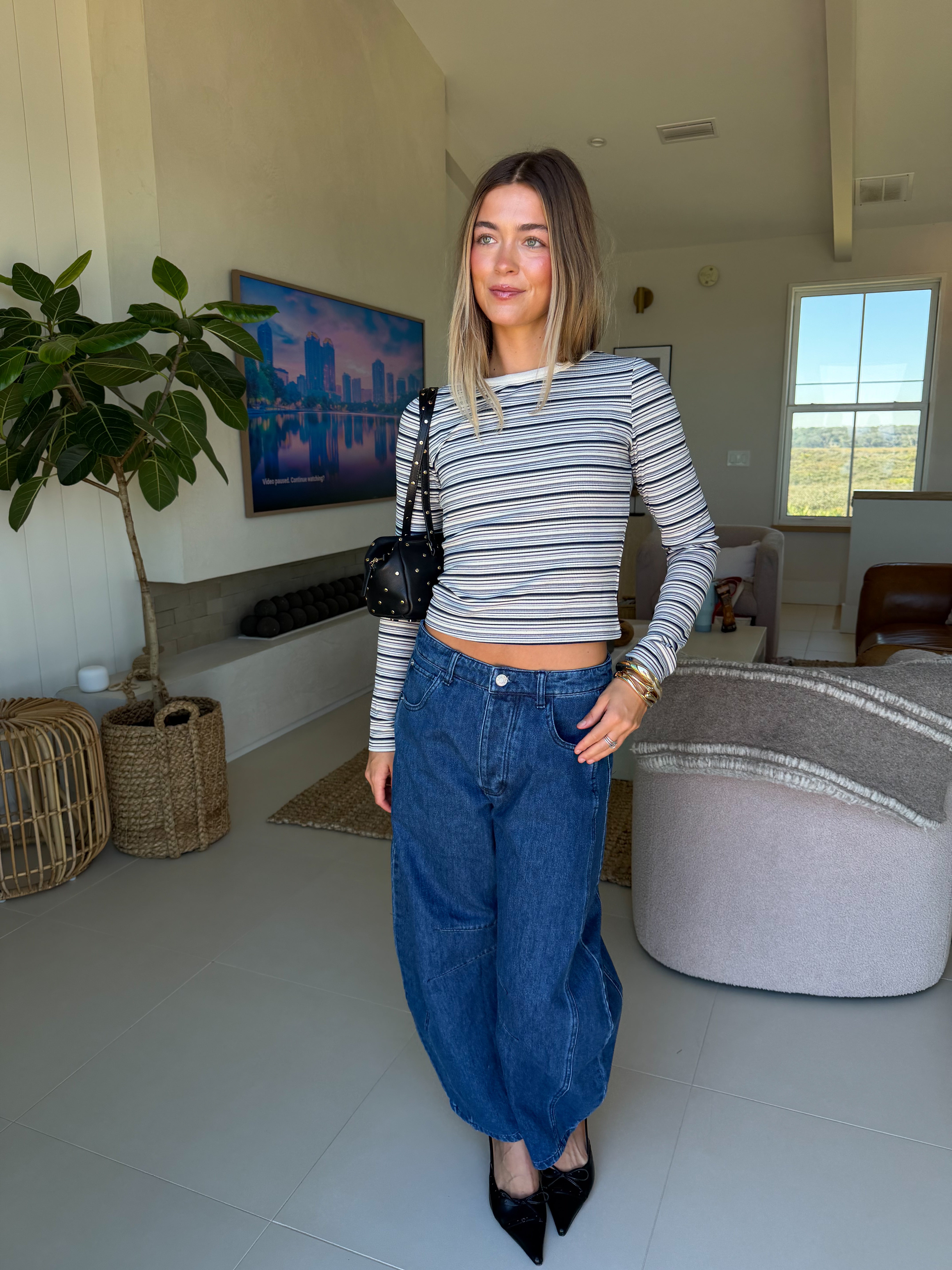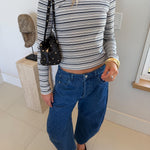The Ava Striped Long Sleeve in Grey Multi is your new wardrobe essential for laid-back, effortless style. Featuring timeless stripes with a striking contrast neckline, this top adds instant personality to any look. The stretchy, breathable fabric moves with you for all-day comfort, while long sleeves make it perfect for layering through every season. Pair it with your favorite jeans for casual vibes or dress it up with a skirt—this versatile striped top is the chic, youthful piece you'll reach for again and again.