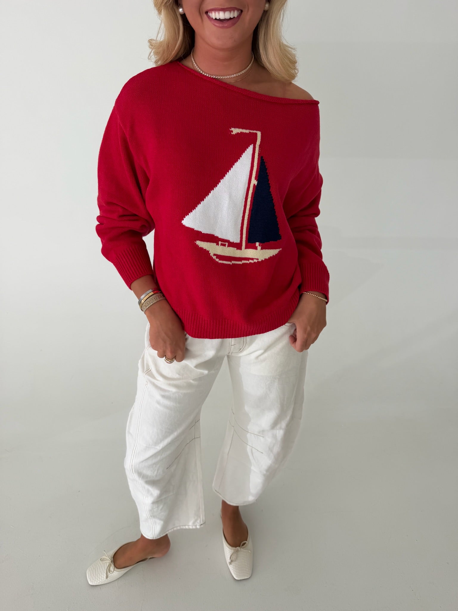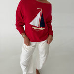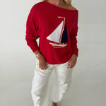 Boat Neck Sweater Top -Red