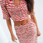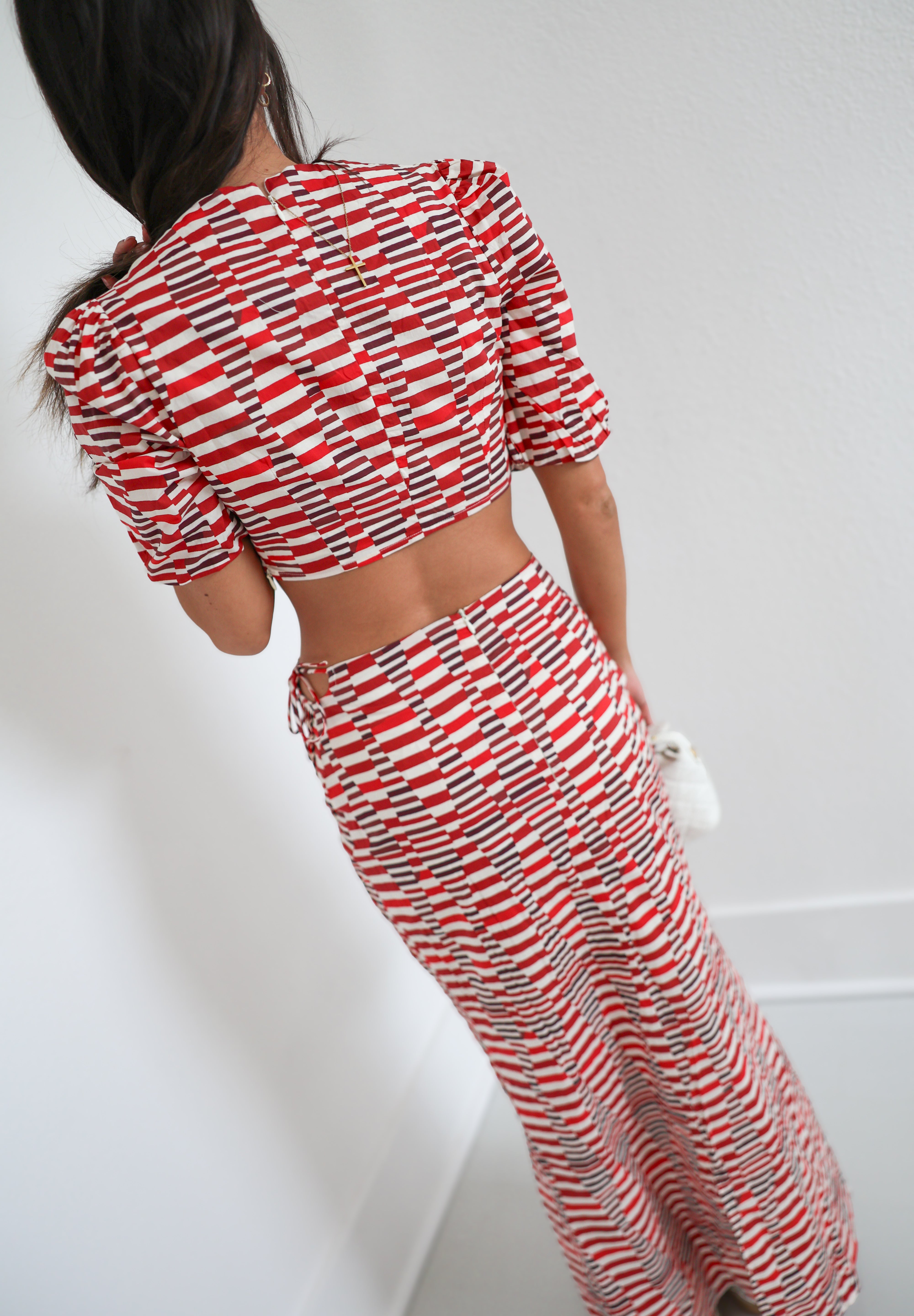 Brooklyn Bubble Sleeve Maxi Skirt Set- Red/Burgundy