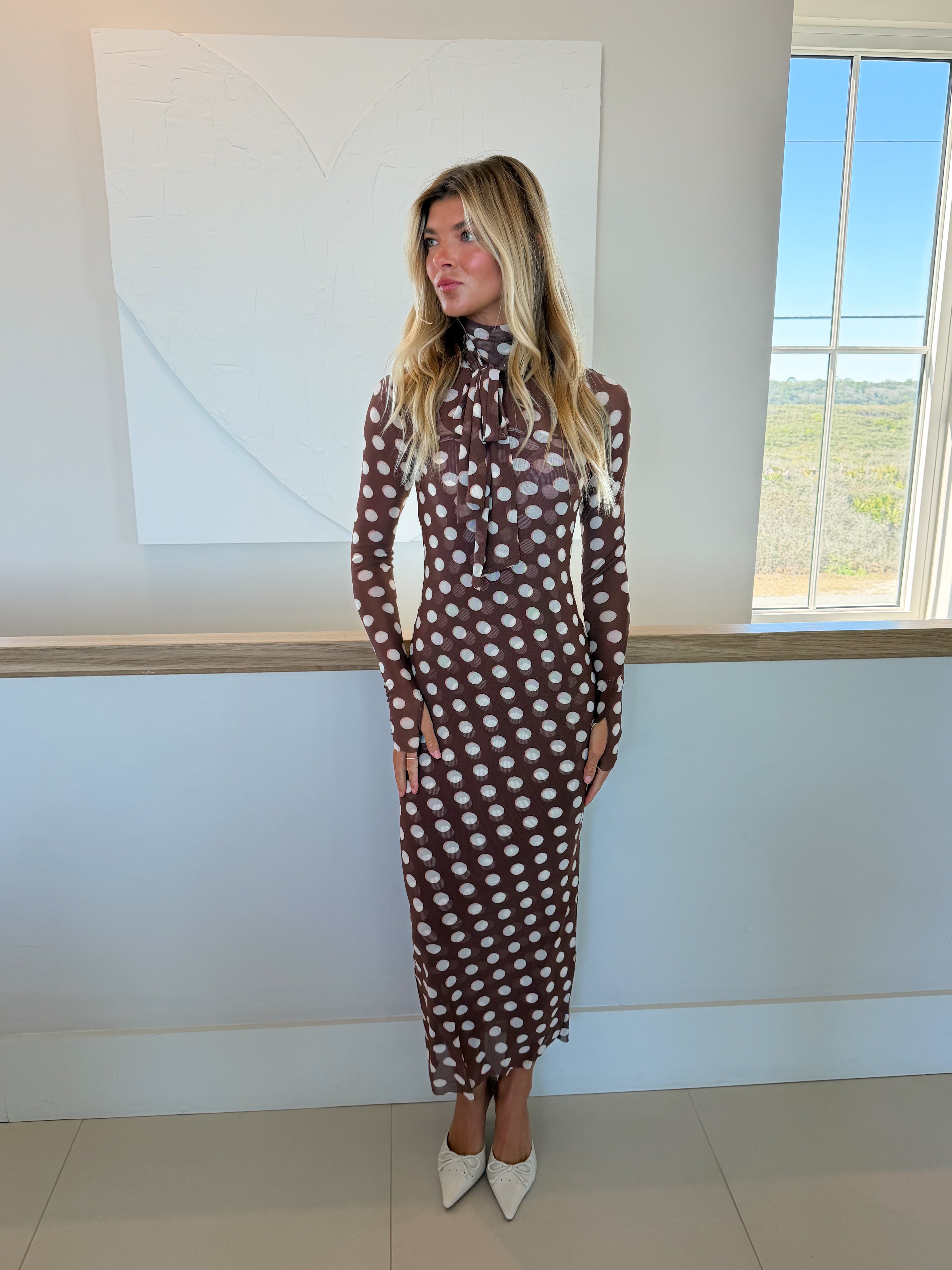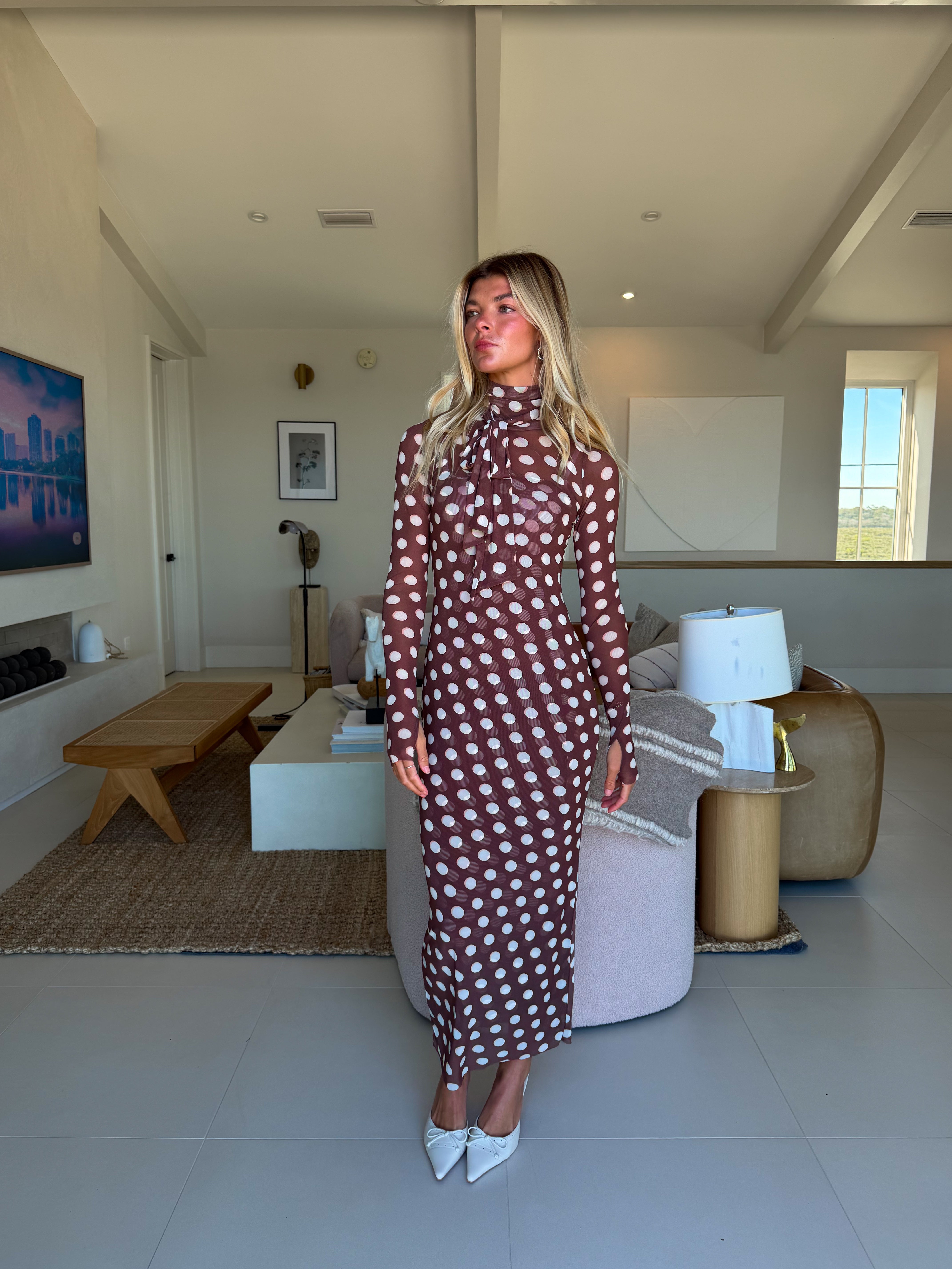Bryony Polka Dot Midi Dress - Chocolate Polka Dot