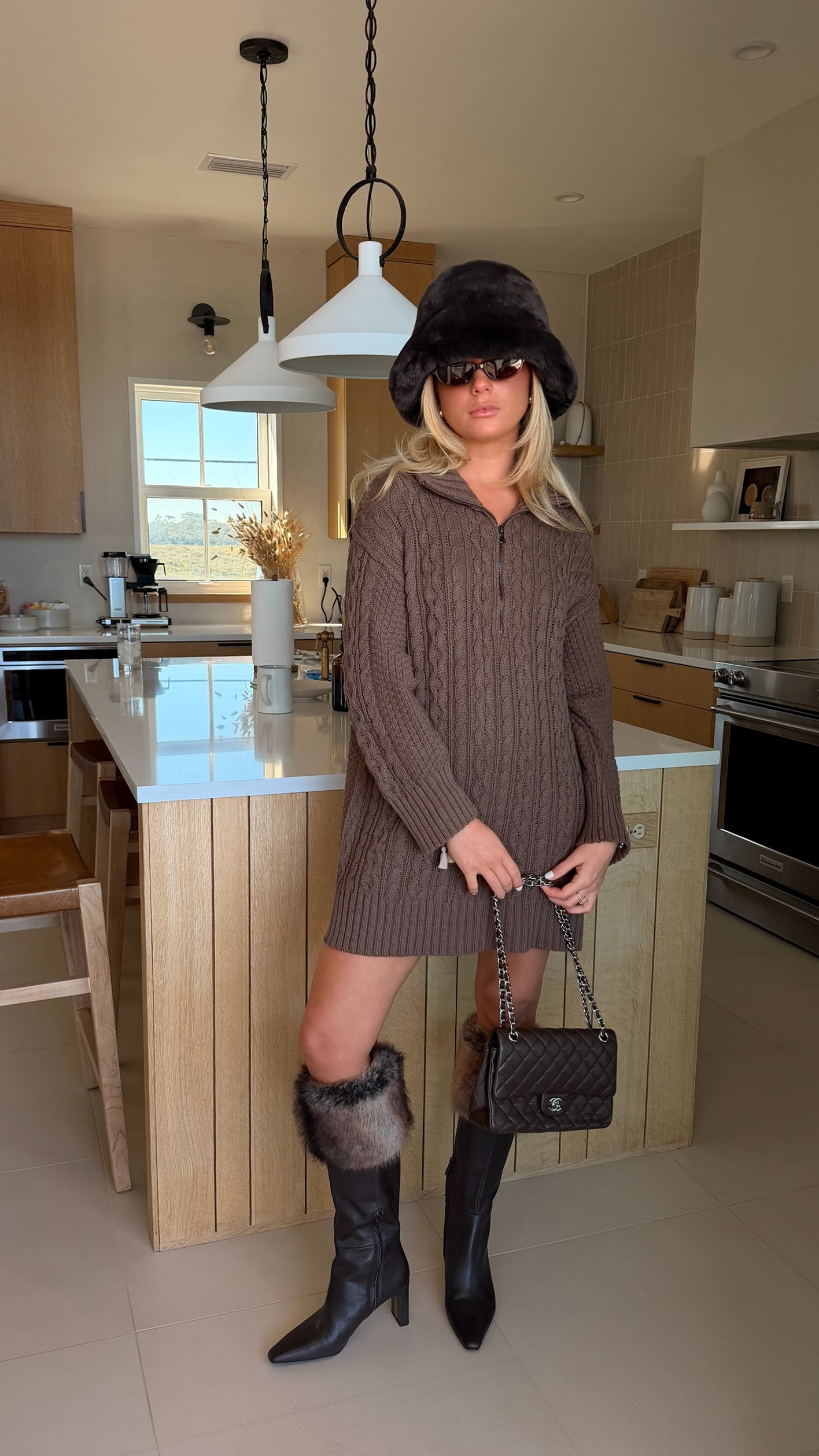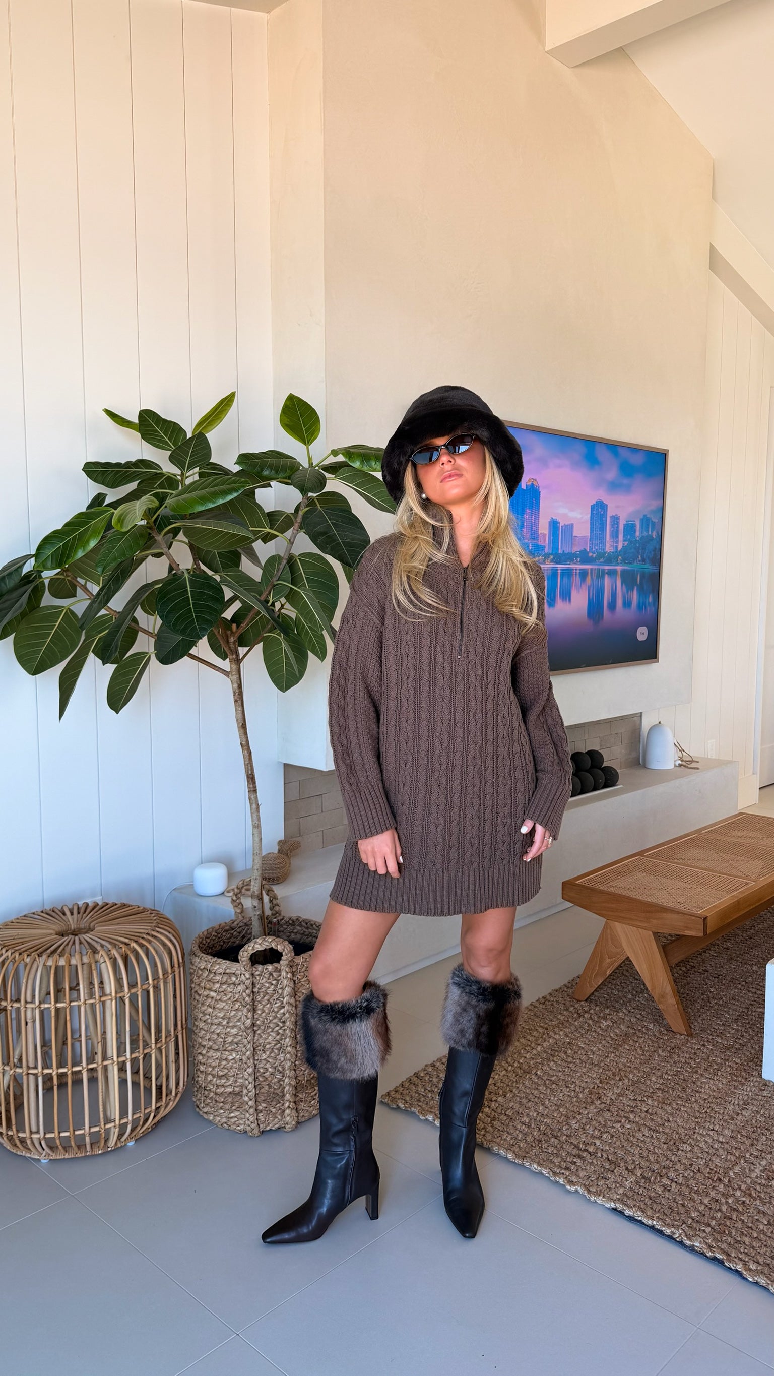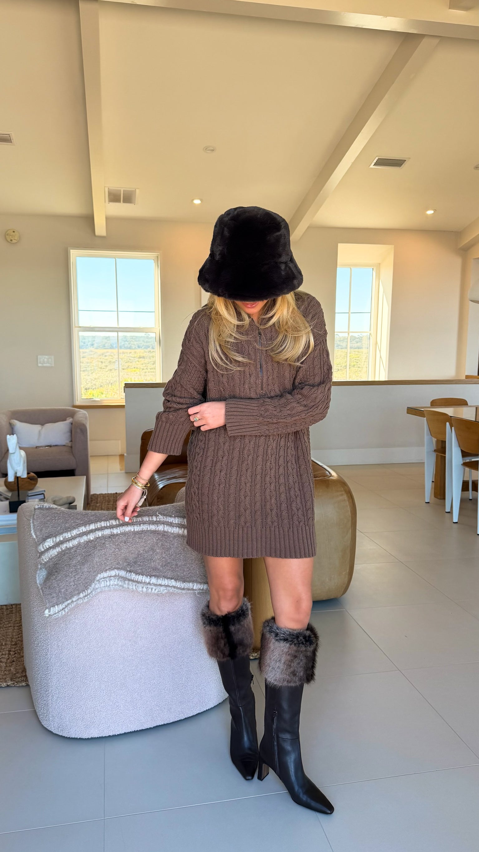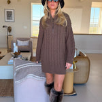 Cami Cable Knit Sweater Mini Dress - Espresso