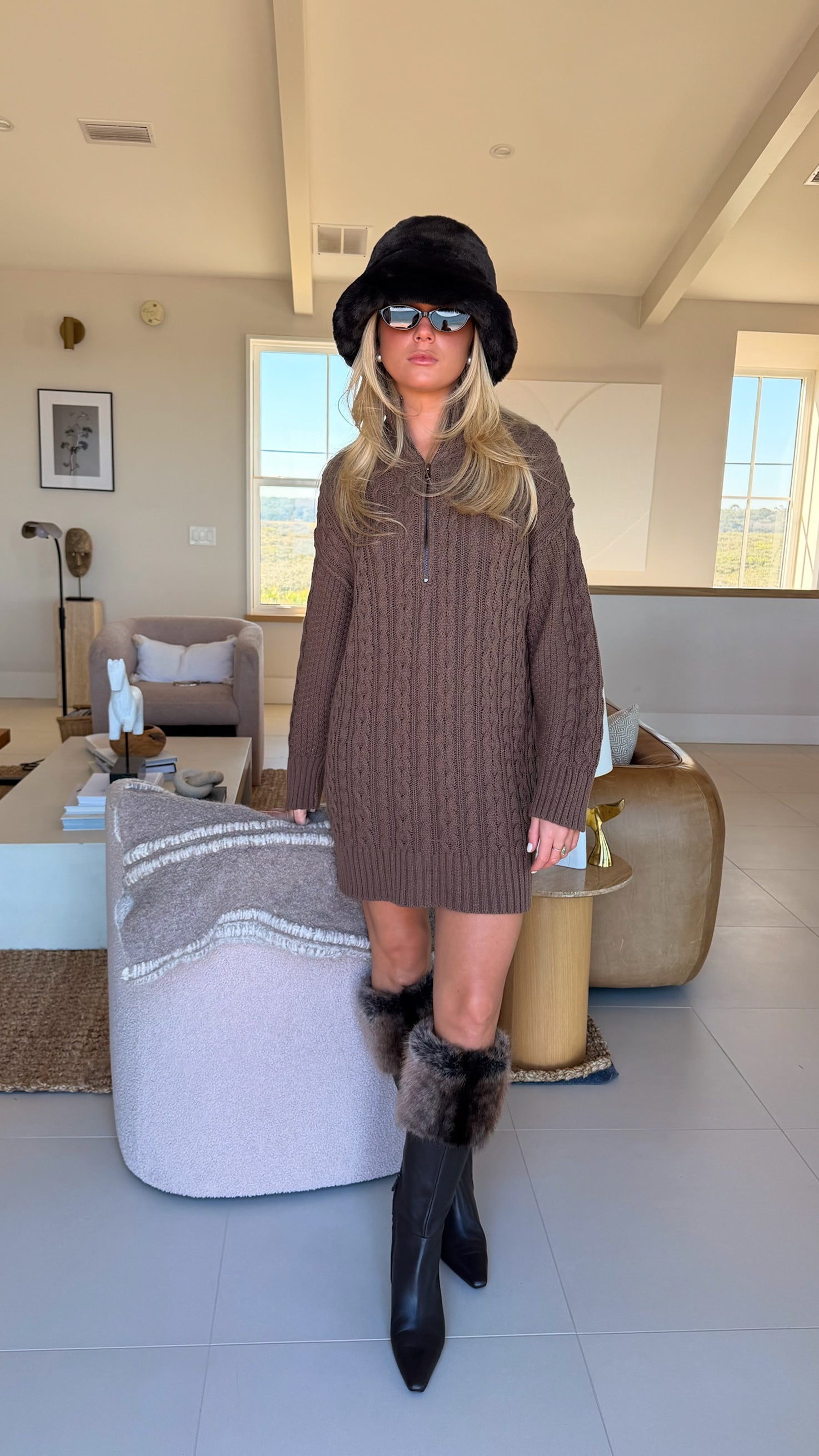 Wrap yourself in cozy comfort with this cable-knit long sleeve mini sweater dress. The textured knit fabric provides warmth and dimension, while the mini length offers a flattering silhouette perfect for layering or wearing solo. Long sleeves keep you covered through cooler seasons, and the classic cable-knit pattern adds timeless style to any wardrobe. Whether you're dressing up for a night out or keeping it casual, this versatile piece supports your personal style with effortless elegance.