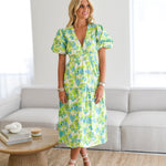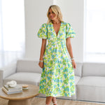 Stay stylish and comfortable with our Carly Print Dress in White/Green Floral. With its beautiful print and breezy design, this dress is perfect for any occasion. The soft fabric ensures all-day comfort while the flowy fit flatters all body types. Elevate your wardrobe with this versatile dress.