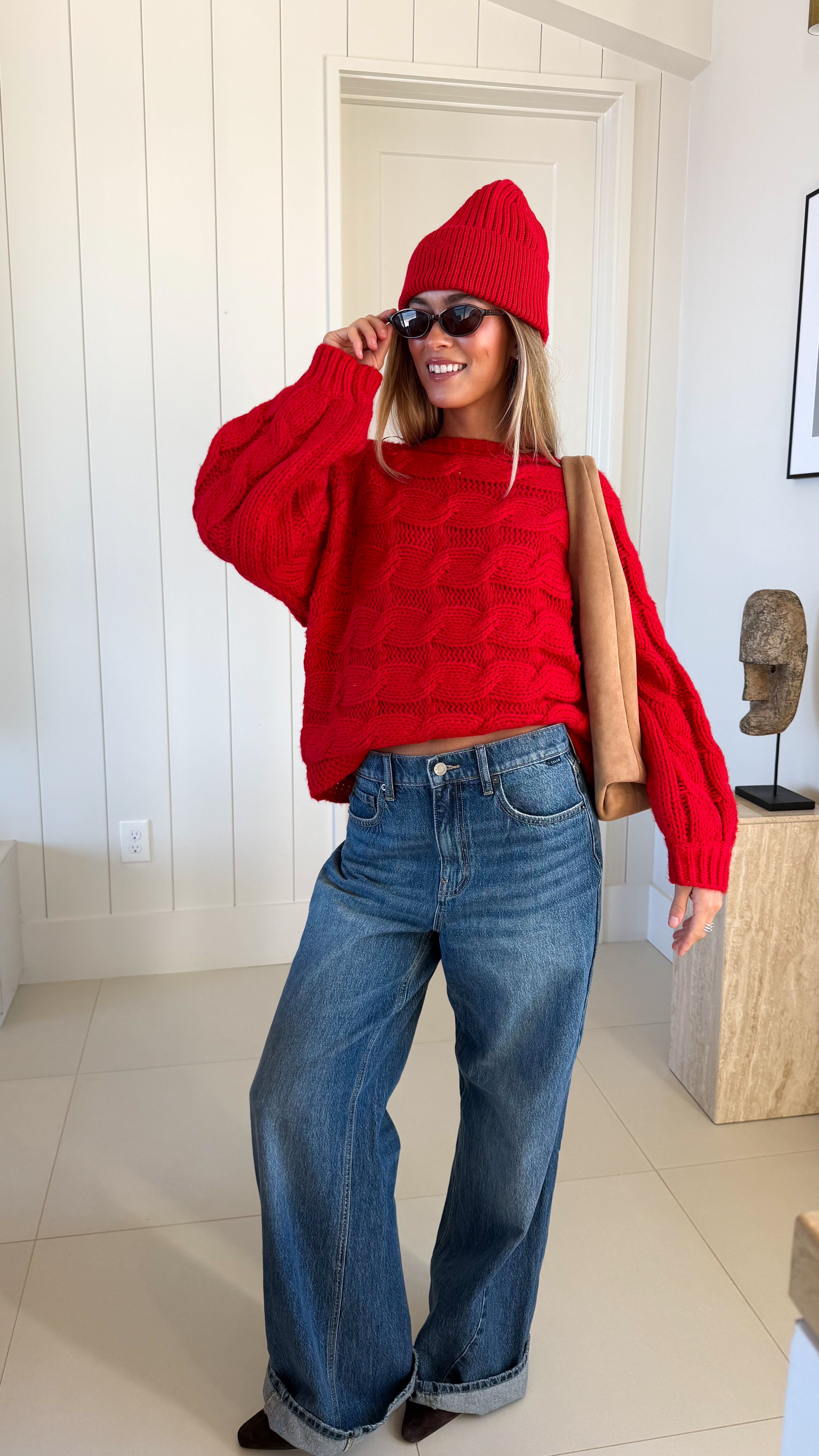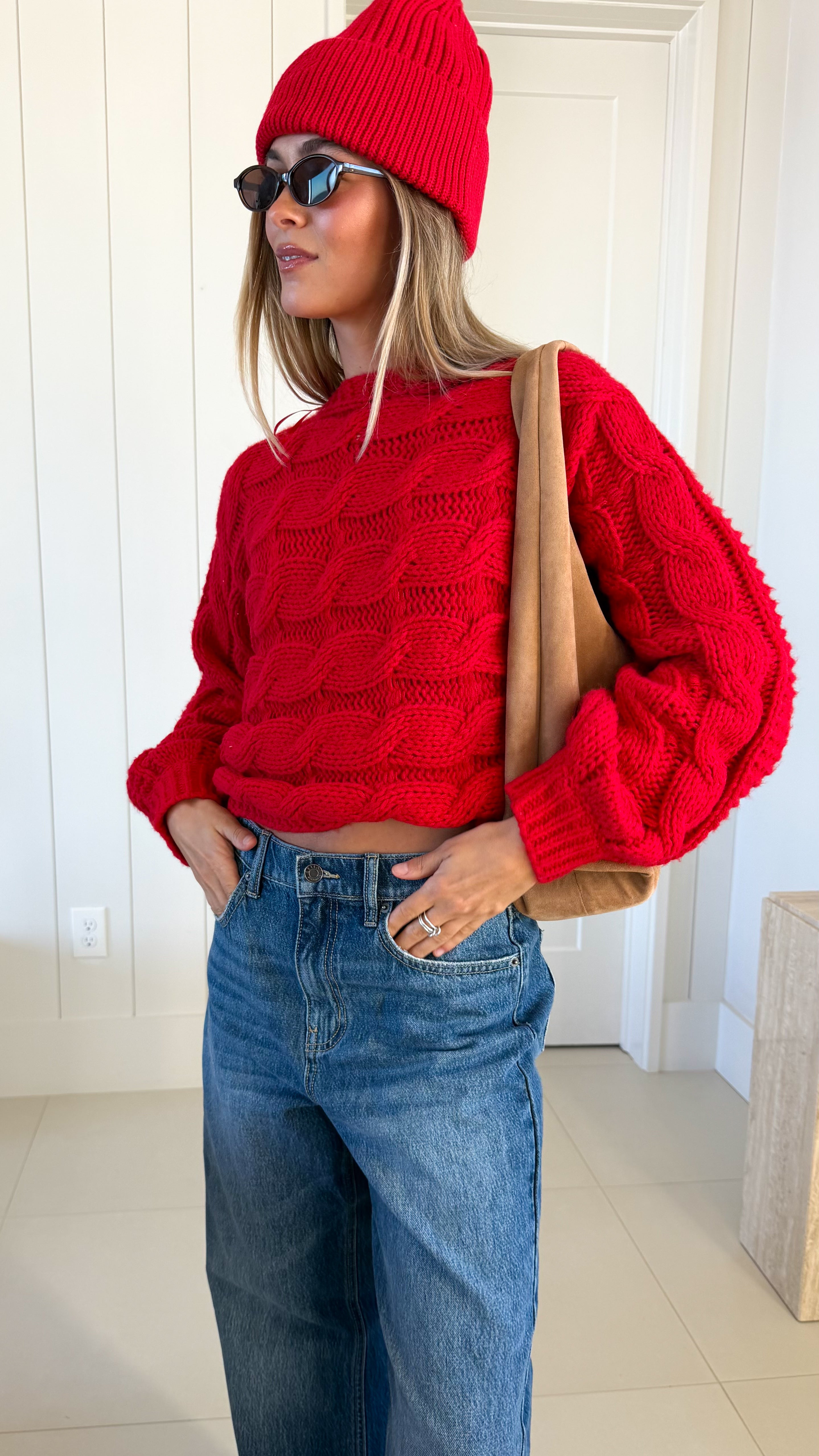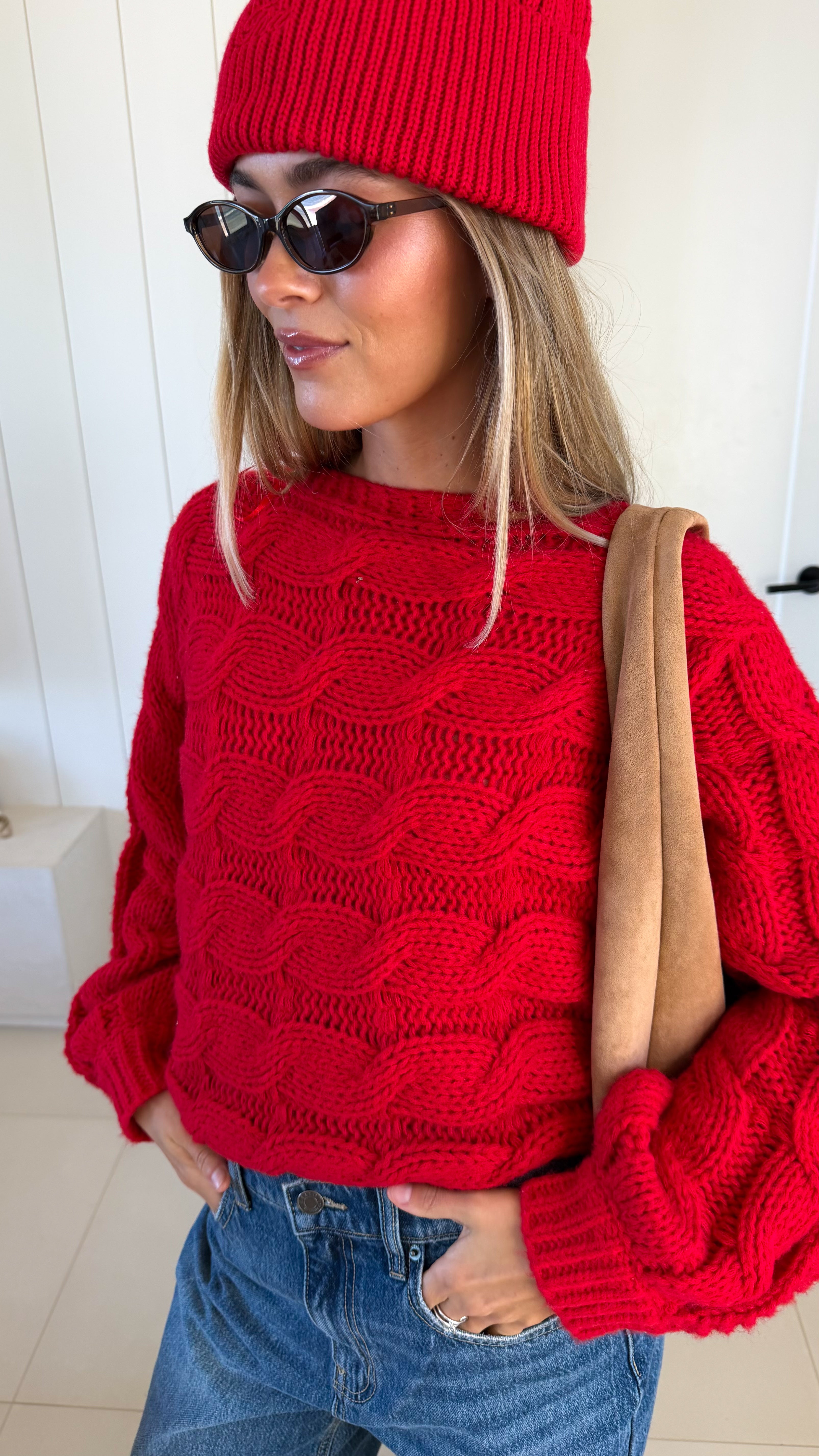 Wrap yourself in comfort with the Catie Braided Knit Sweater Top. This cozy essential features a textured braid knit design paired with ribbed detailing for a flattering, structured fit. The soft, breathable fabric makes it perfect for layering or wearing solo, whether you're heading to the office or enjoying a relaxed weekend. The timeless red shade pairs effortlessly with any wardrobe, making this sweater a versatile piece you'll reach for again and again. Embrace warmth without compromising on style.