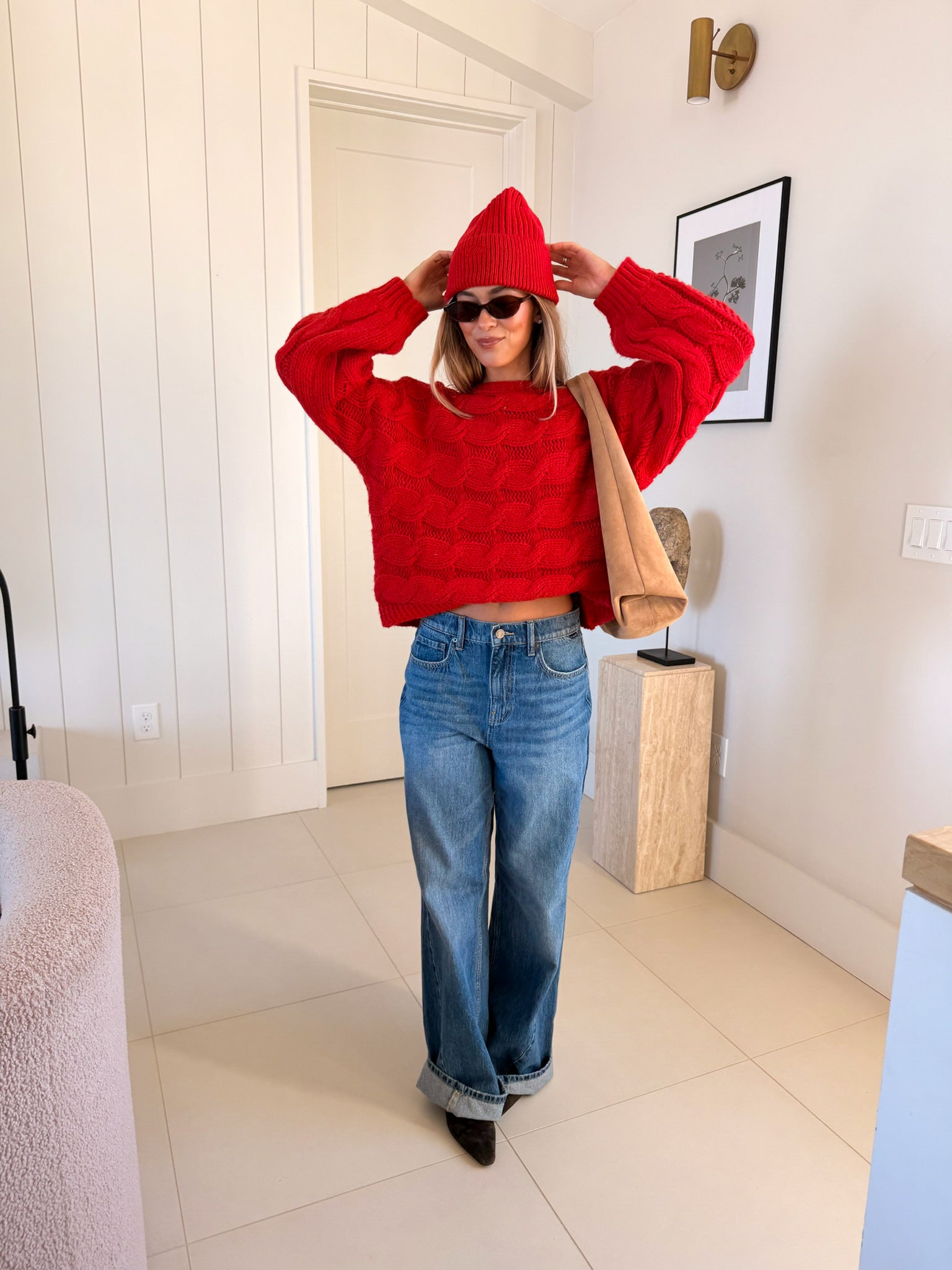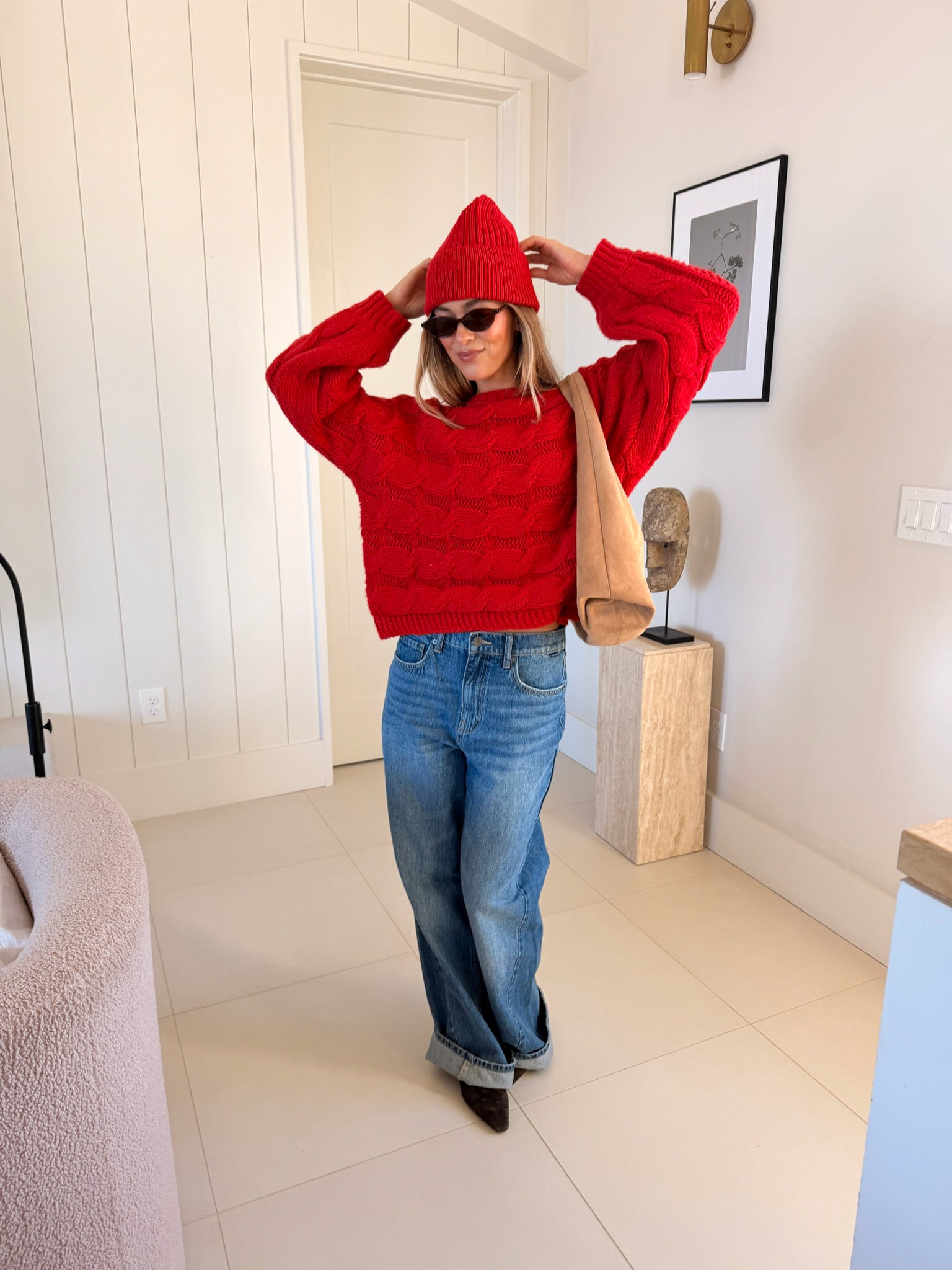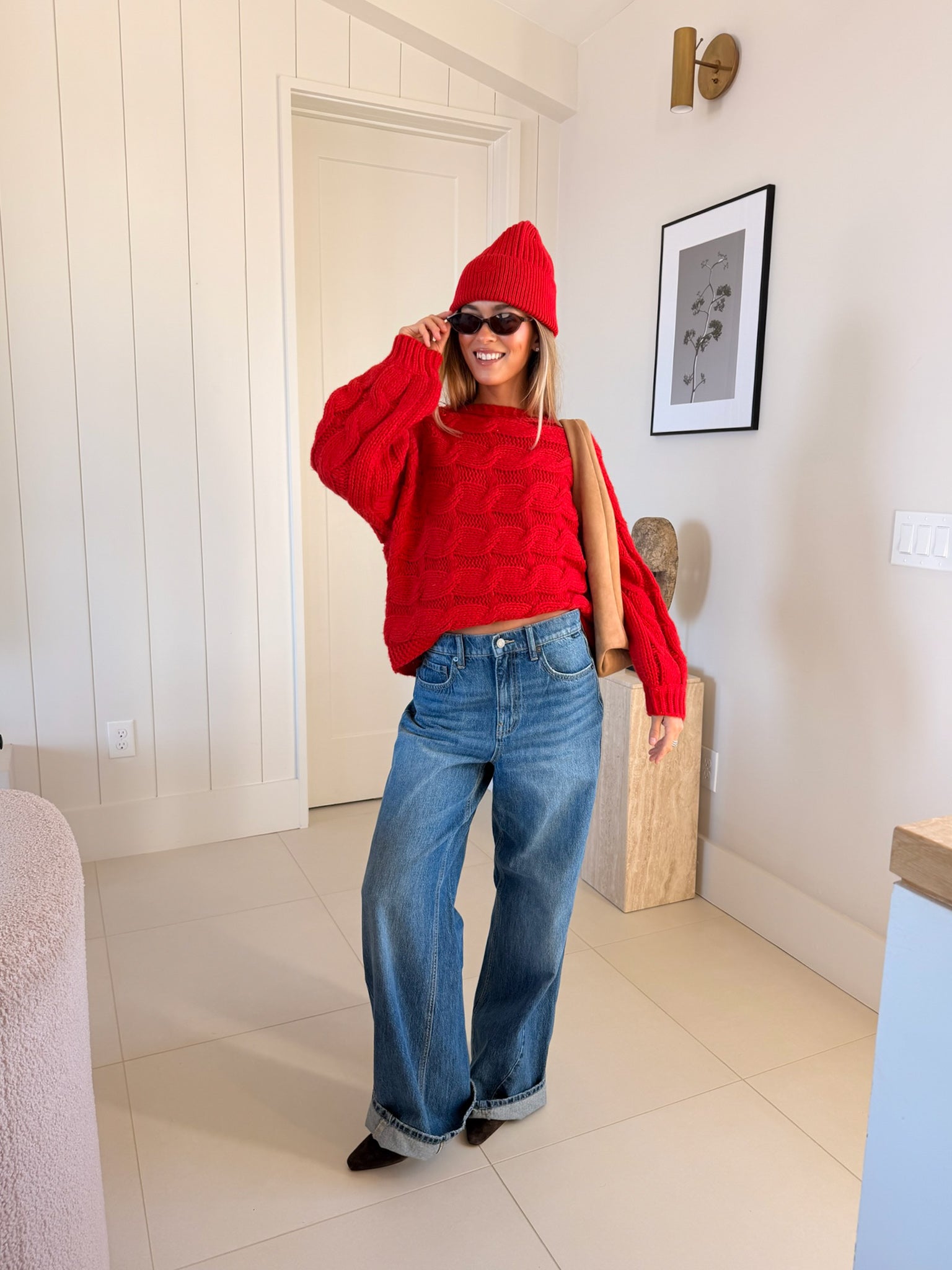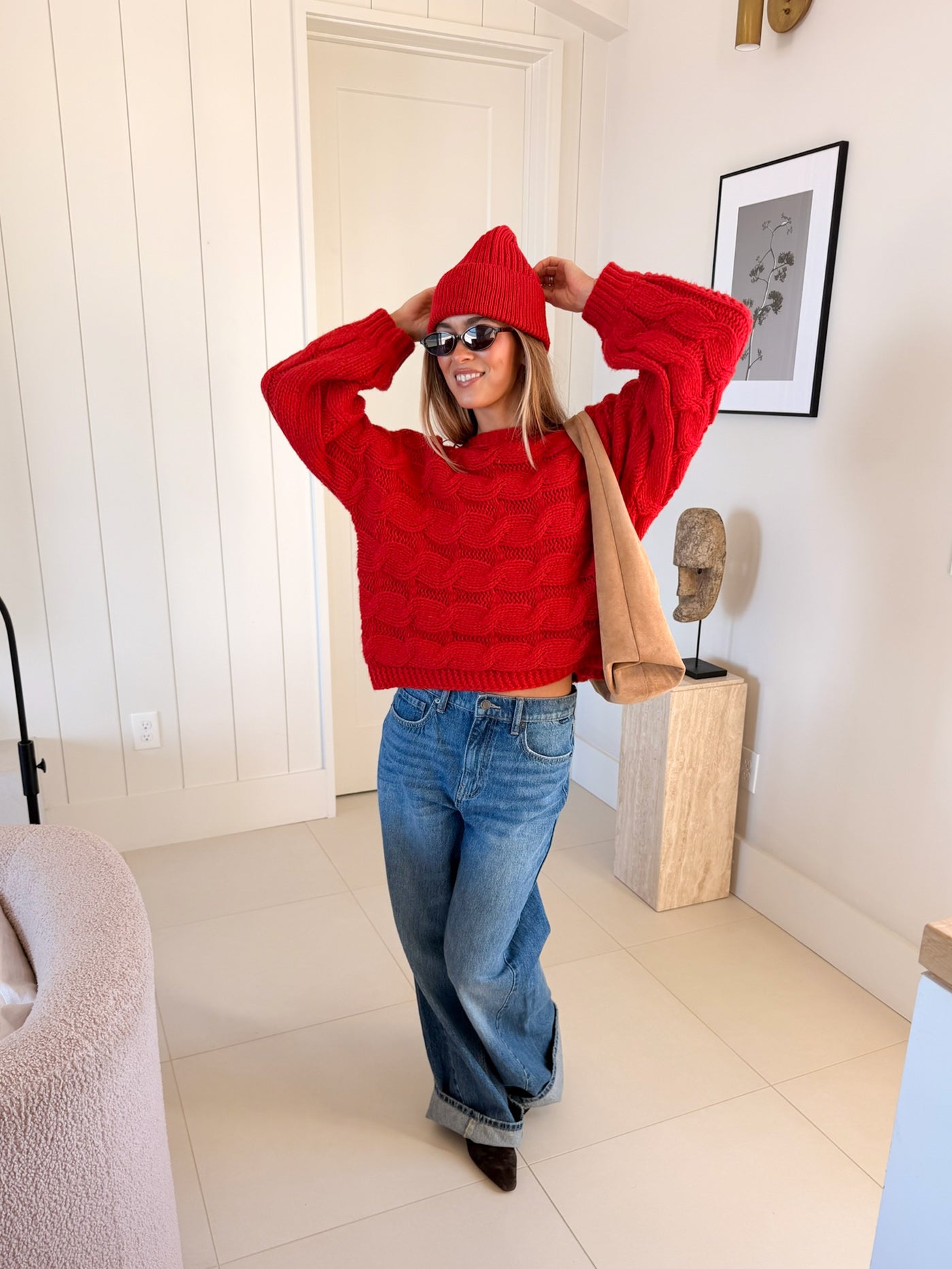 Wrap yourself in comfort with the Catie Braided Knit Sweater Top. This cozy essential features a textured braid knit design paired with ribbed detailing for a flattering, structured fit. The soft, breathable fabric makes it perfect for layering or wearing solo, whether you're heading to the office or enjoying a relaxed weekend. The timeless red shade pairs effortlessly with any wardrobe, making this sweater a versatile piece you'll reach for again and again. Embrace warmth without compromising on style.
