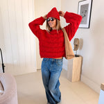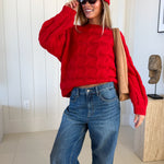 Catie Braided Knit Sweater Top - Red
