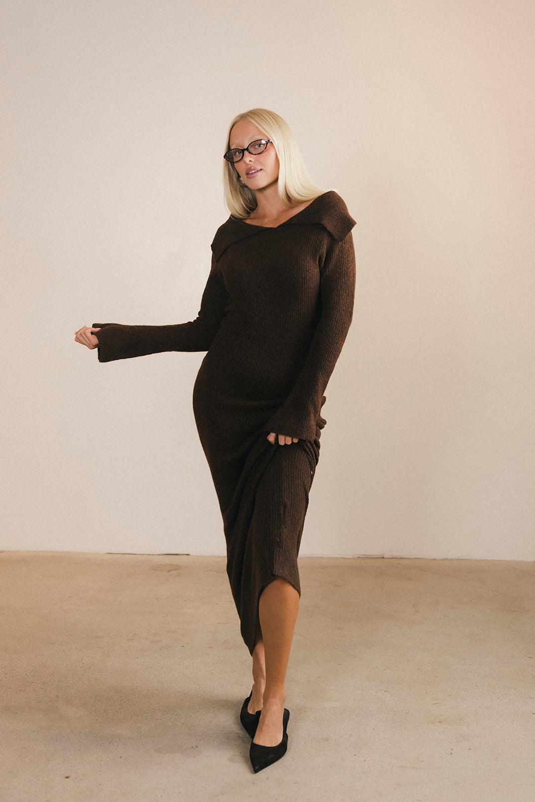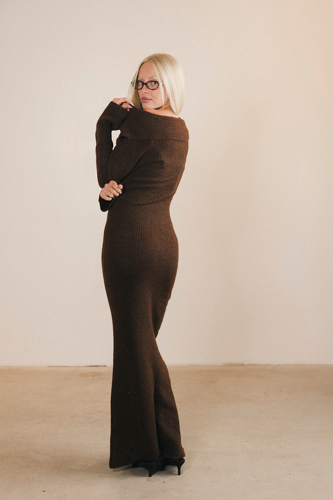 Ciera Off The Shoulder Maxi Dress - Chocolate