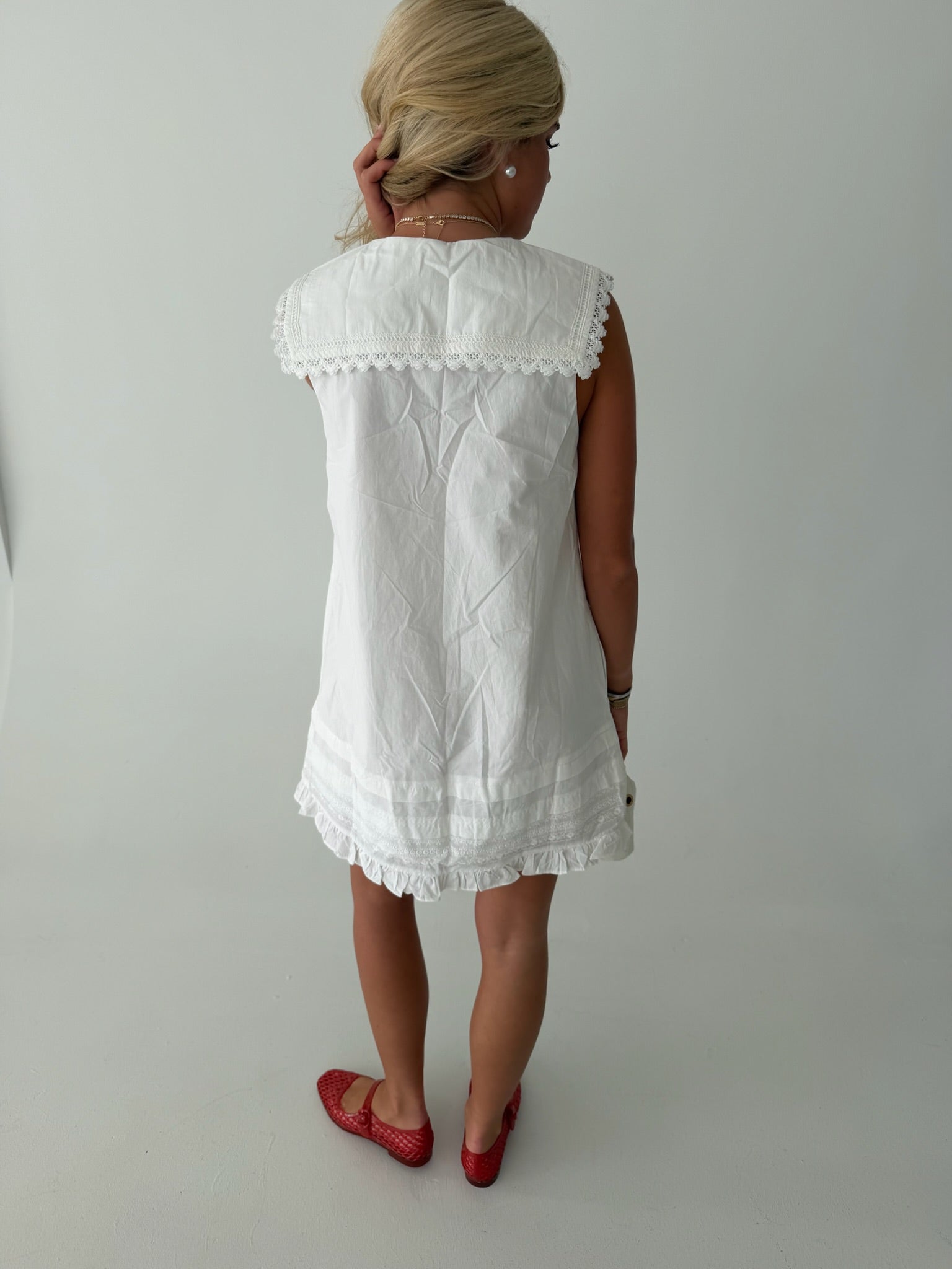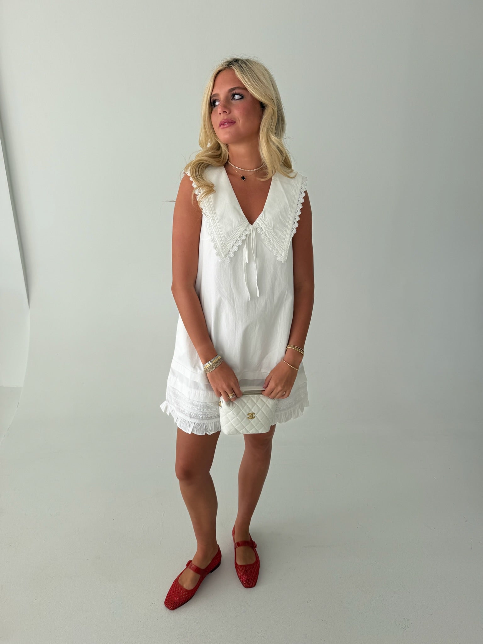 Clara Collared Eyelet Mini Dress - White