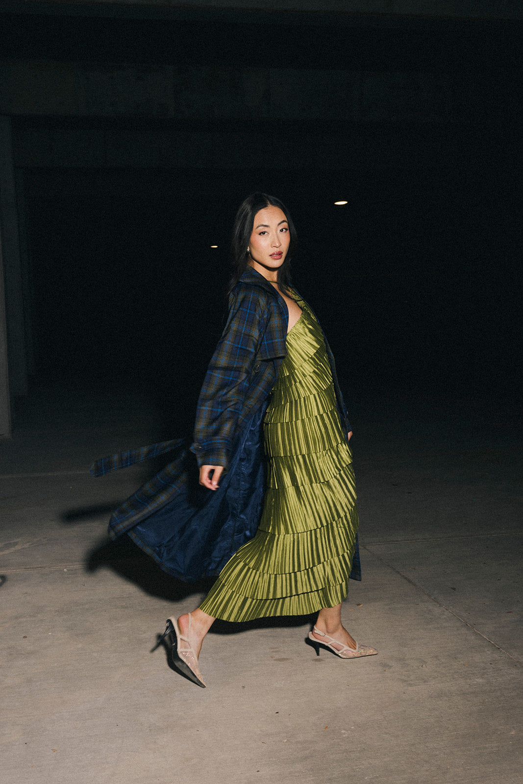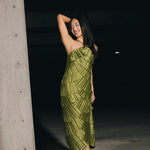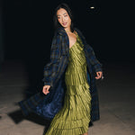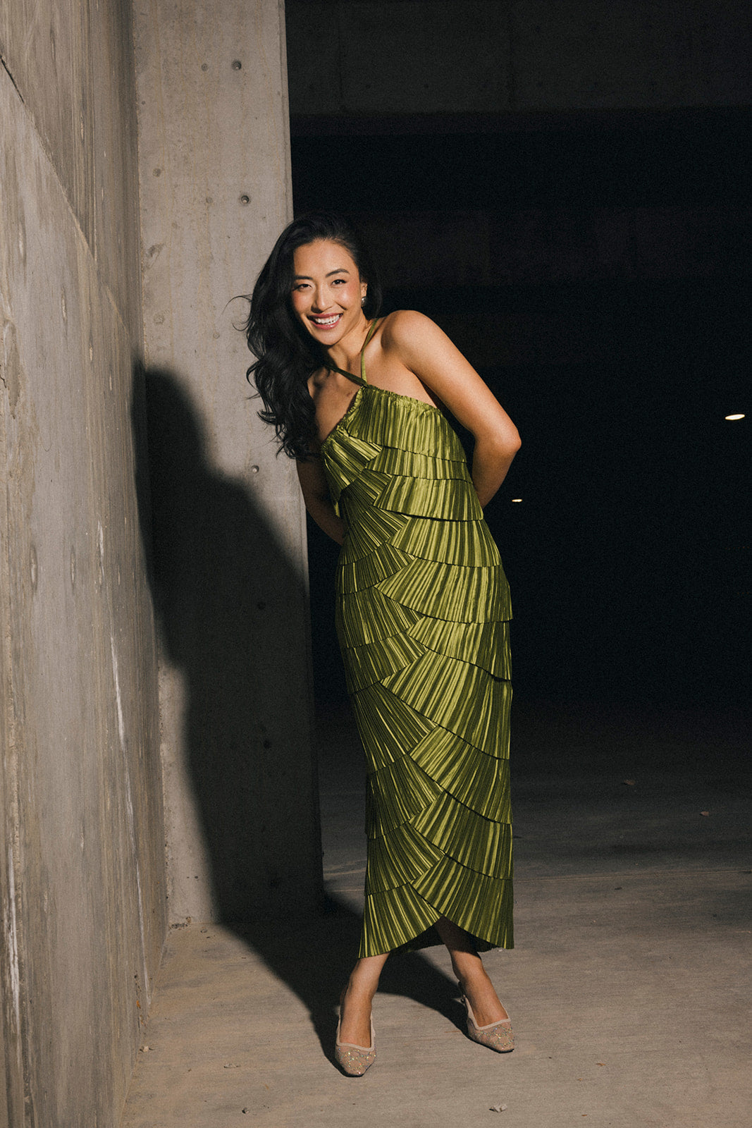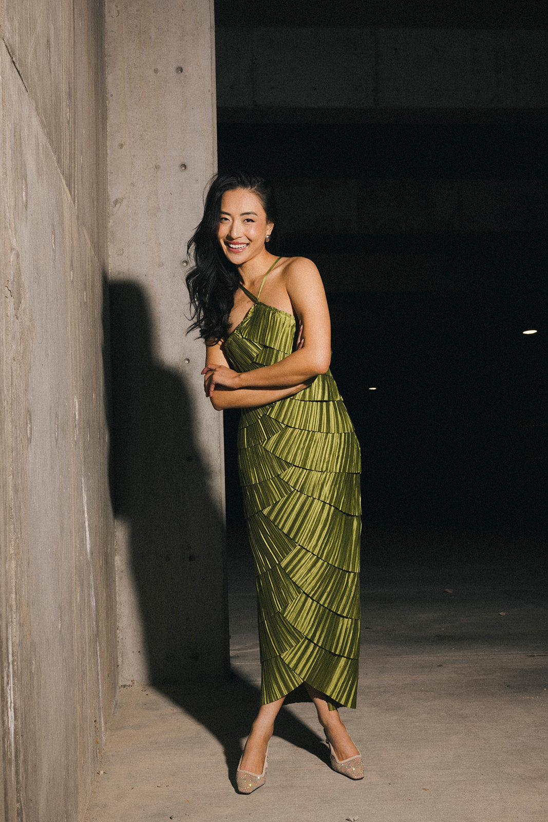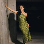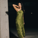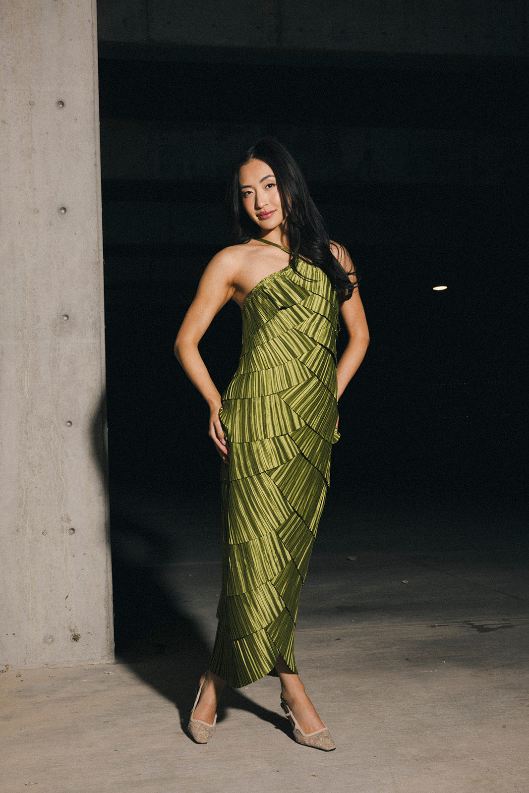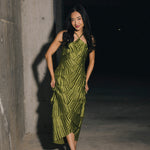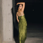 Demi Pleated Satin Tiered Midi Dress - Forest Green