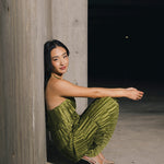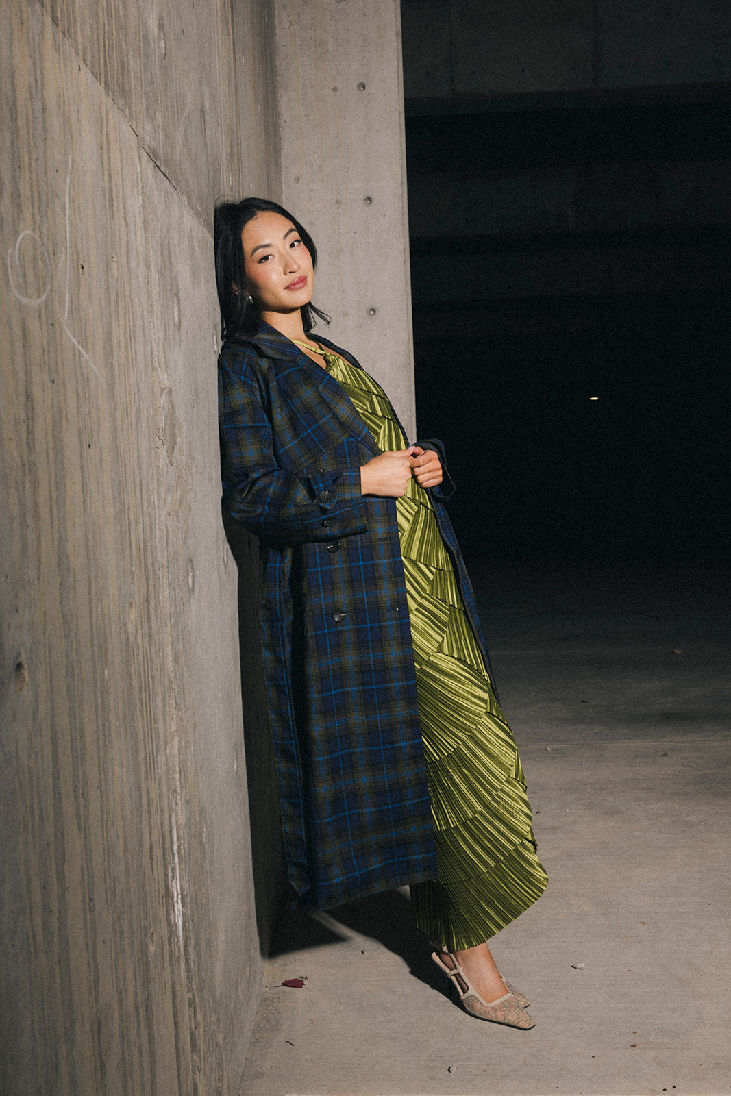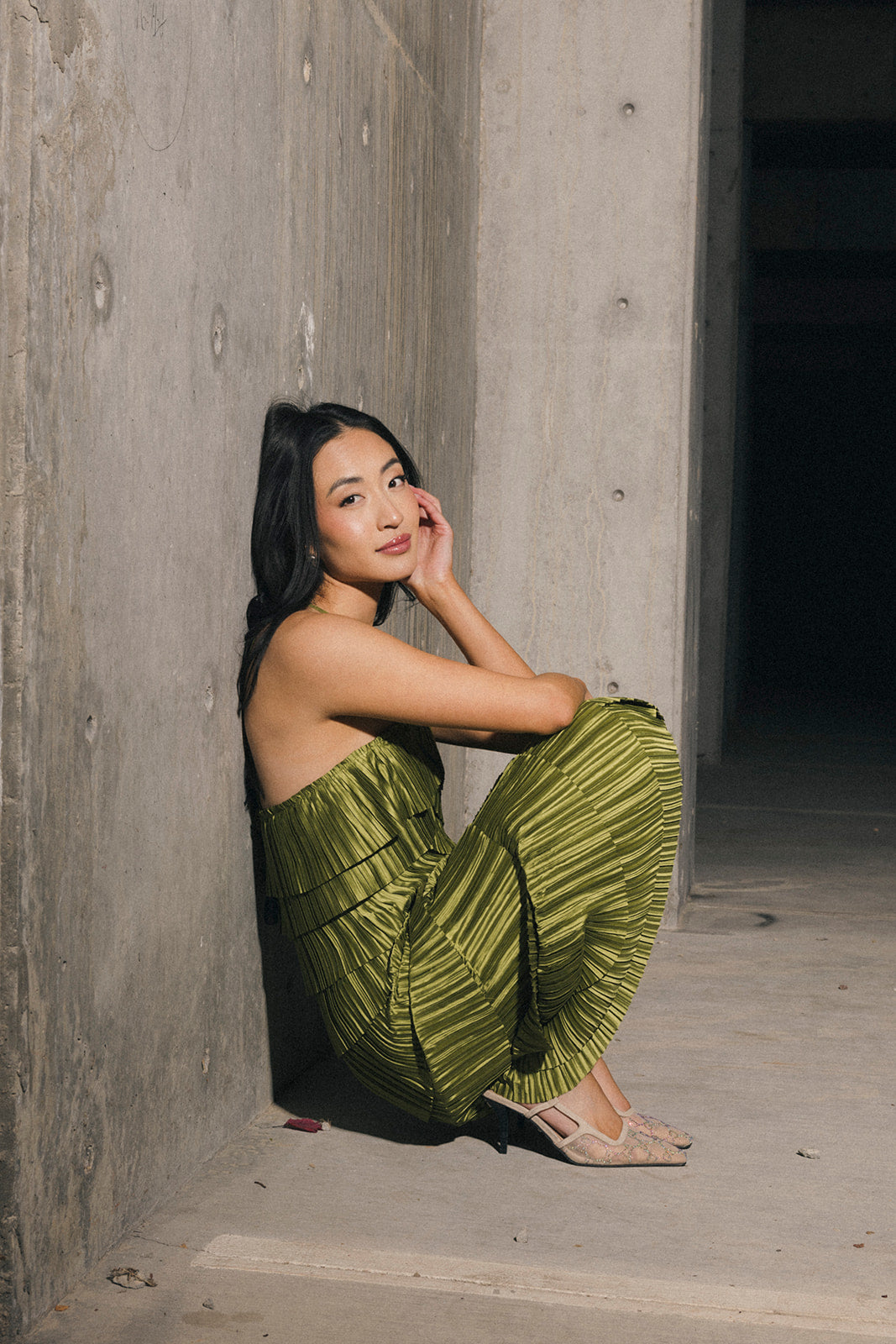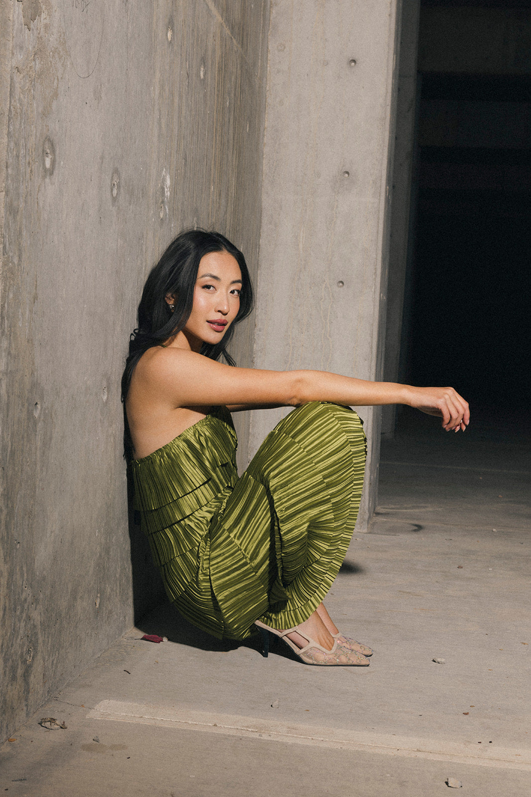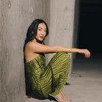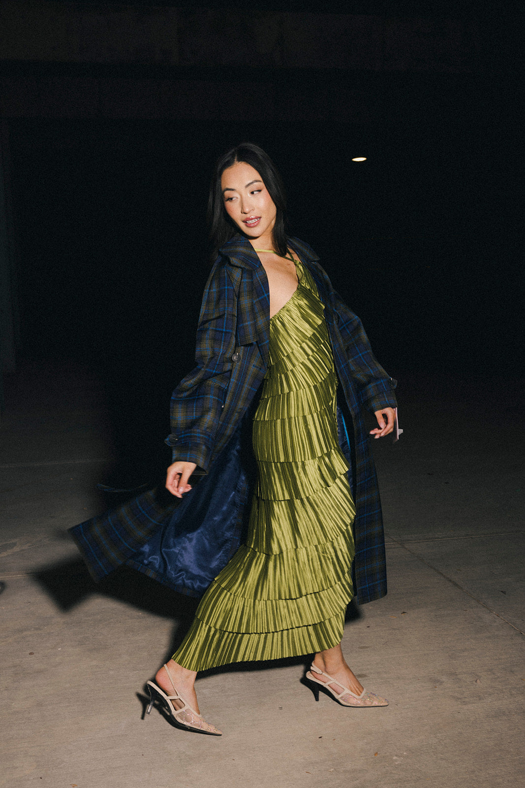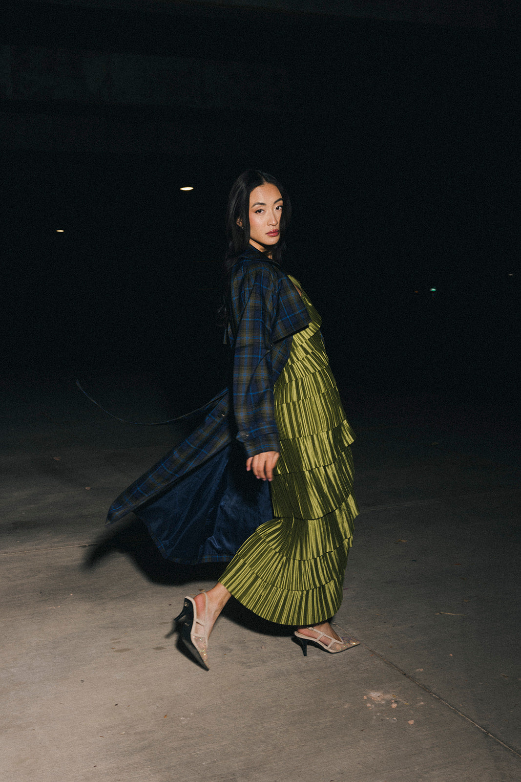 Demi Pleated Satin Tiered Midi Dress - Forest Green