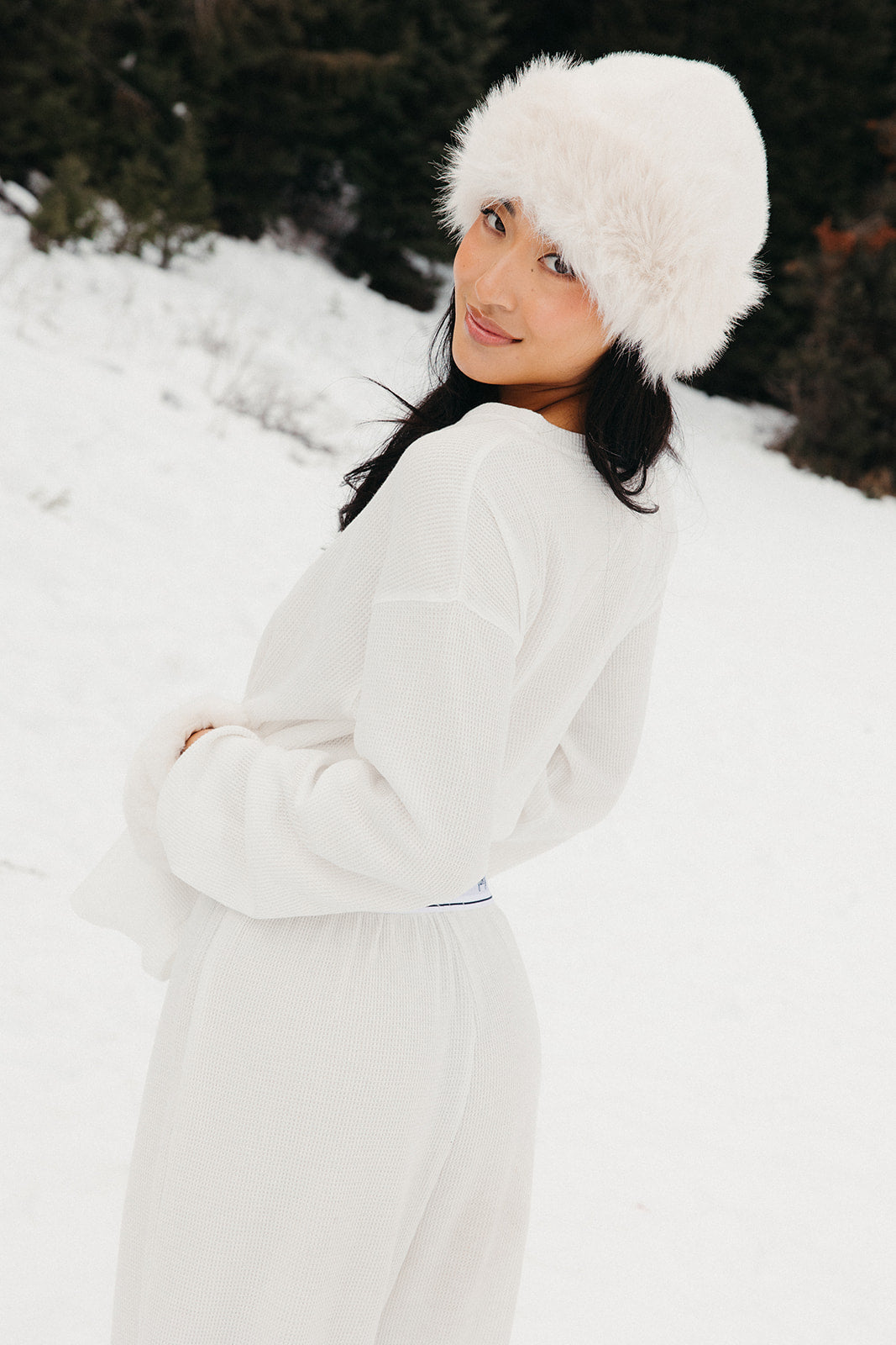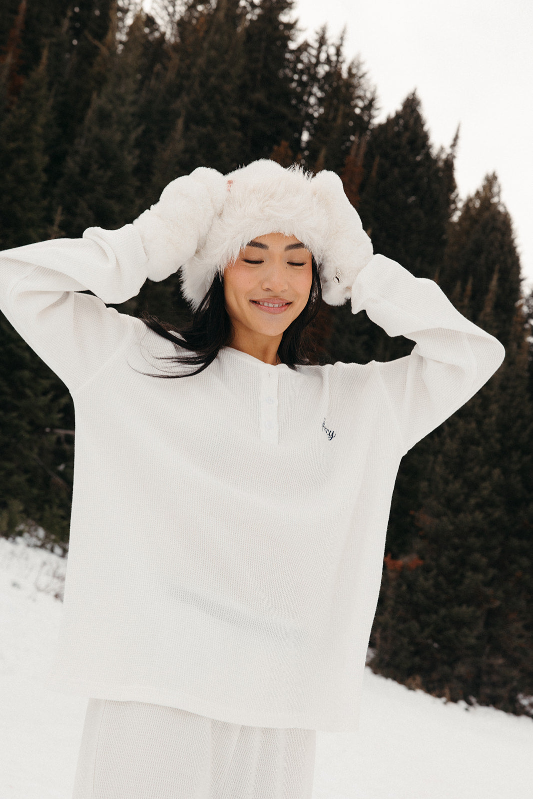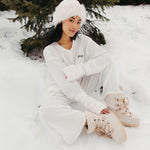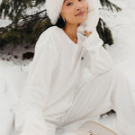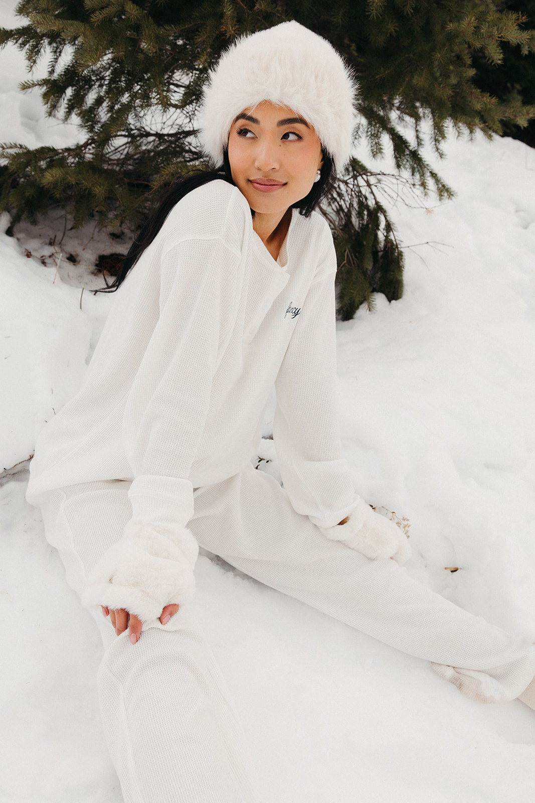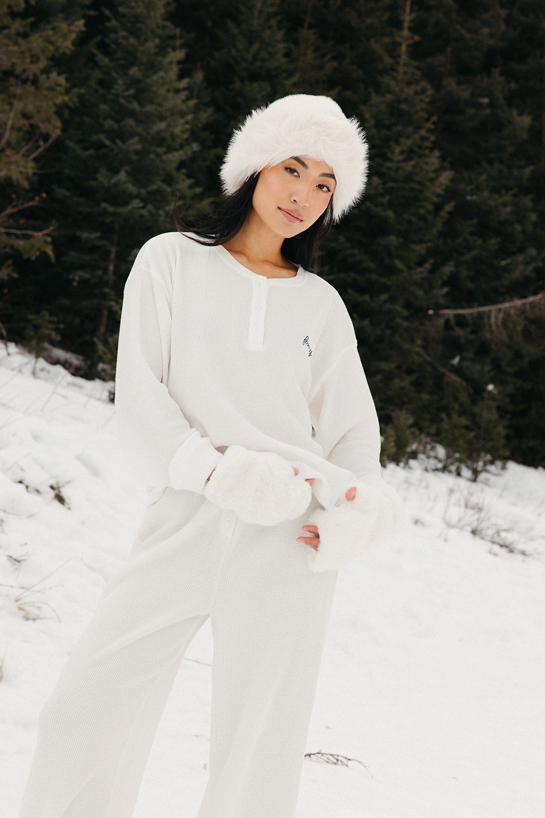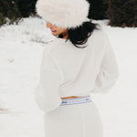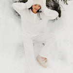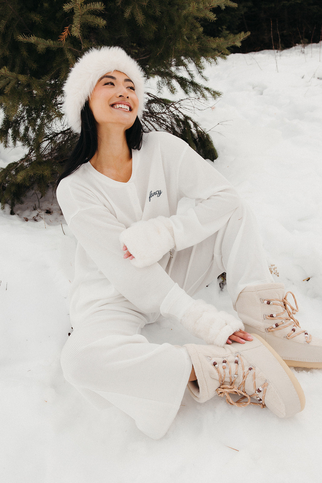 Meet your go-to comfort long sleeve for every season. These lightweight waffle-knit pants deliver a relaxed fit and soft feel, finished with a bold elastic waistband featuring “FANCY” woven throughout for a fun, elevated touch. From cozy days at home to casual outings, they’re made to move with you—especially when paired with the matching pants. In classic white, this waffle set is perfect for winter and effortlessly carries you into spring and summer.