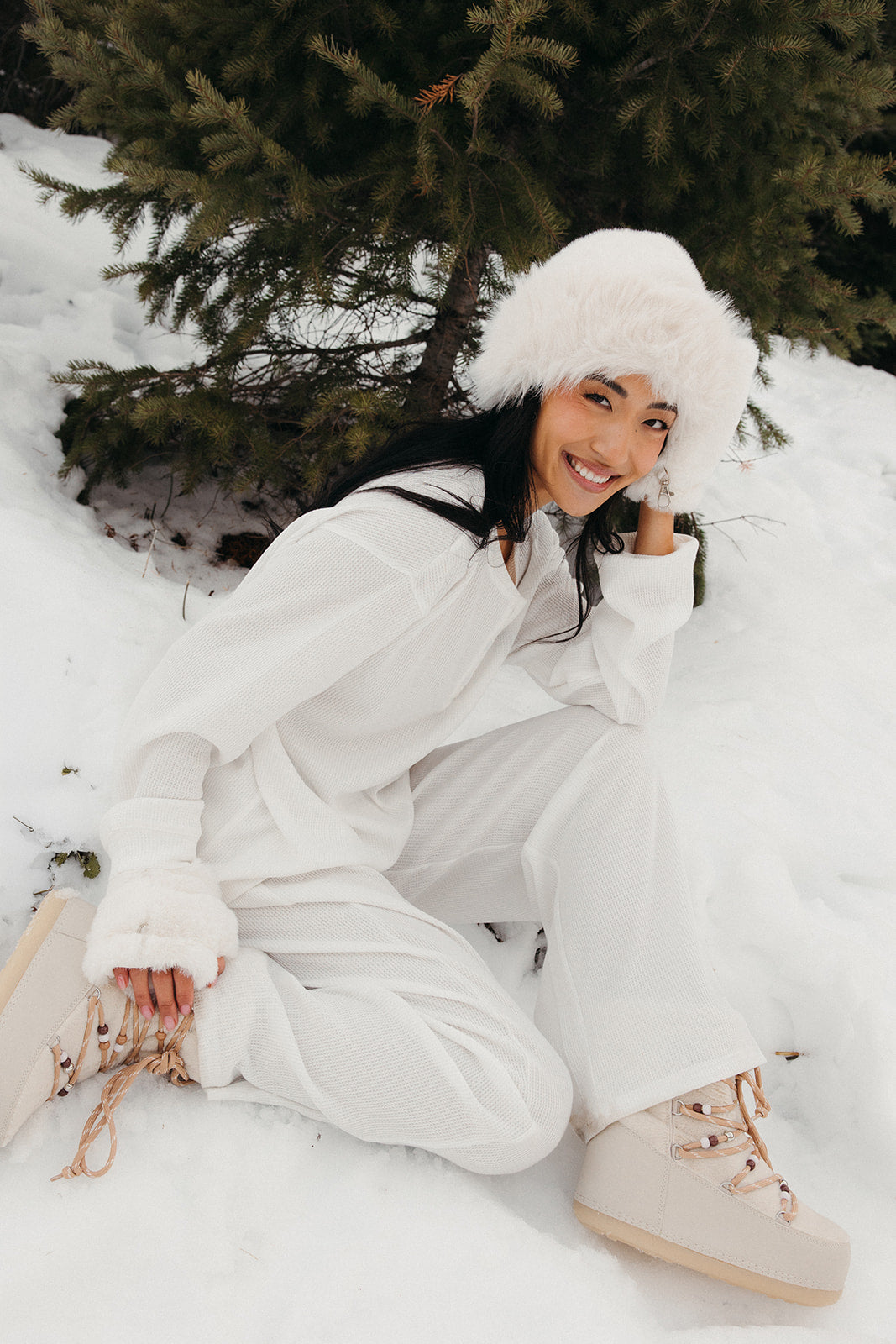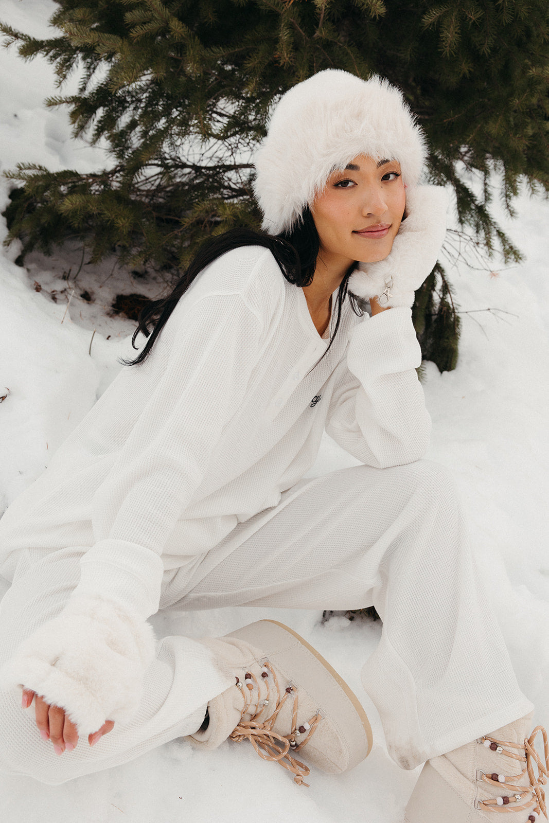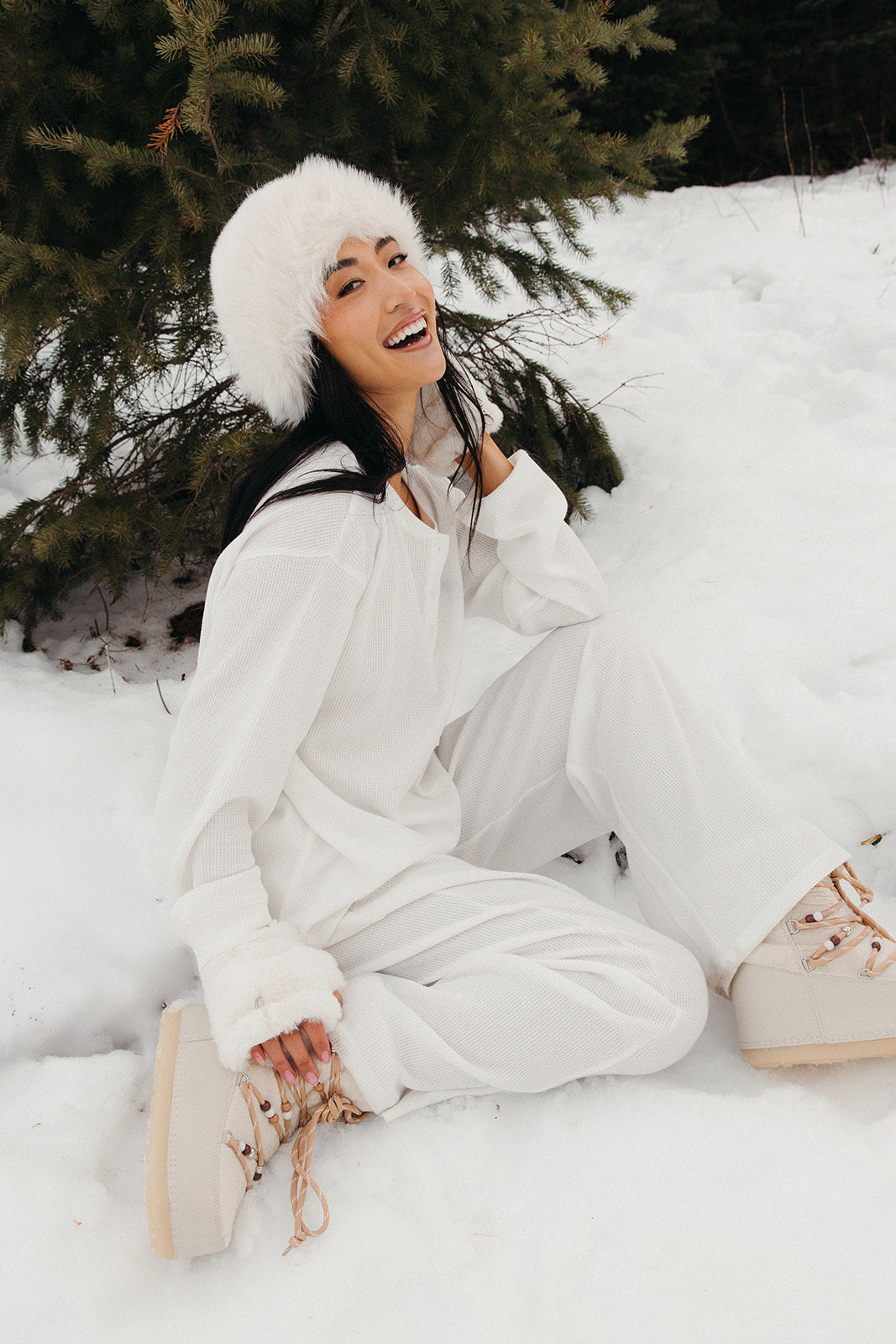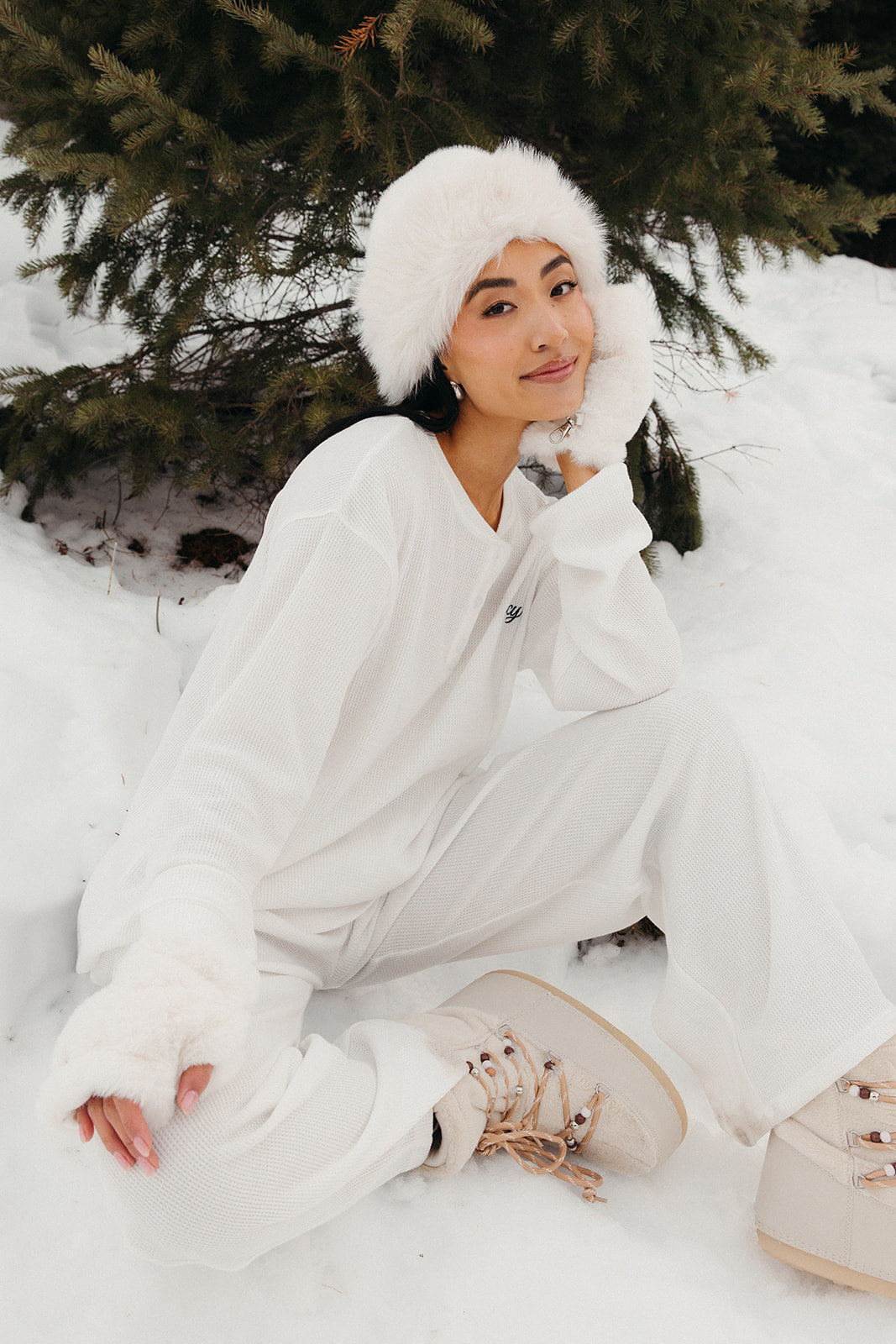 Meet your go-to comfort long sleeve for every season. These lightweight waffle-knit pants deliver a relaxed fit and soft feel, finished with a bold elastic waistband featuring “FANCY” woven throughout for a fun, elevated touch. From cozy days at home to casual outings, they’re made to move with you—especially when paired with the matching pants. In classic white, this waffle set is perfect for winter and effortlessly carries you into spring and summer.