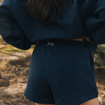 Model is wearing a XS/S mockneck and XS/S shorts.
