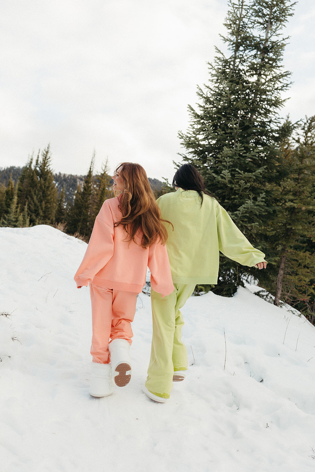 Fancy Fleece Wide Leg Sweatpants - Frosted Peach