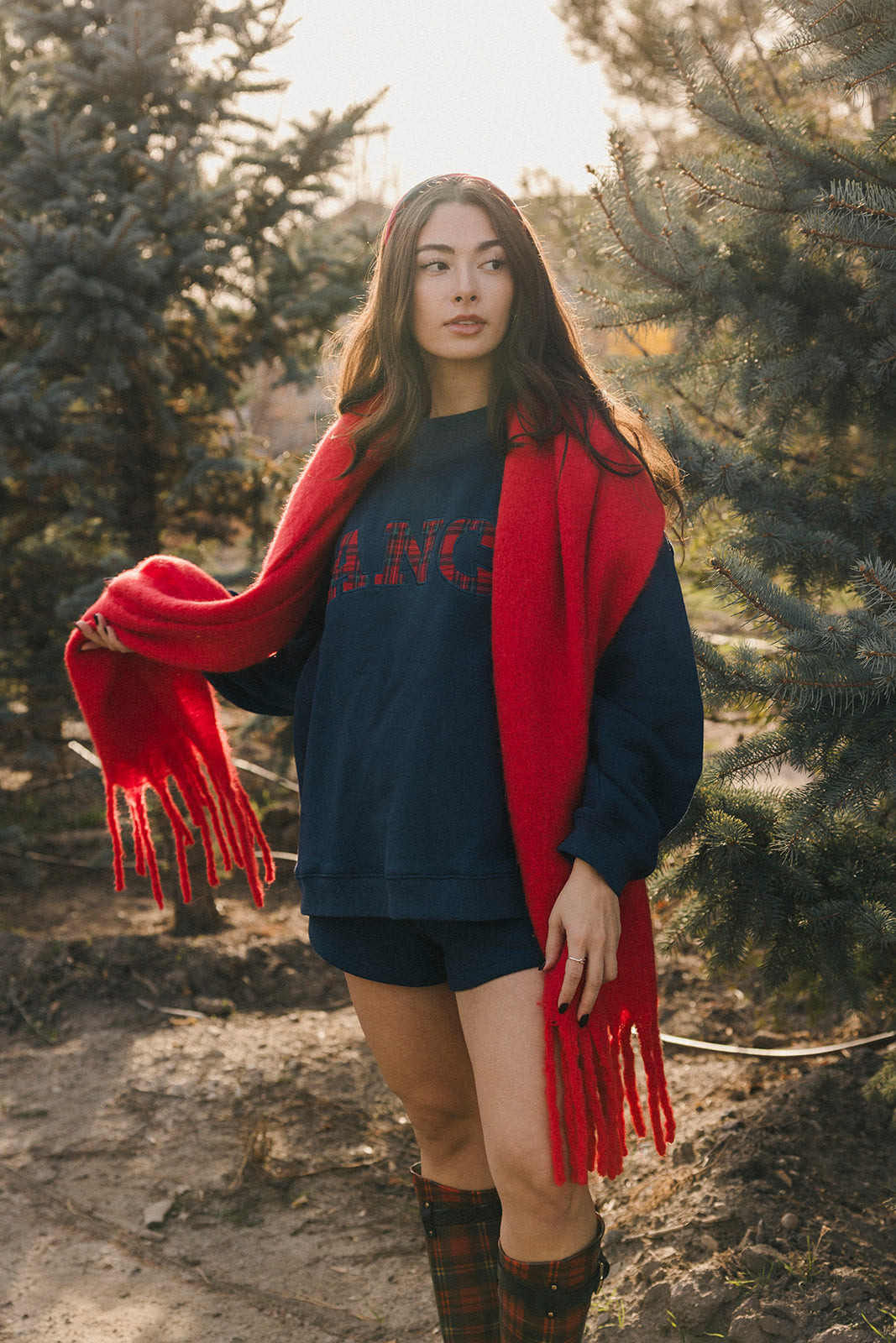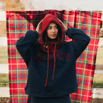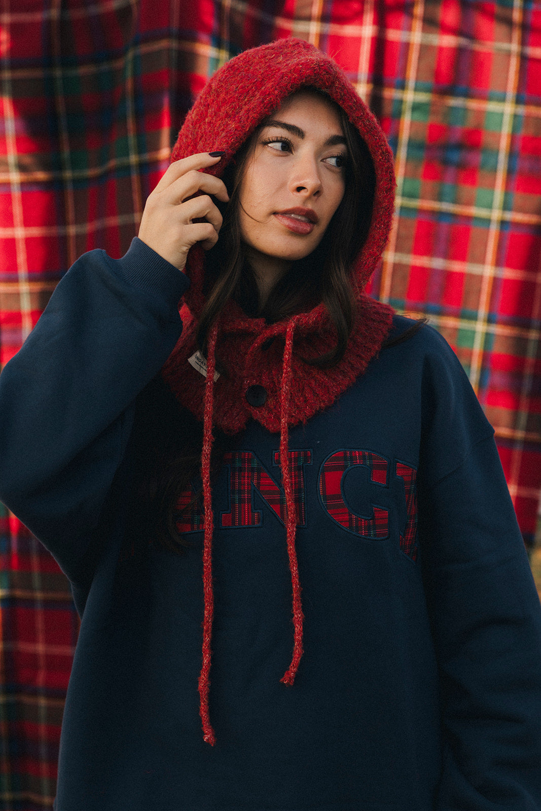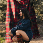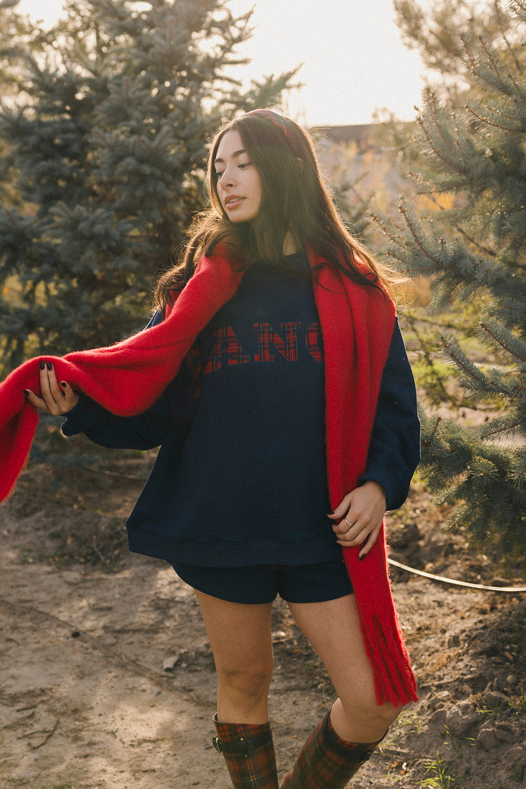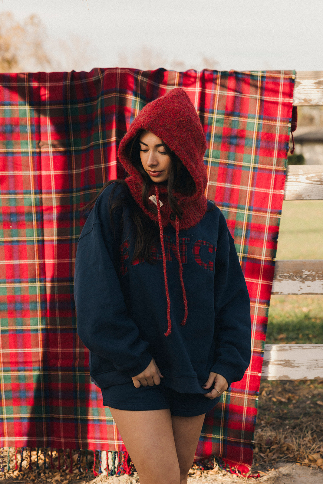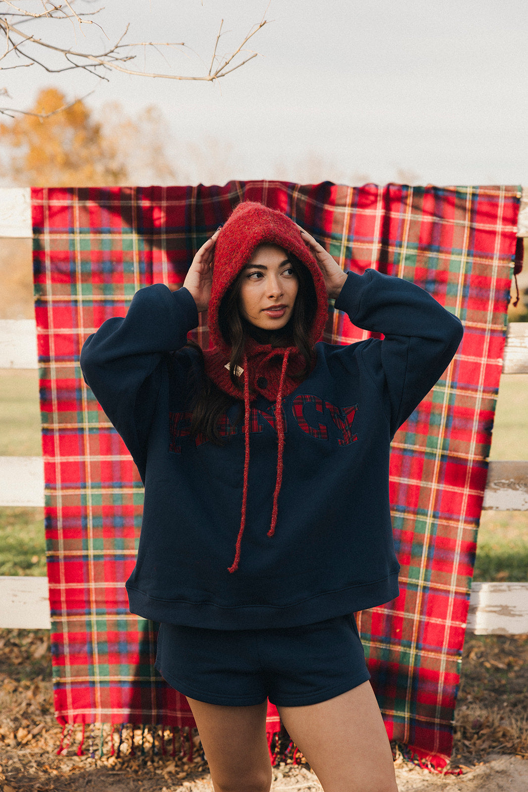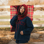 Fancy Oversized Fleece Mockneck - Midnight Navy/Red Plaid