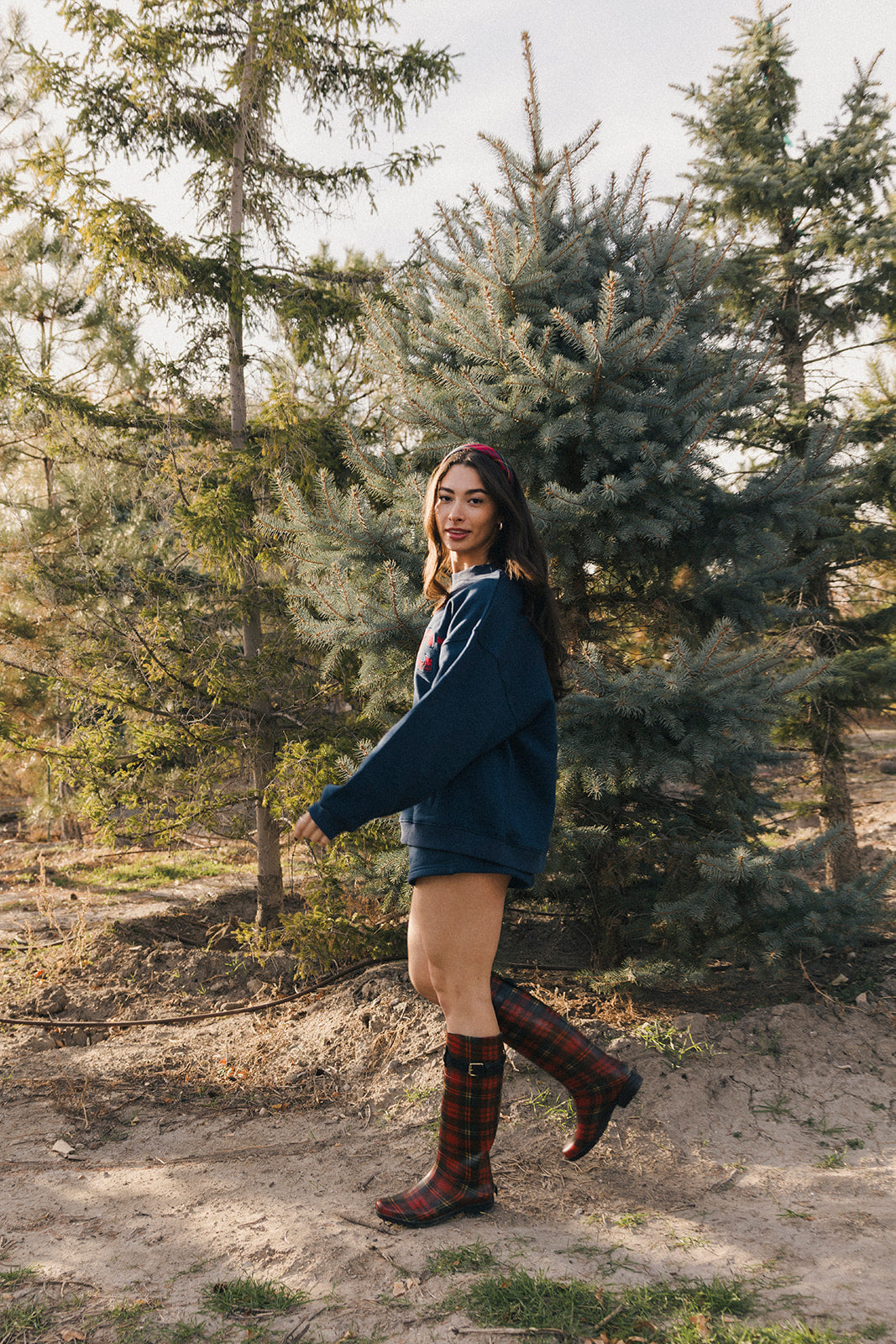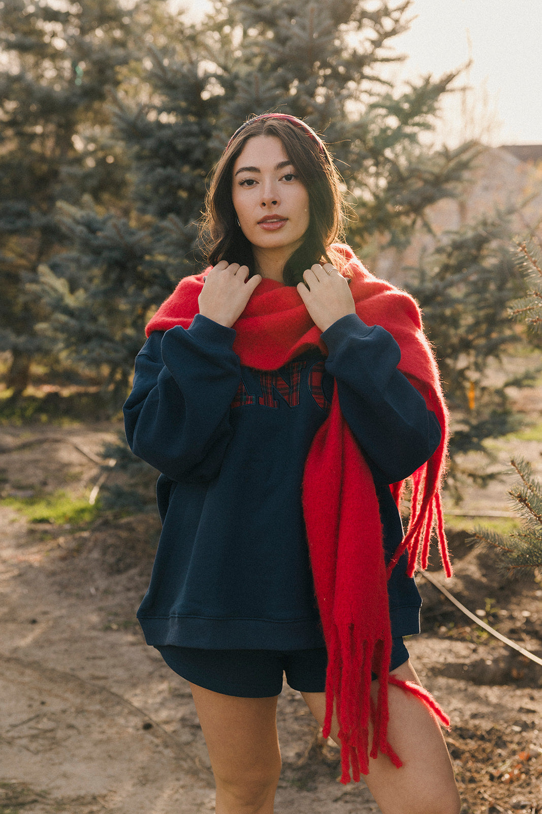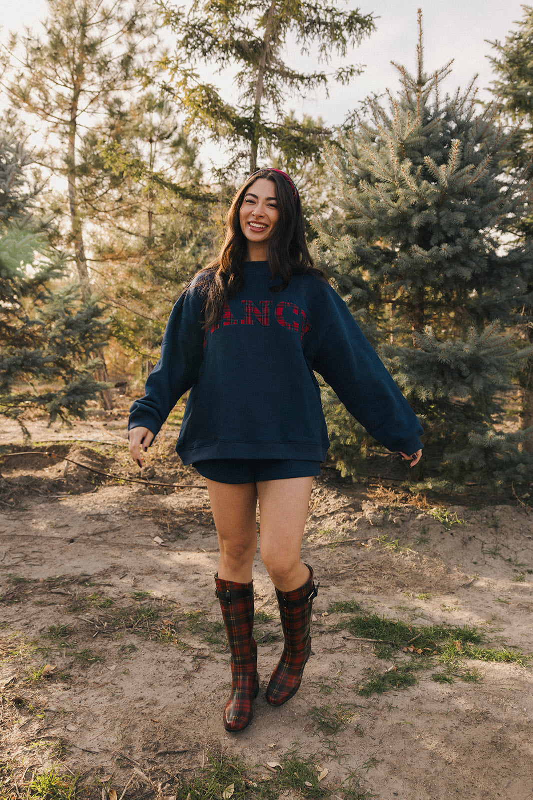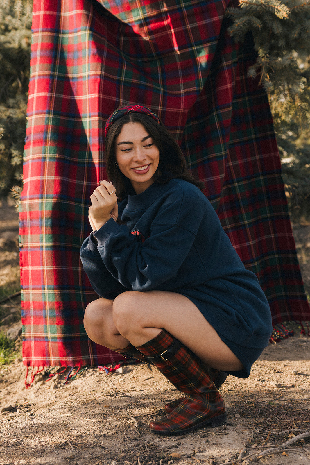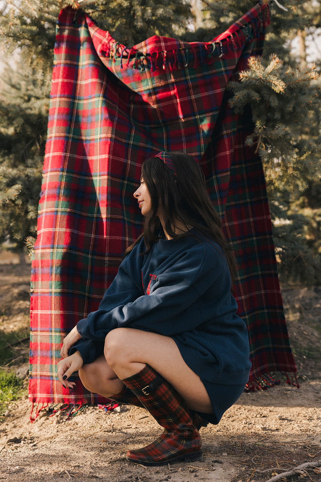 Fancy Oversized Fleece Mockneck - Midnight Navy/Red Plaid
