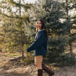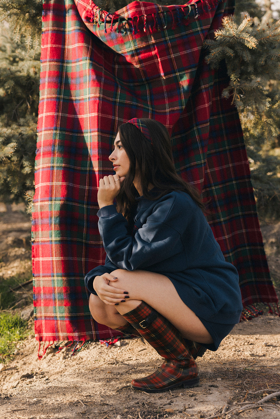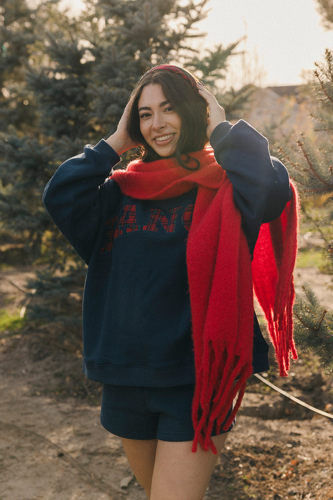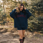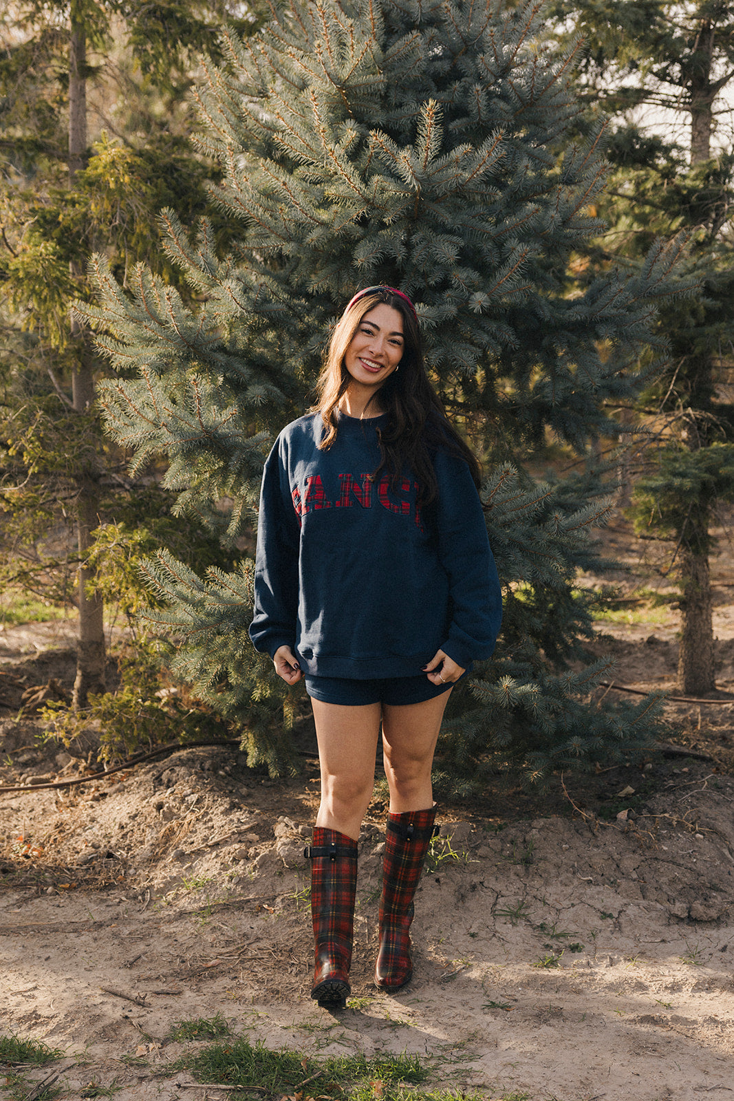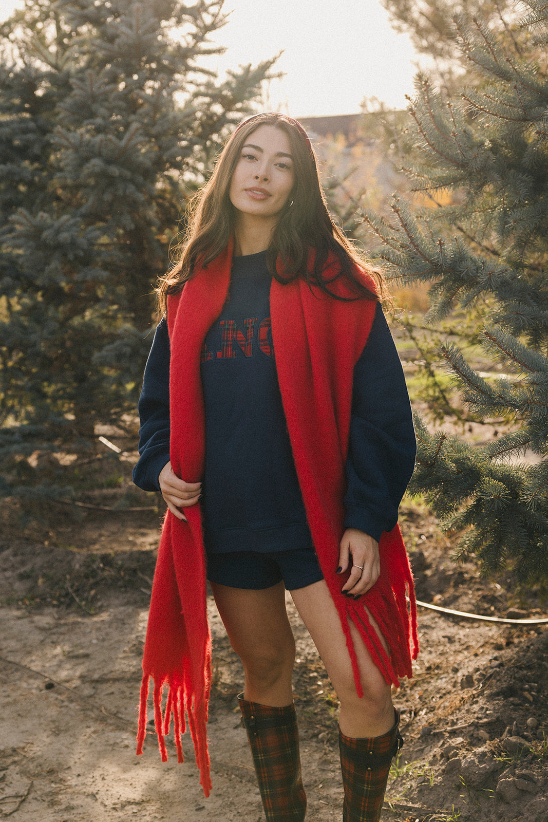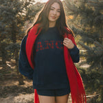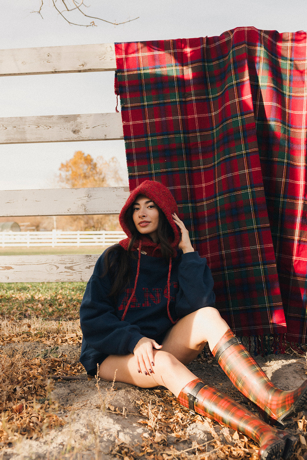 Fancy Oversized Fleece Mockneck - Midnight Navy/Red Plaid