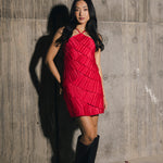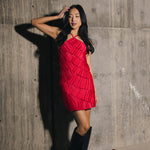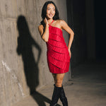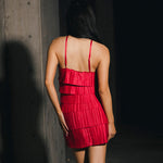 Farrah Pleated Satin Tiered Mini Dress - Raspberry