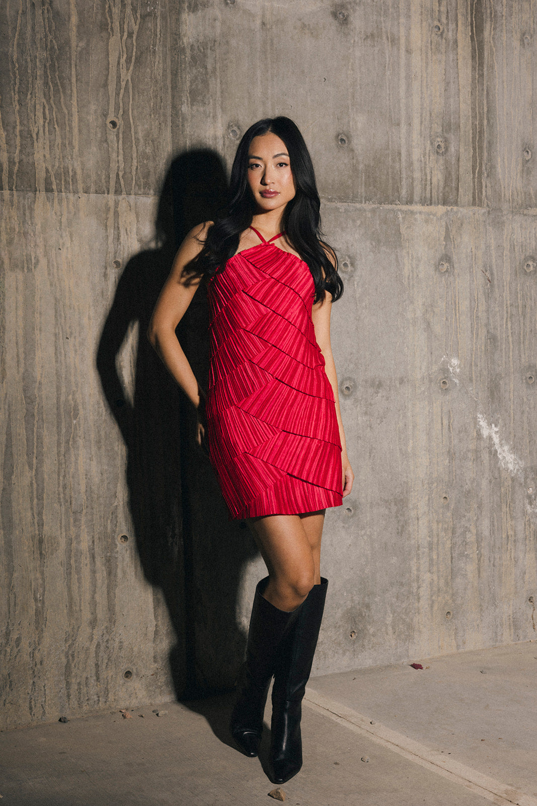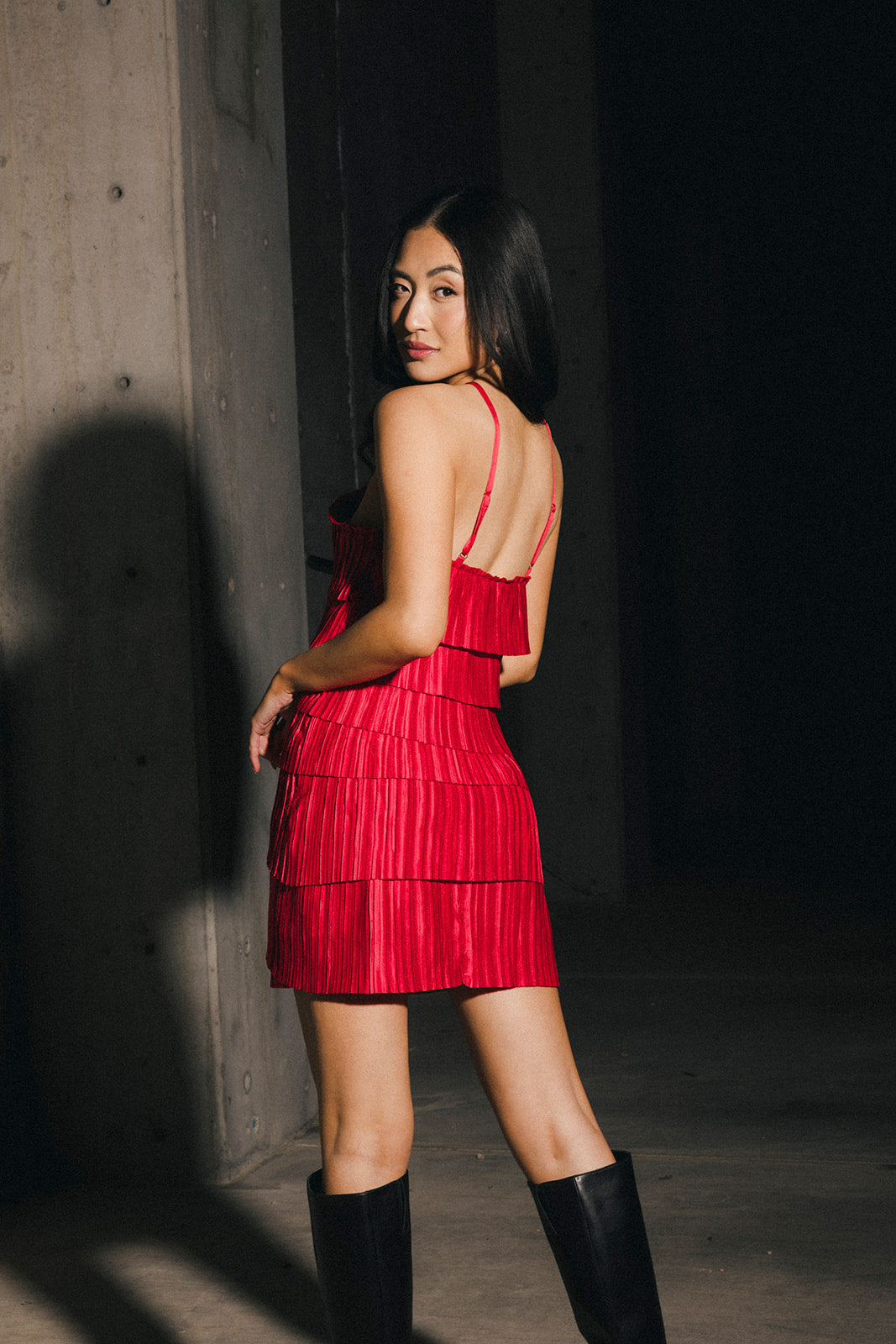Elevate your wardrobe with the Farrah Pleated Satin Tiered Mini Dress, a sophisticated piece designed to make you feel confident and beautiful. The luxurious satin fabric drapes elegantly while the delicate pleating adds dimension and movement. Tiered layers create a flattering silhouette that works for countless occasions—from dinner dates to special events. This versatile midi dress combines timeless style with modern details, ensuring you'll reach for it again and again. Perfect for anyone seeking polished elegance with effortless grace.