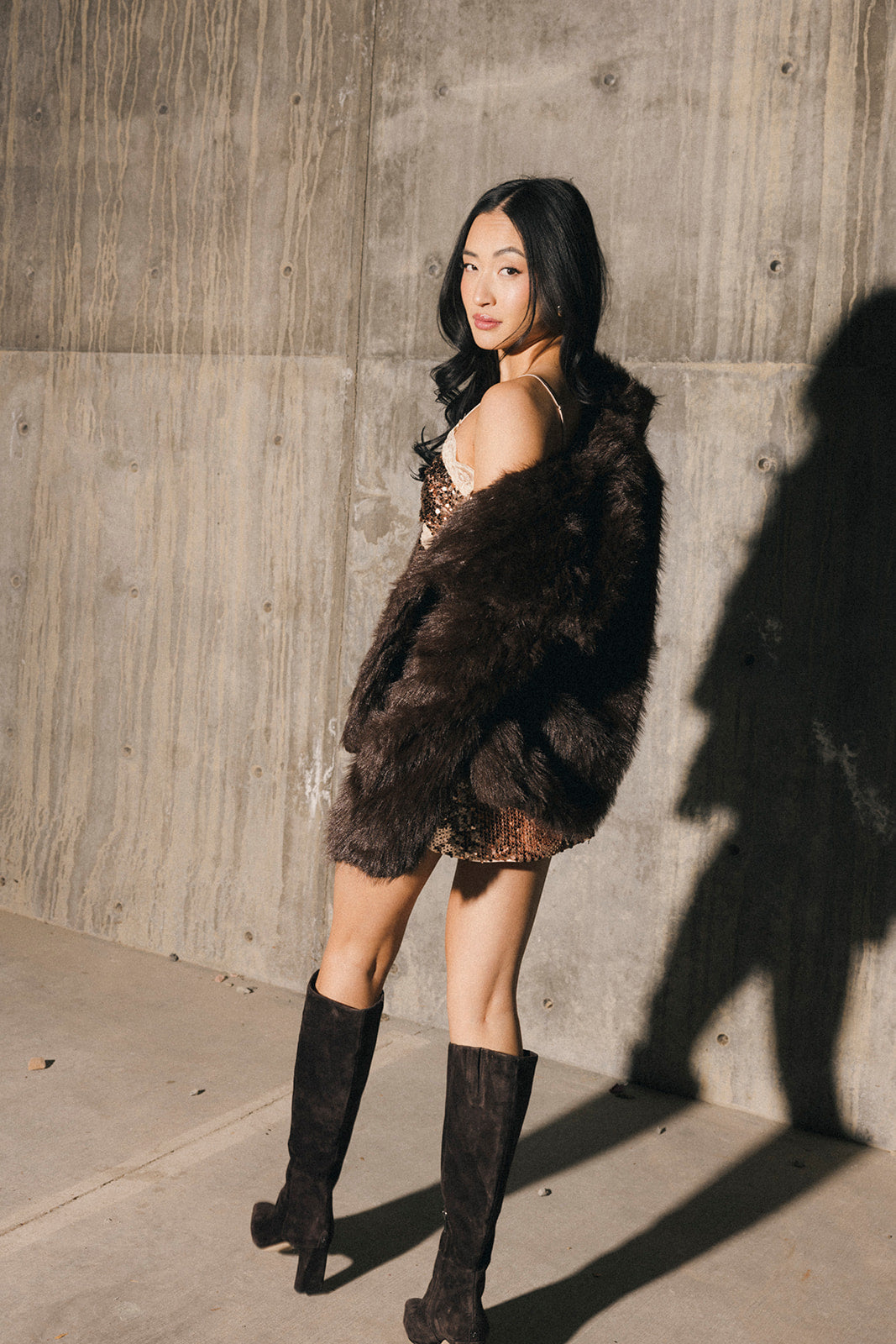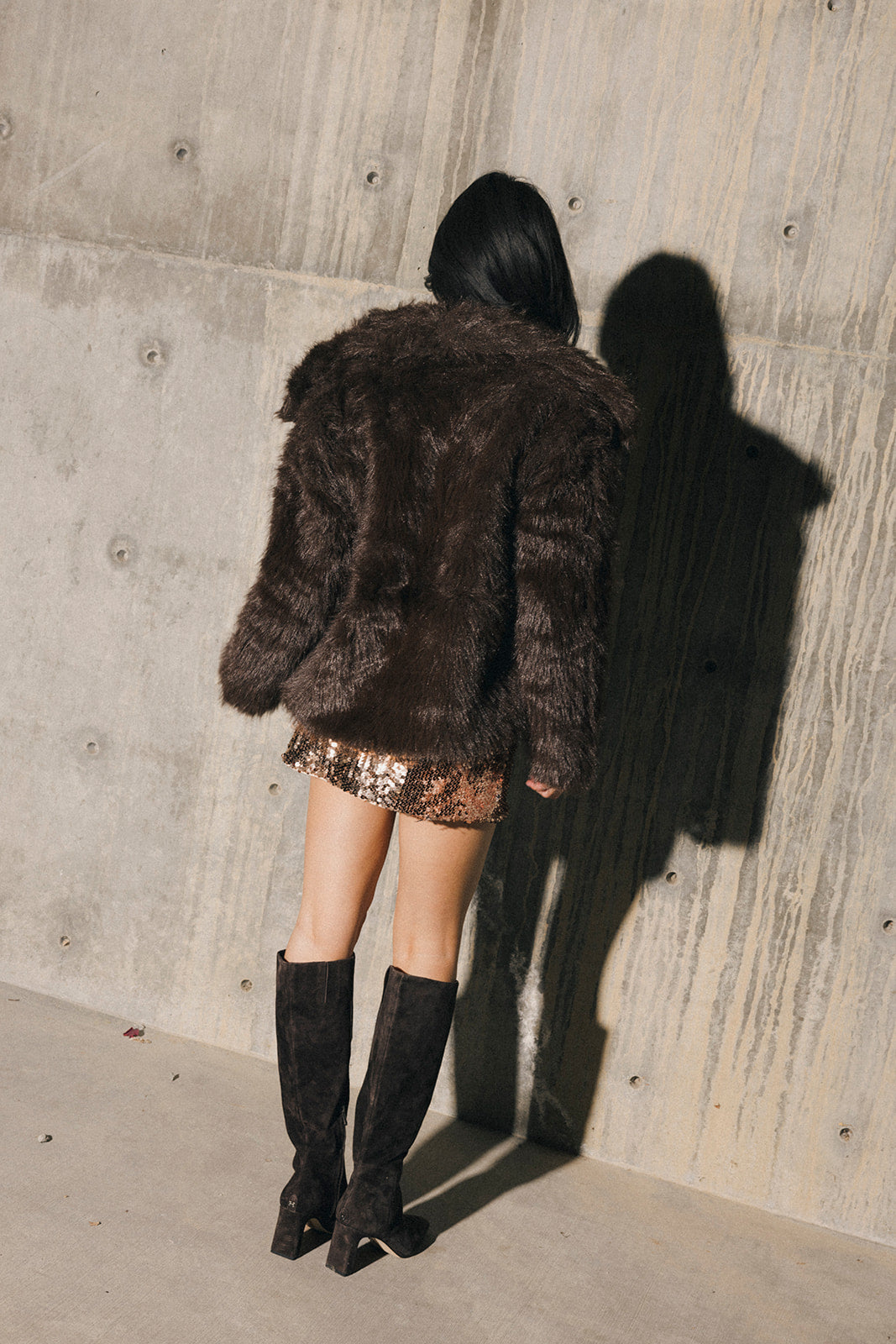 Wrap yourself in luxury this season with our Solid Faux Fur Coat in rich brown. This trendy winter essential combines softness with sophistication, delivering warmth without the weight. The plush faux fur texture adds instant glamour to any outfit, while the classic brown shade pairs effortlessly with your existing wardrobe. Perfect for chilly days and special occasions alike, this coat keeps you cozy and stylish from morning to night.