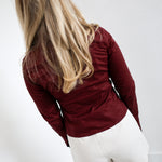 Gia Button Long Sleeve Top - Burgundy