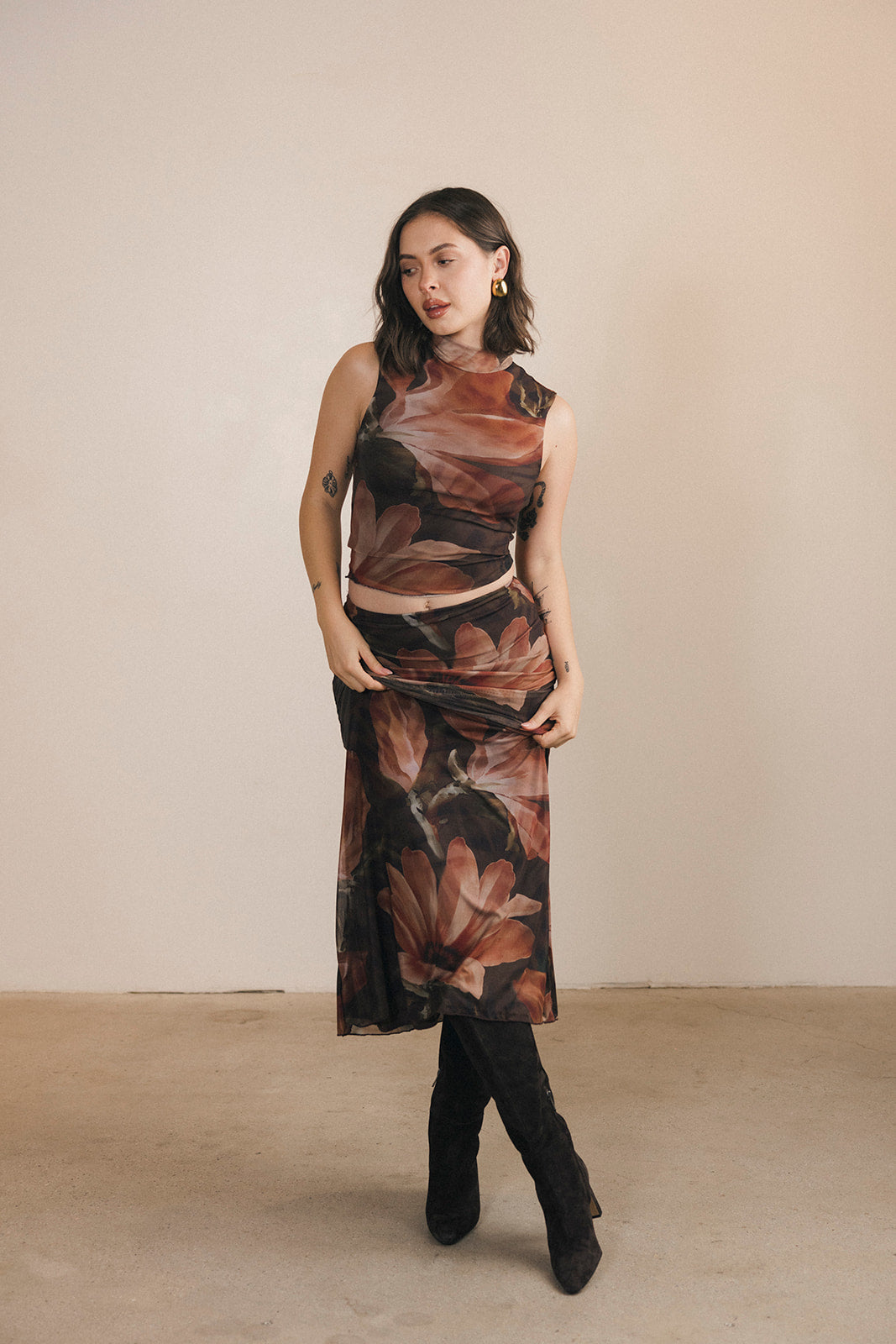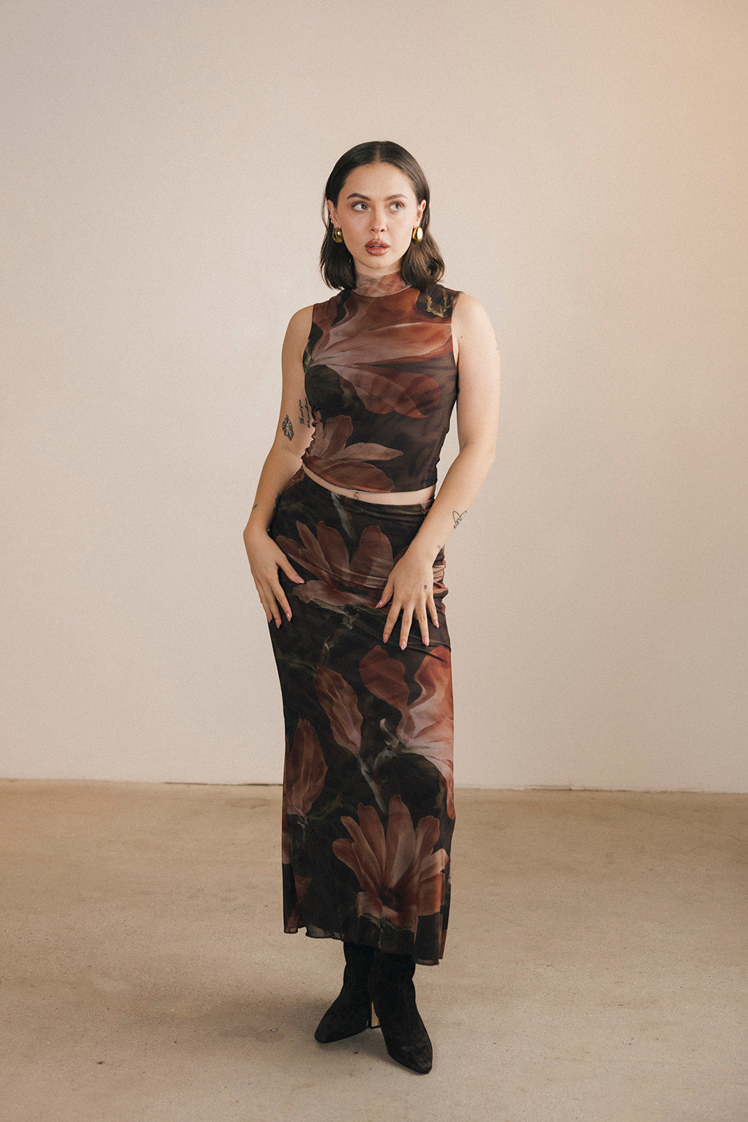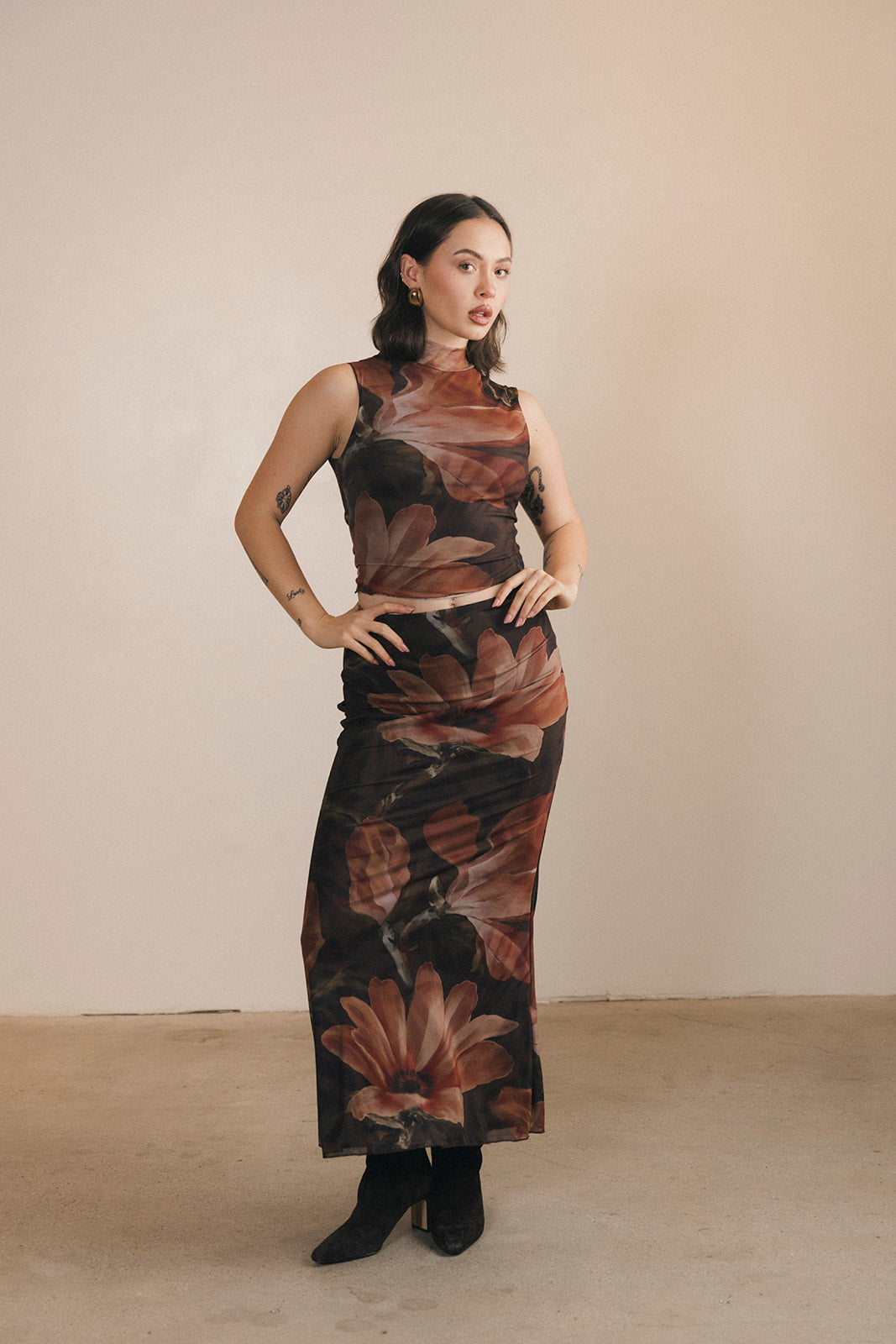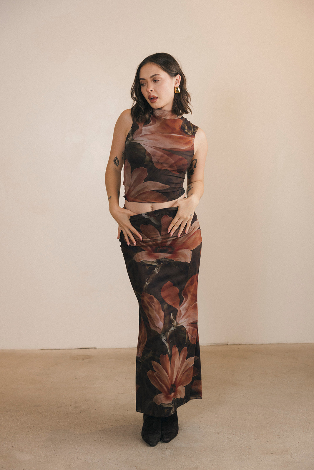 Halle Top and Maxi Skirt Set - Brown/Orange