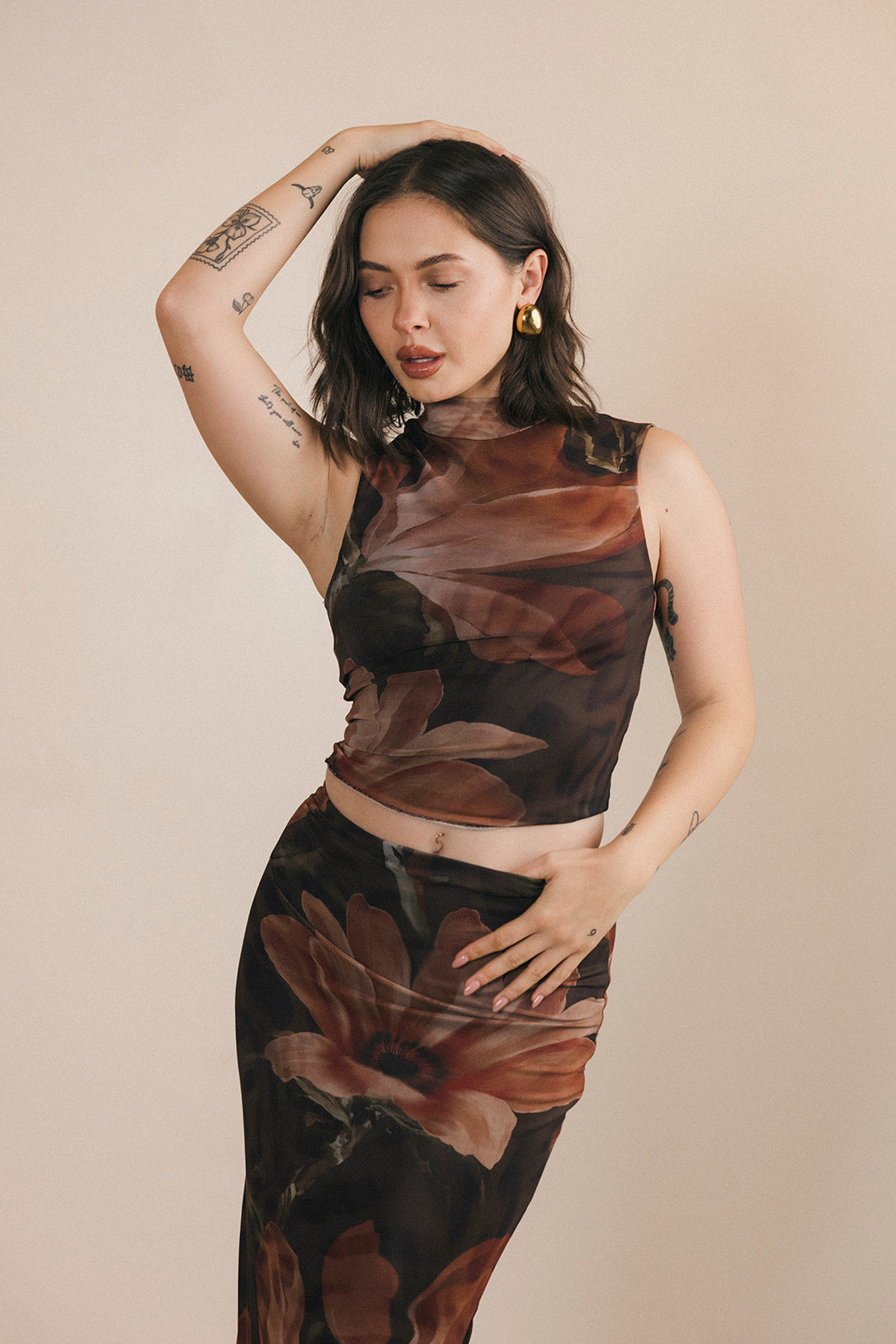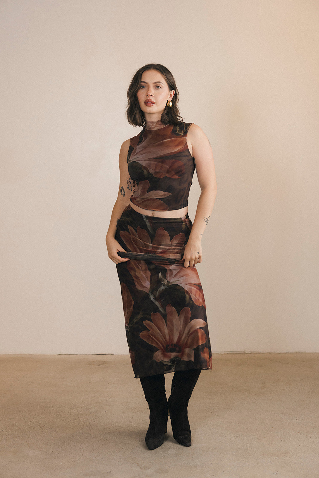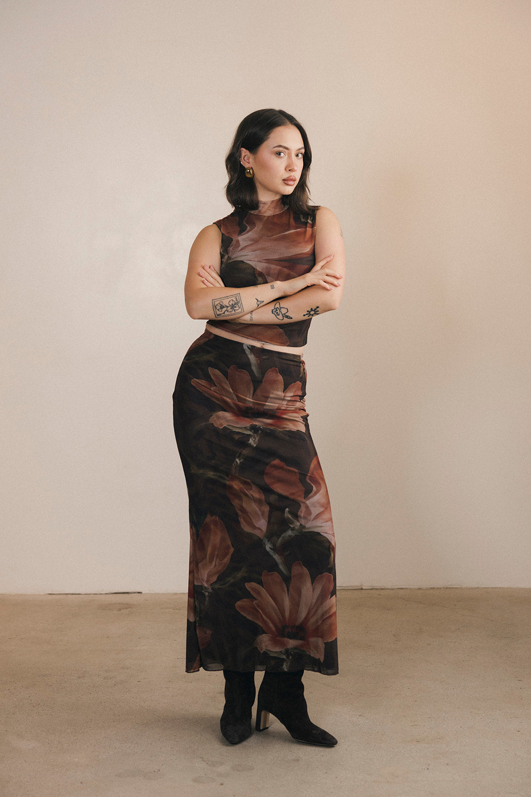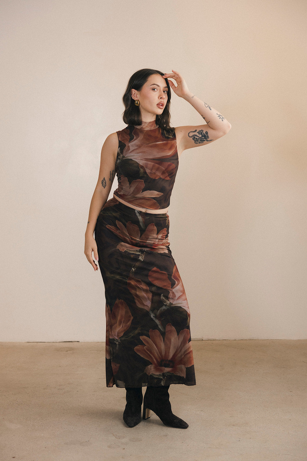 Halle Top and Maxi Skirt Set - Brown/Orange