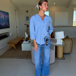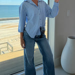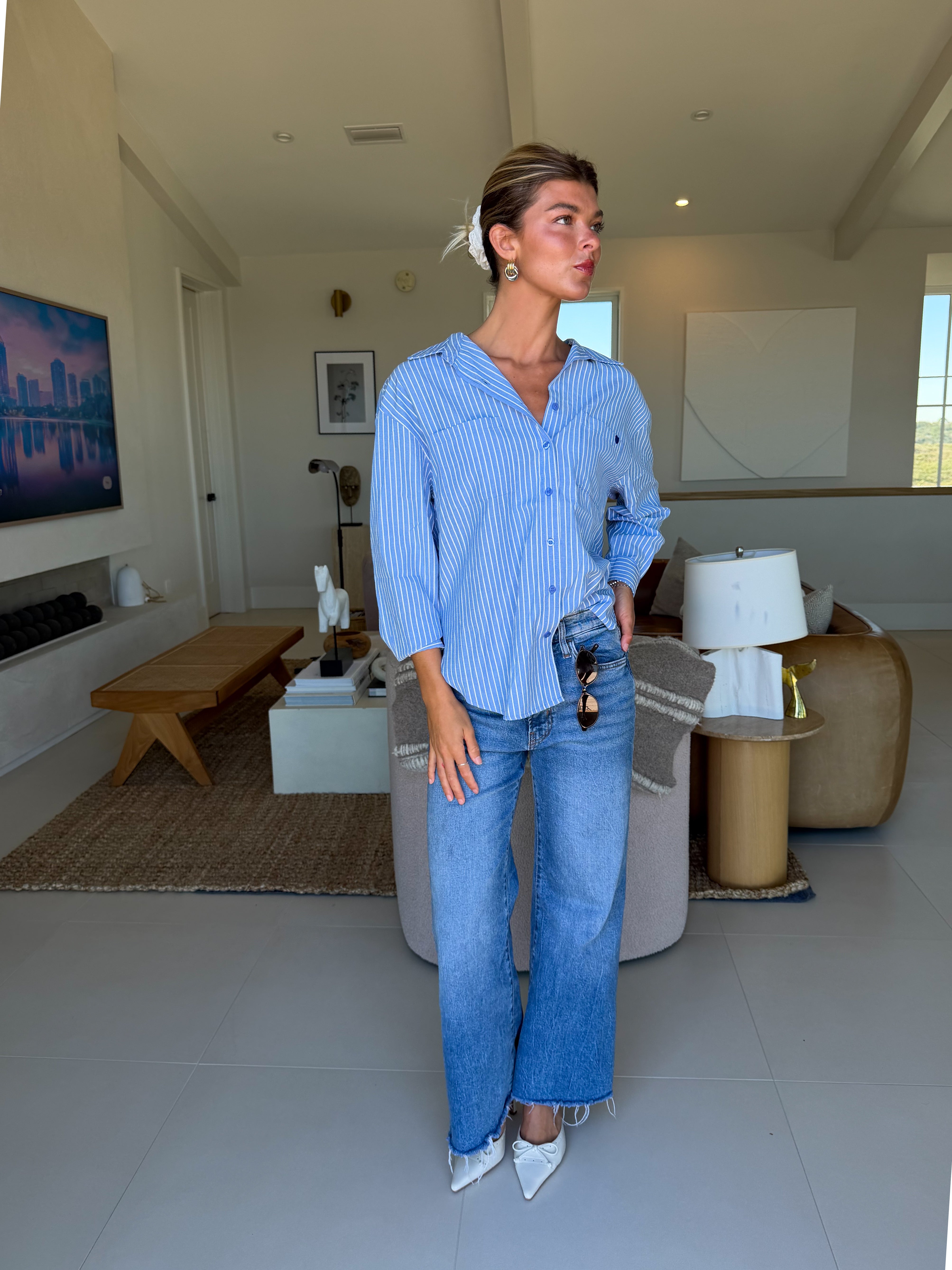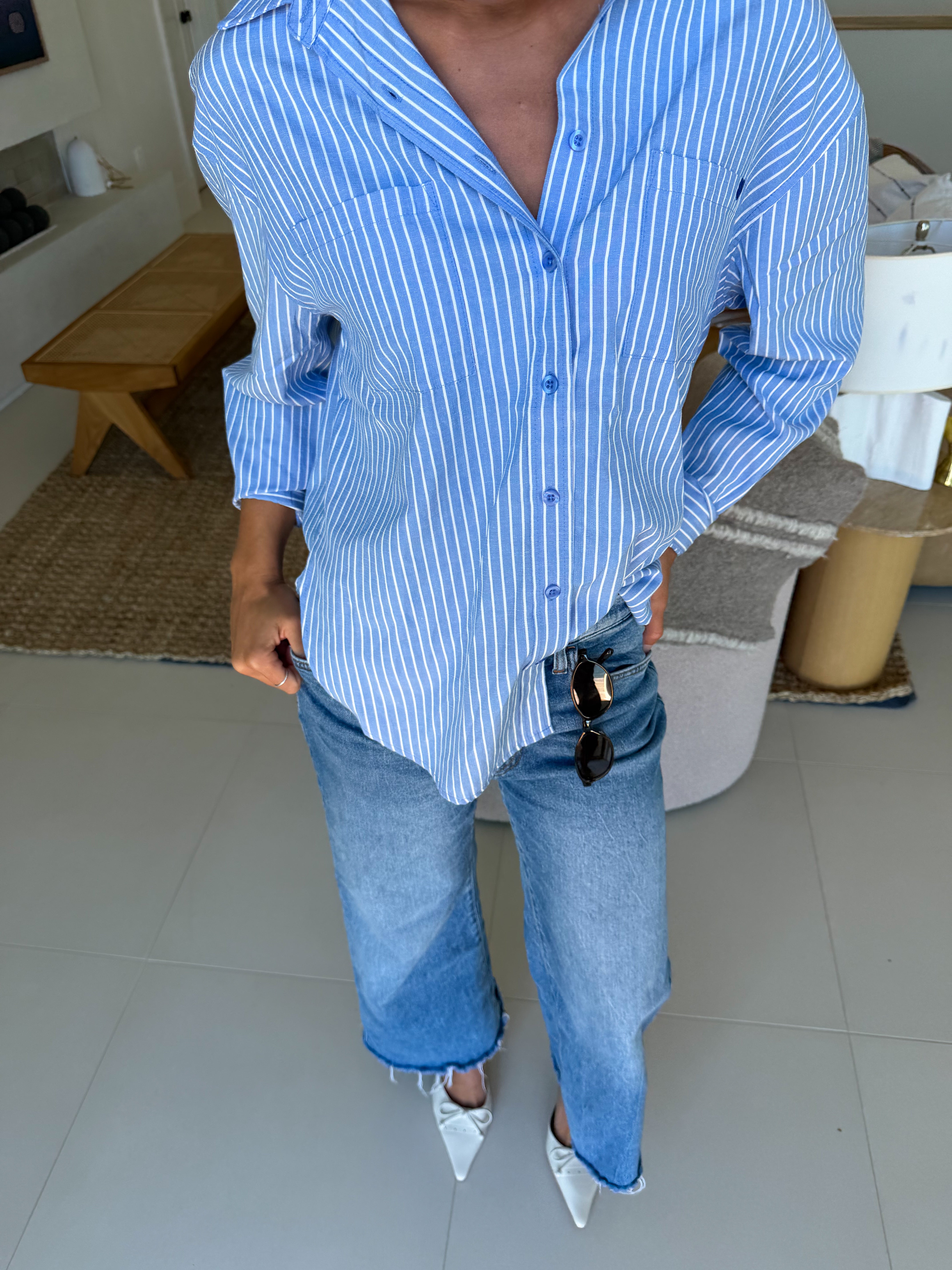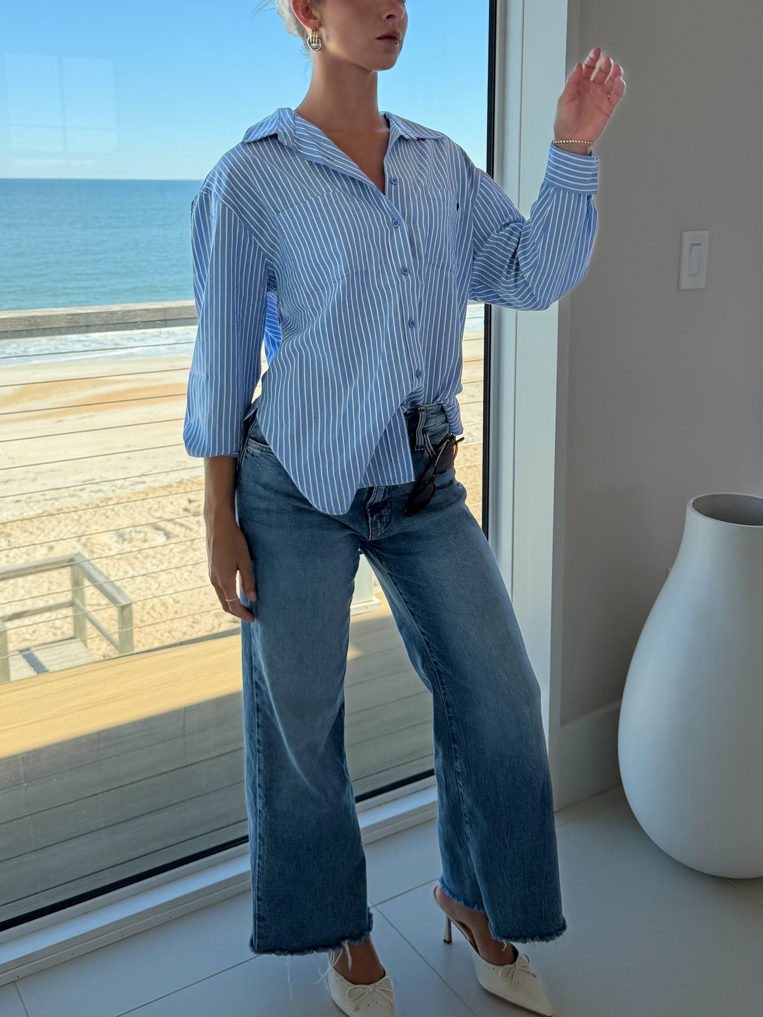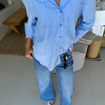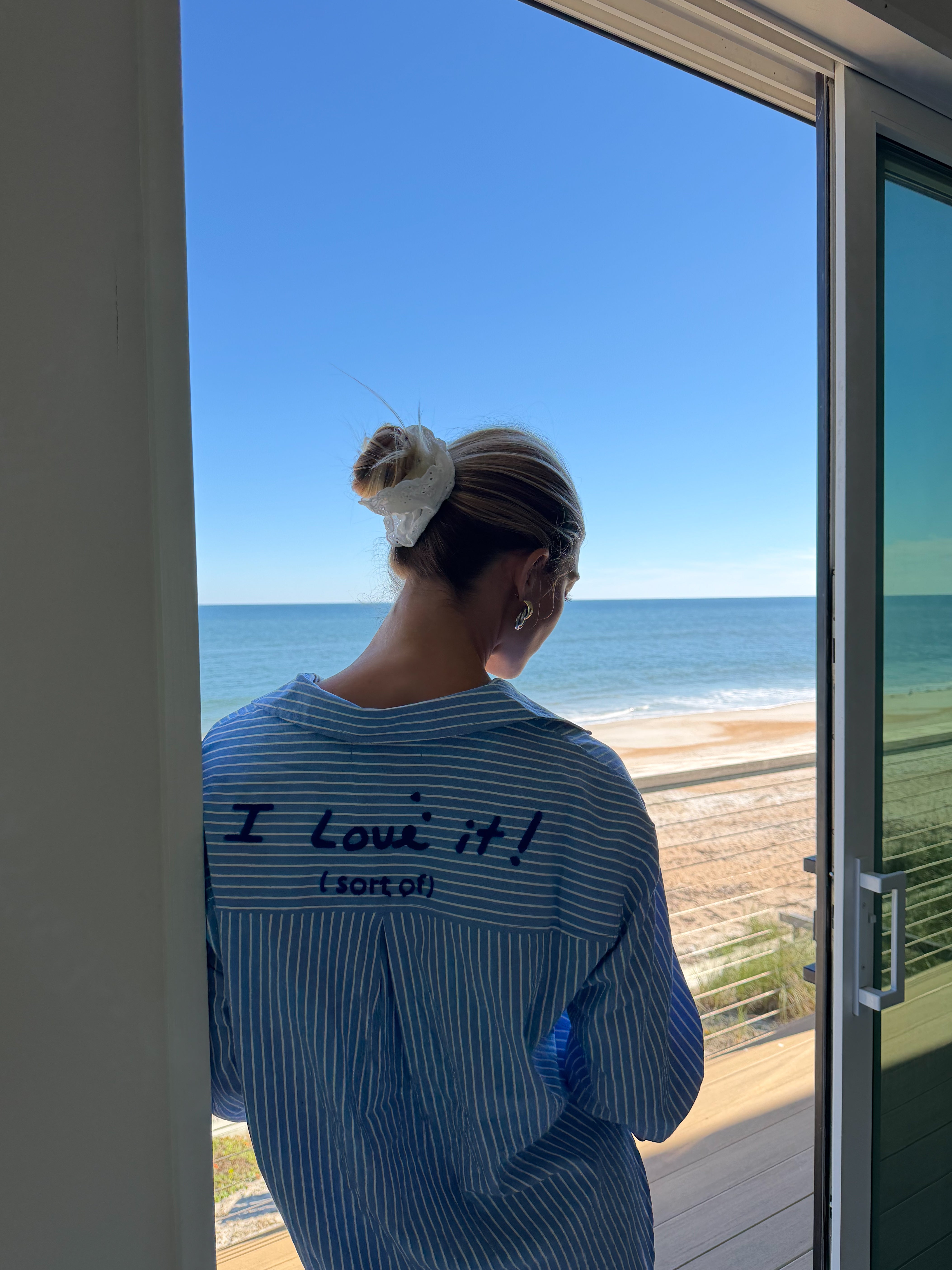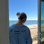 Express your enthusiasm with this playful button-down shirt from our spirited collection. Featuring charming embroidery that celebrates positivity, this premium oversized striped dress shirt combines comfort with personality. The relaxed fit and quality construction make it perfect for layering or wearing solo. A versatile piece that brings joy to your everyday wardrobe while keeping you looking effortlessly put-together.