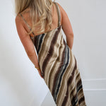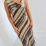 Jane Sleeveless Cowl Neck Dress - Mocha Stripe