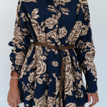 Jennifer Belted Mini Dress - Midnight Blue Cream