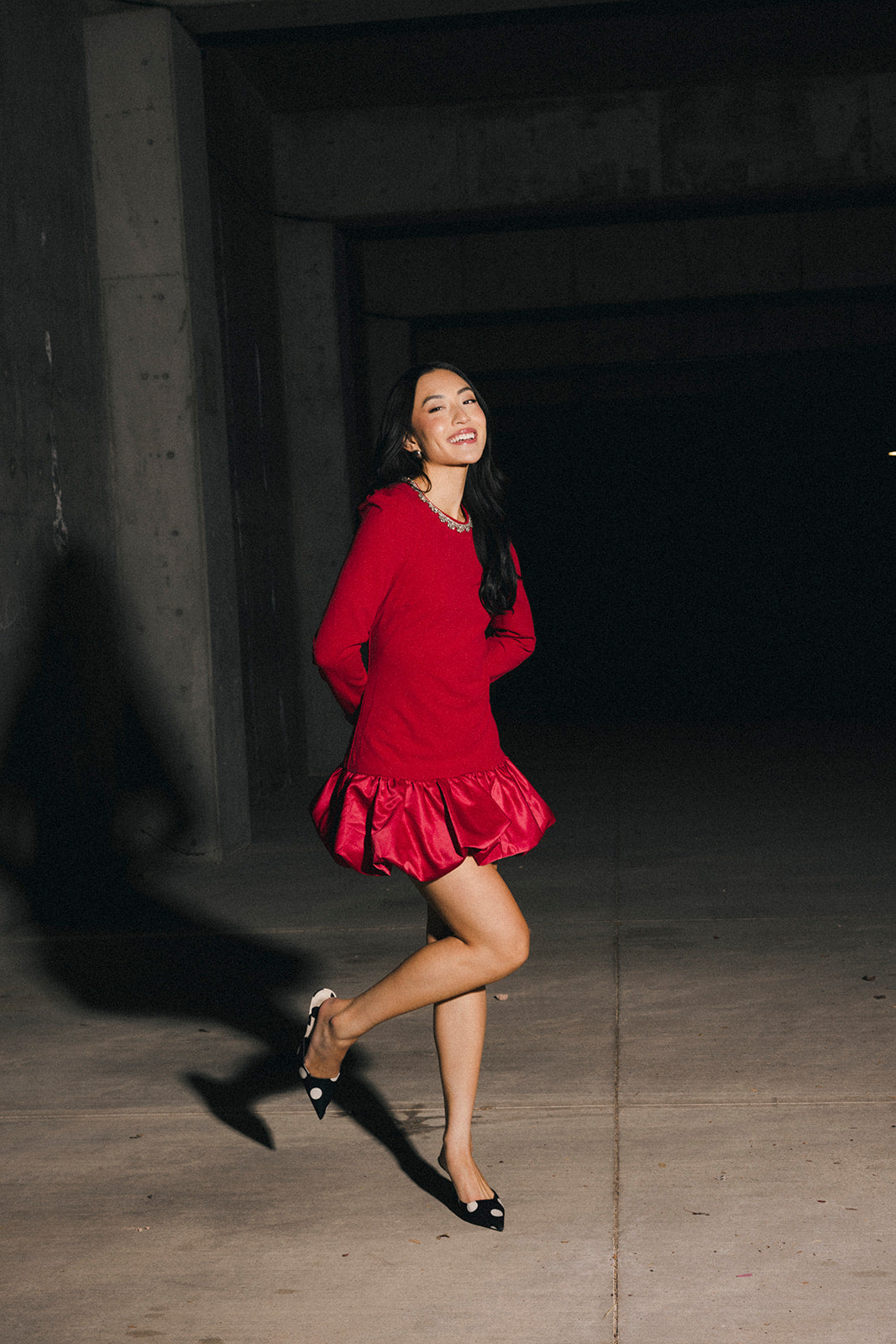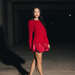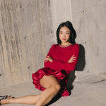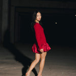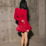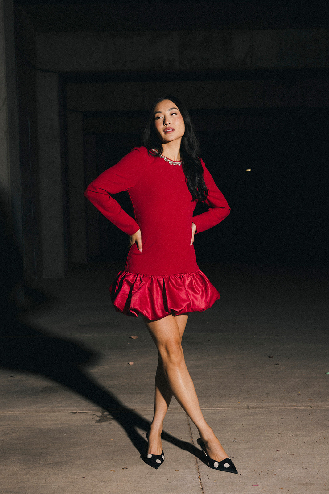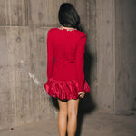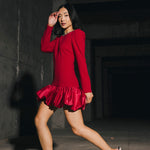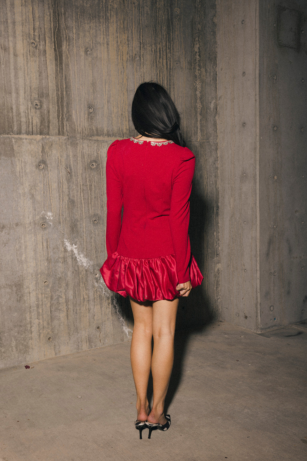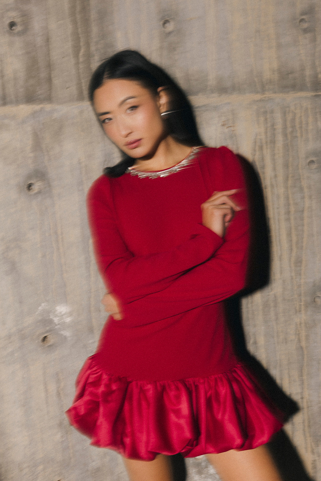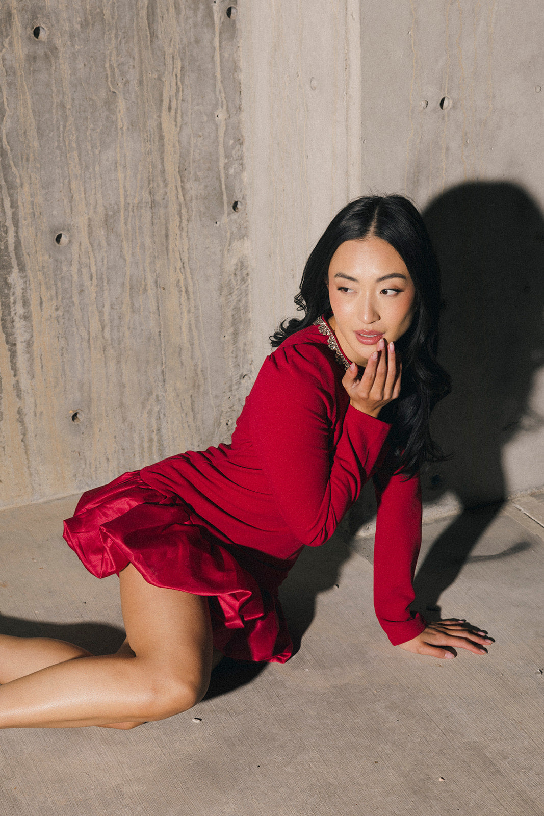 This stunning ruby mini dress combines timeless elegance with contemporary flair. Sparkling jewel accents frame the neckline, while voluminous puff sleeves add dimension and sophistication to your silhouette. The luxurious satin fabric creates a lustrous bubble hem that catches the light beautifully, giving you movement and presence. A discreet back zipper ensures a polished, custom fit every time. Perfect for making an unforgettable impression at cocktails, celebrations, or special evenings out, this dress empowers you to feel confident and radiant.