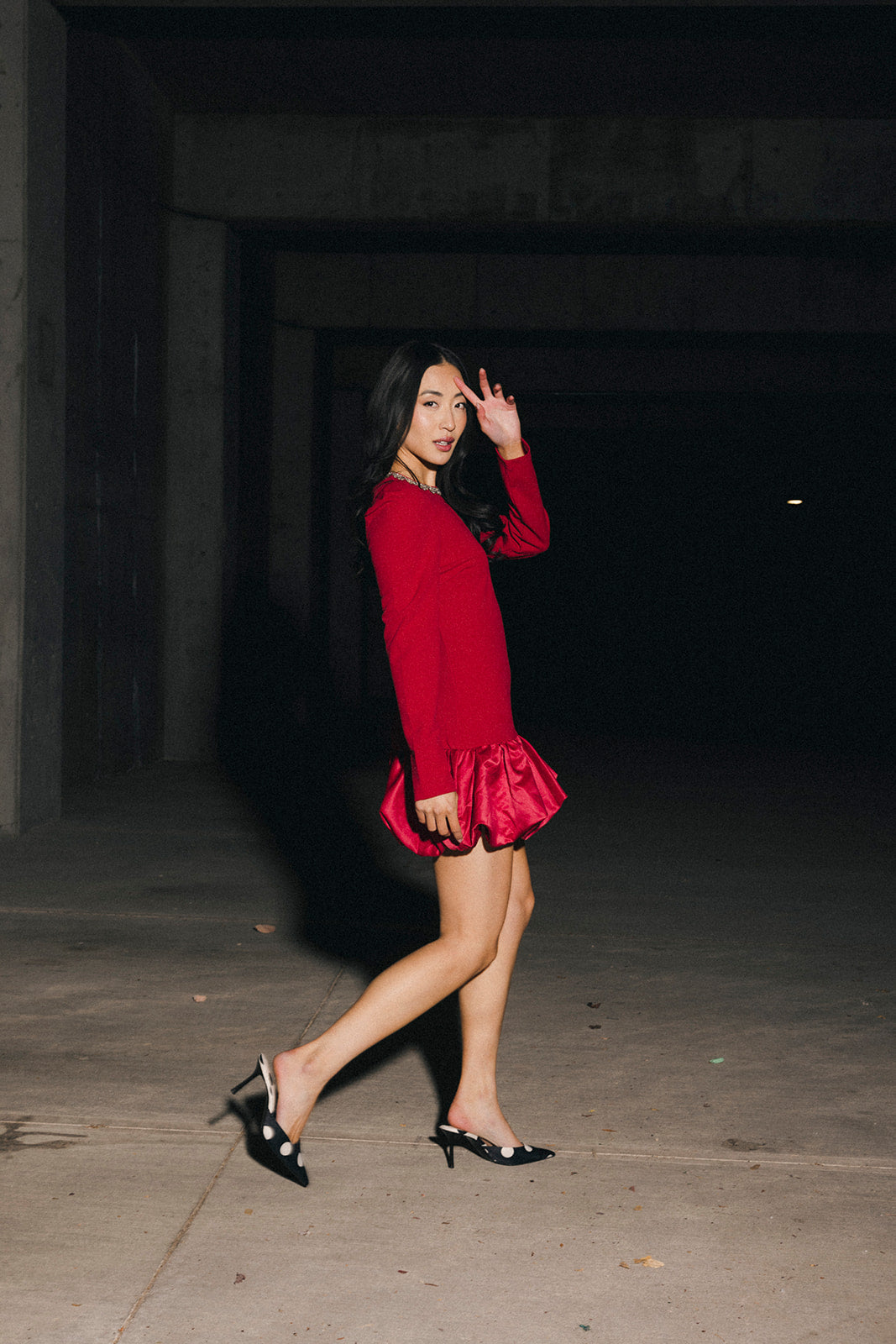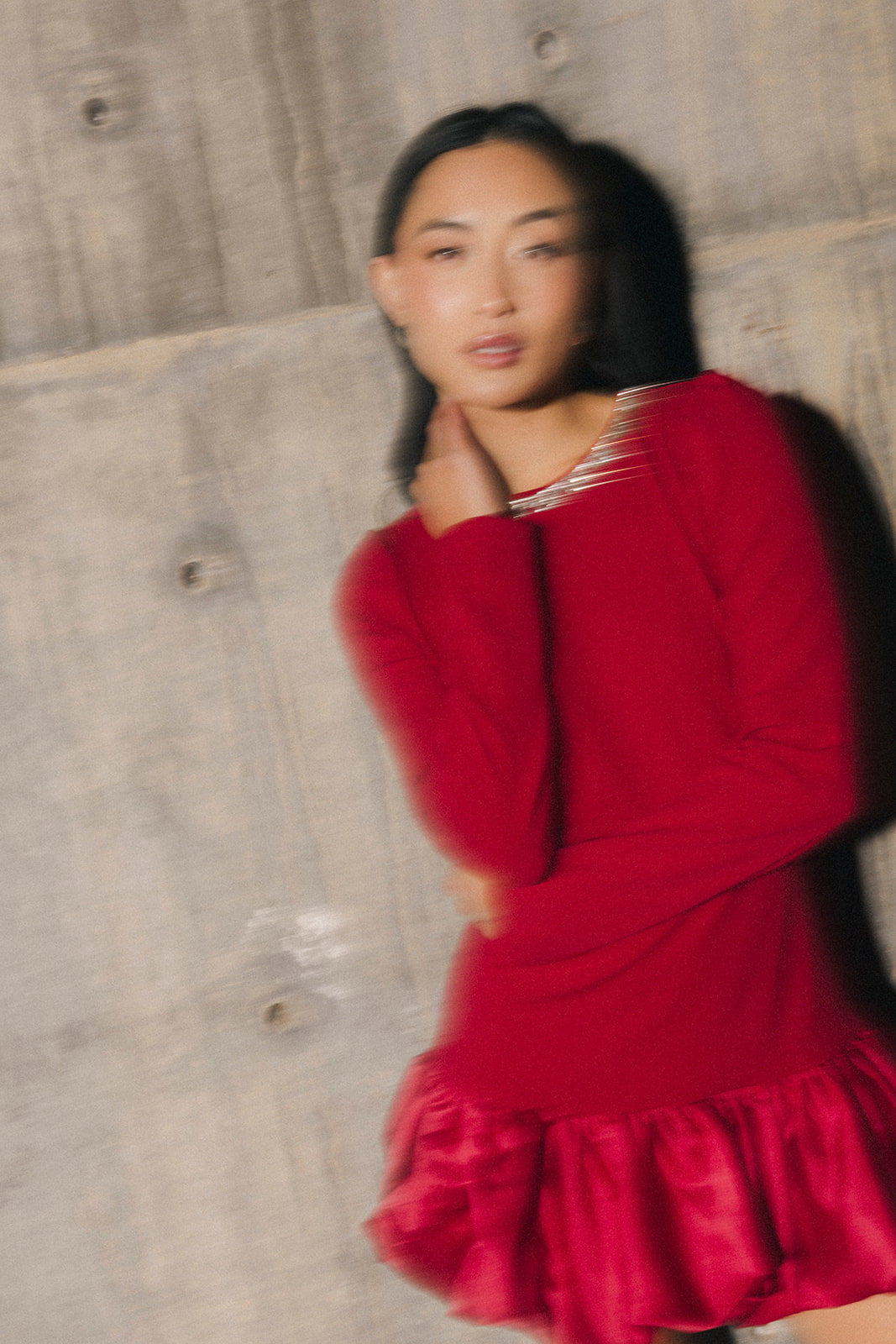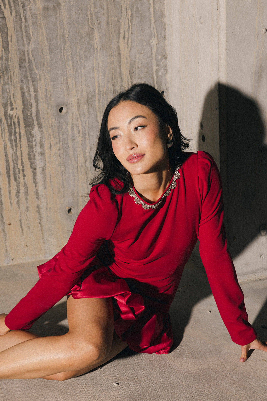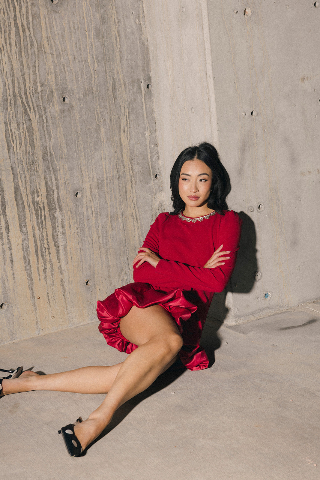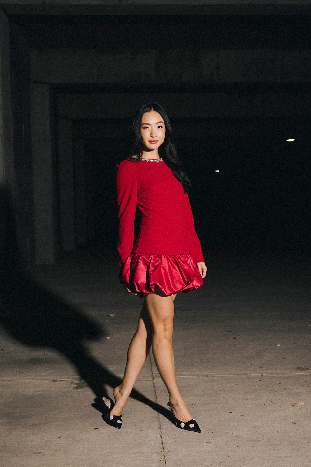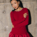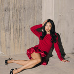 This stunning ruby mini dress combines timeless elegance with contemporary flair. Sparkling jewel accents frame the neckline, while voluminous puff sleeves add dimension and sophistication to your silhouette. The luxurious satin fabric creates a lustrous bubble hem that catches the light beautifully, giving you movement and presence. A discreet back zipper ensures a polished, custom fit every time. Perfect for making an unforgettable impression at cocktails, celebrations, or special evenings out, this dress empowers you to feel confident and radiant.
