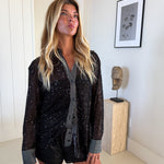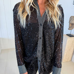 Elevate your party look with the Jodee Sequin Set in Black. This eye-catching set combines shimmering sequins with subtle stripes and a classic collar, creating a stylish and festive statement. Its see-through design adds a daring touch while keeping the fit comfortable for all-night wear. Perfect for celebrations where you want to shine with confidence and flair.