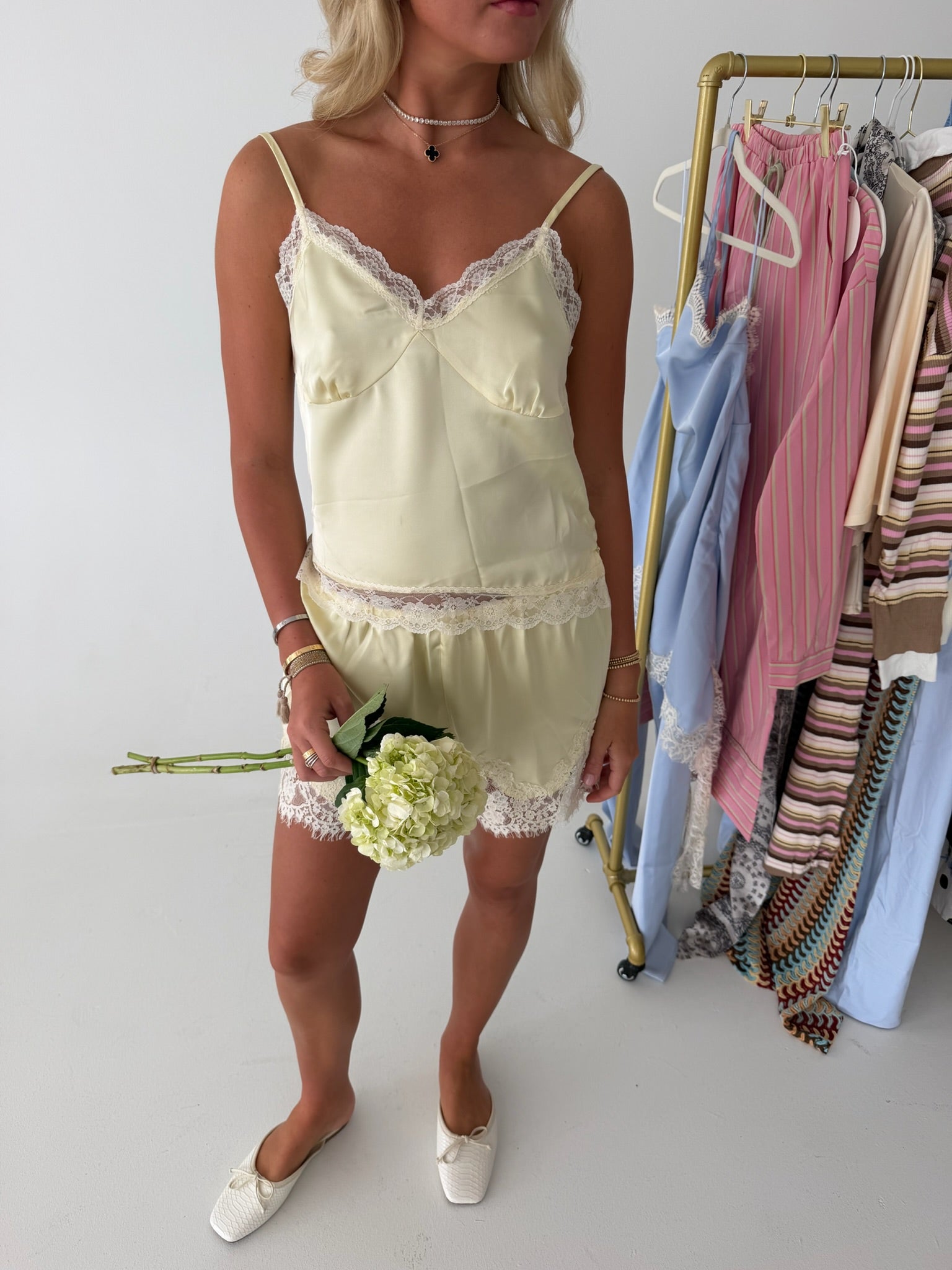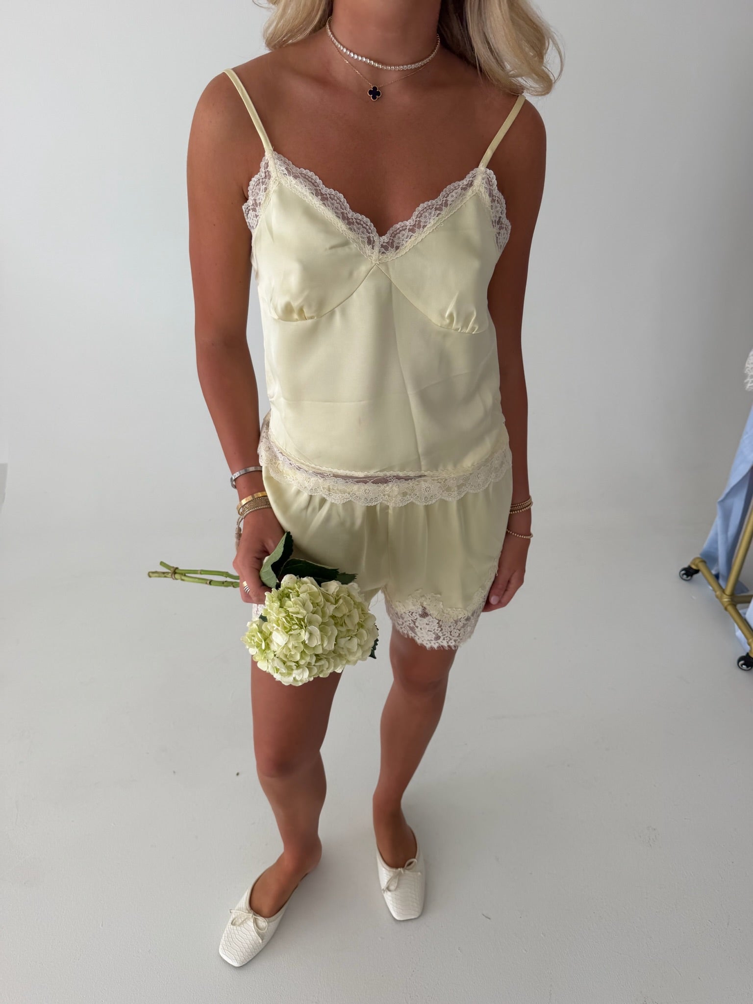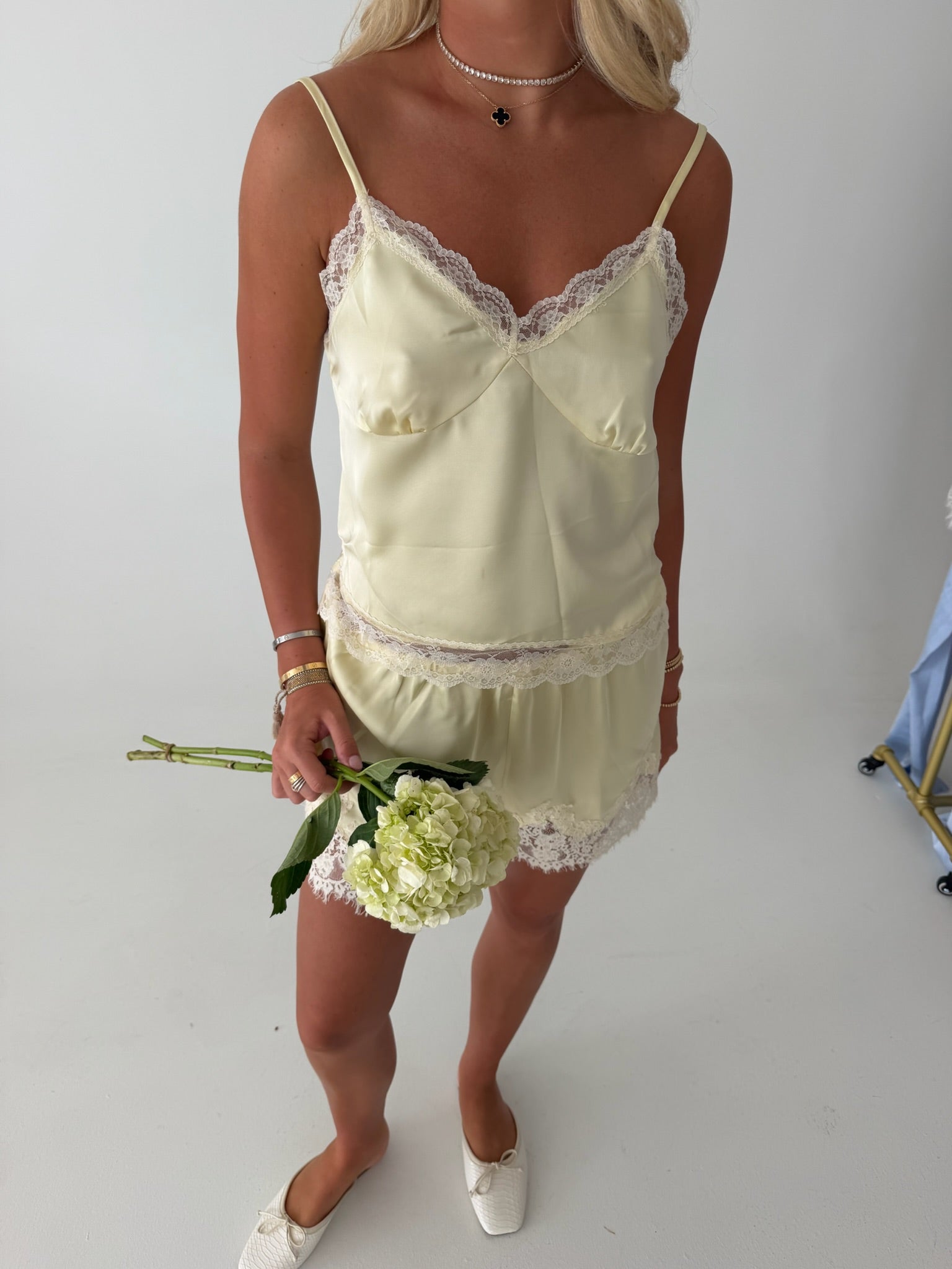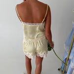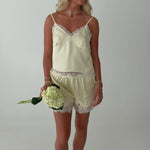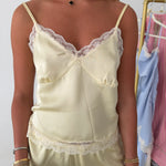 Elevate your everyday wardrobe with the Lace Detail Top. This sophisticated piece combines luxurious midweight satin with delicate lace accents, creating an effortlessly chic look. The relaxed, sleeveless silhouette flatters every frame, while the V-neckline adds an elegant touch. Adjustable straps ensure a personalized fit, and the bust seam detailing provides subtle structure and dimension. Perfect for dressing up or down, this versatile top transitions seamlessly from office to evening occasions.