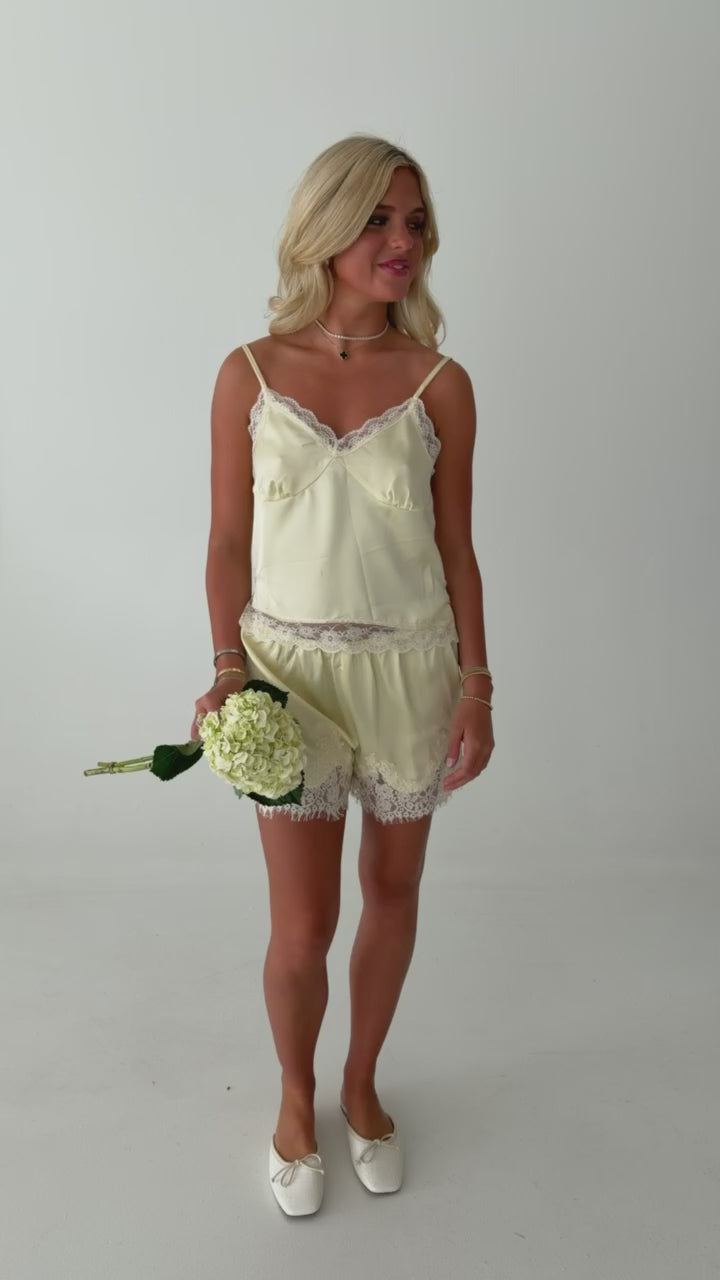 Kristen Lace Detail Top - Yellow-Cream