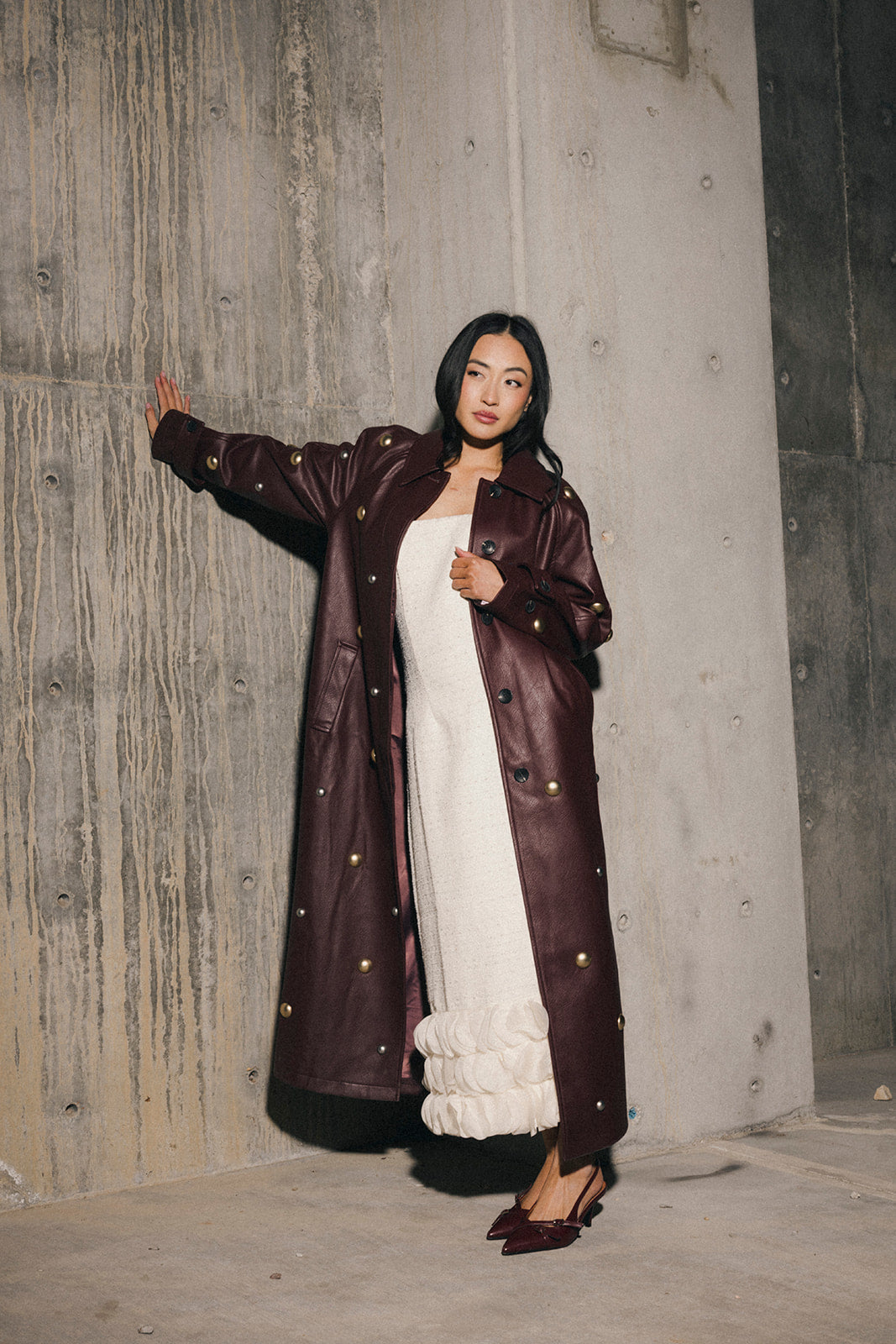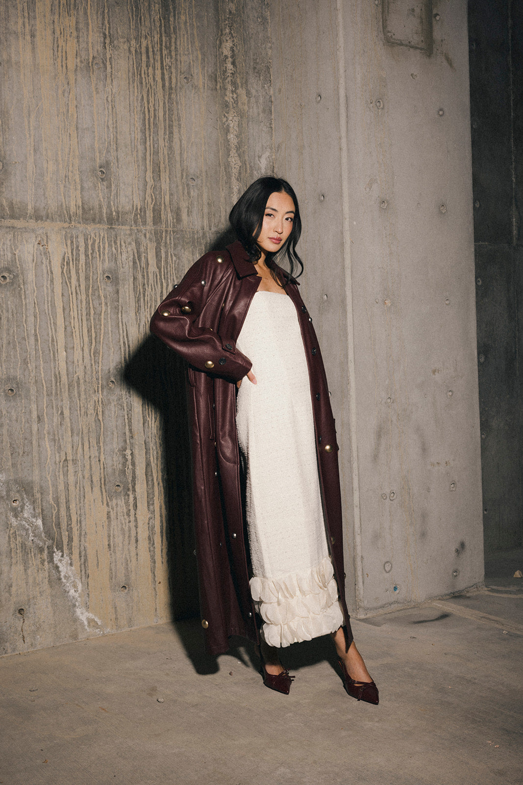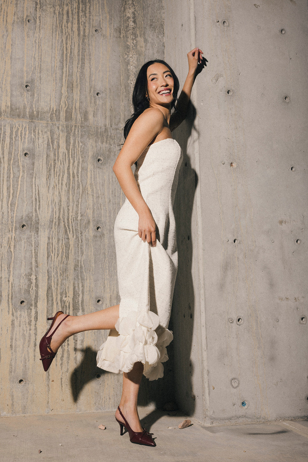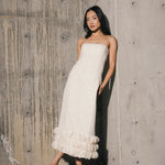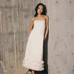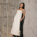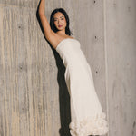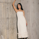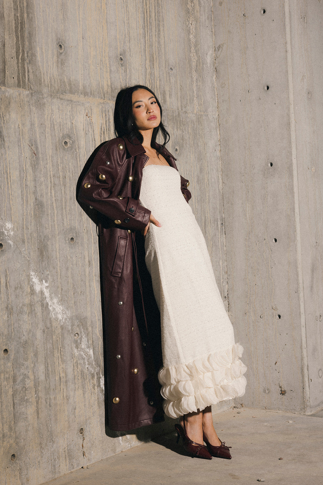 Effortlessly elevate your look with the Kyla Tweed Strapless Dress. The 3D floral texture adds a touch of elegance, while the maxi length and back split hem provide a flattering silhouette. The tweed material ensures both comfort and style, making this the perfect dress for any occasion.