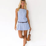 The Lexi Belted Mini Dress in denim offers a stylish open-back design paired with a flattering belted detail to accentuate your waist. This dress combines comfort and fashion, making it a versatile choice for casual outings or special occasions. Its breathable denim fabric ensures ease of wear while the mini length adds a playful touch to your wardrobe.