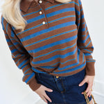 Experience cozy elegance with the Stripe Polo Sweater, designed with three functional buttons for adjustable comfort and a luxurious cashmere-soft finish that feels gentle on your skin. Perfect for layering or as a standalone piece, this sweater combines practicality and softness to keep you comfortably stylish throughout the day.