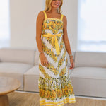 Libby Abstract Floral Pattern Maxi Dress-Yellow/White