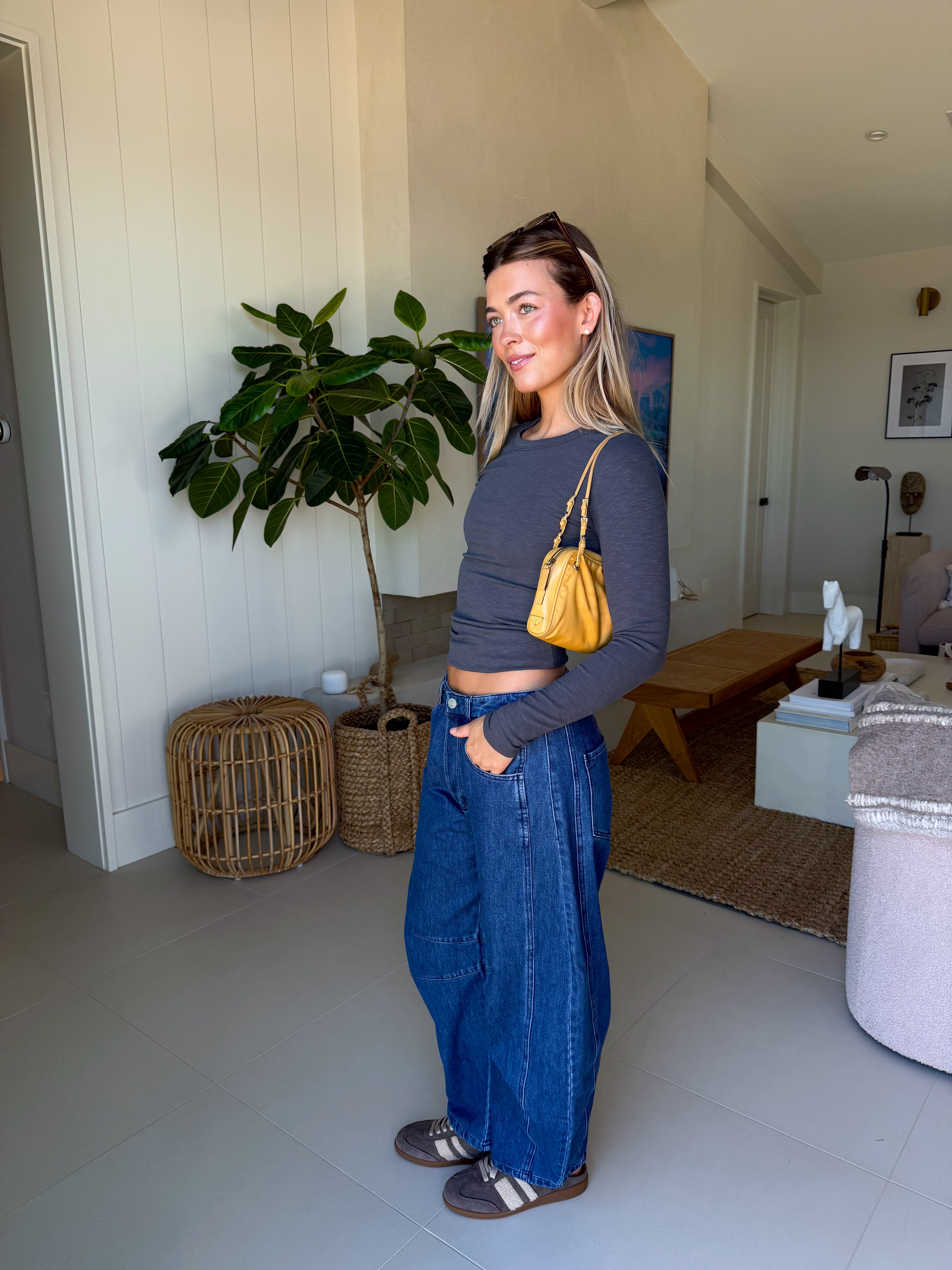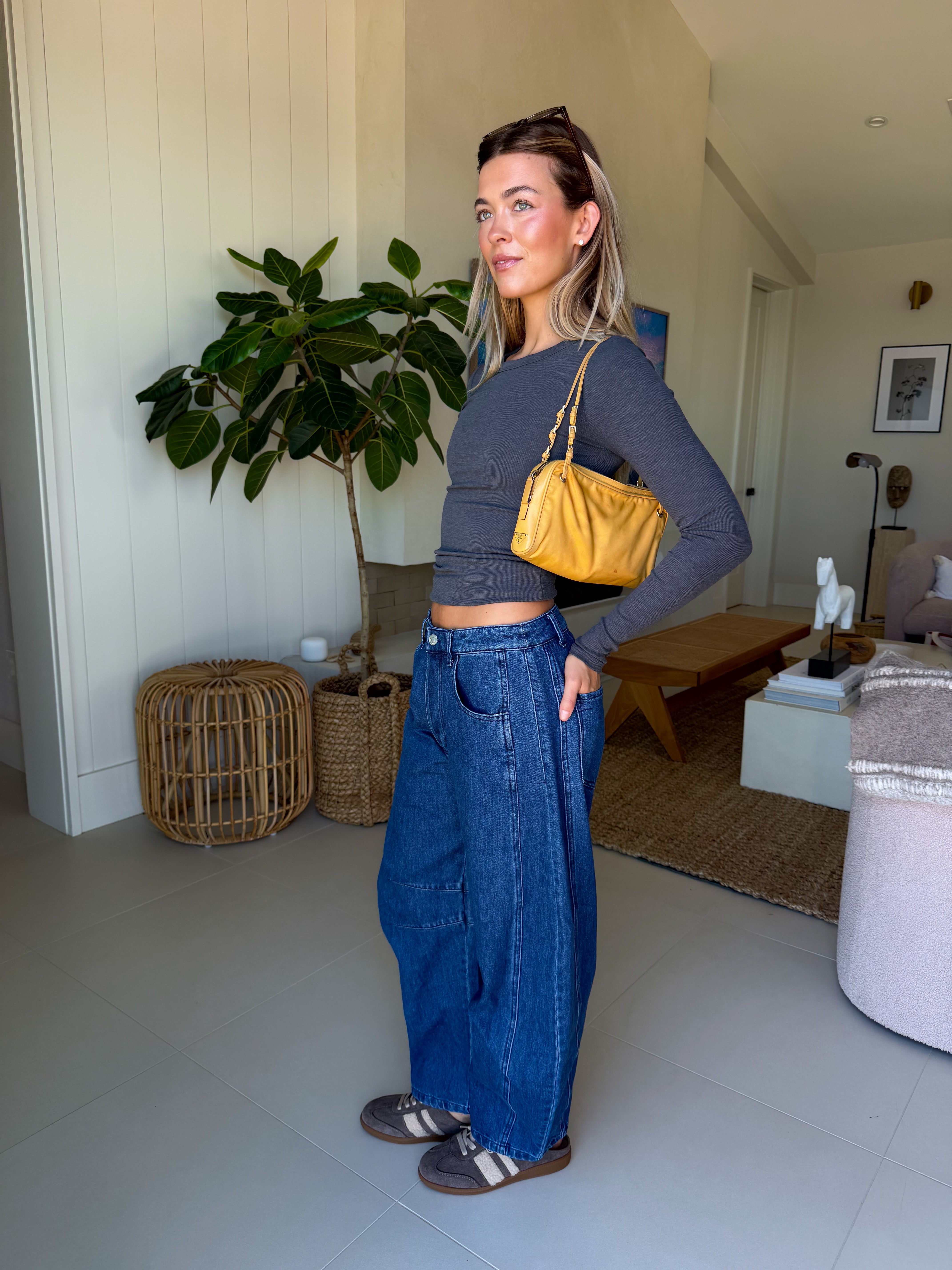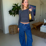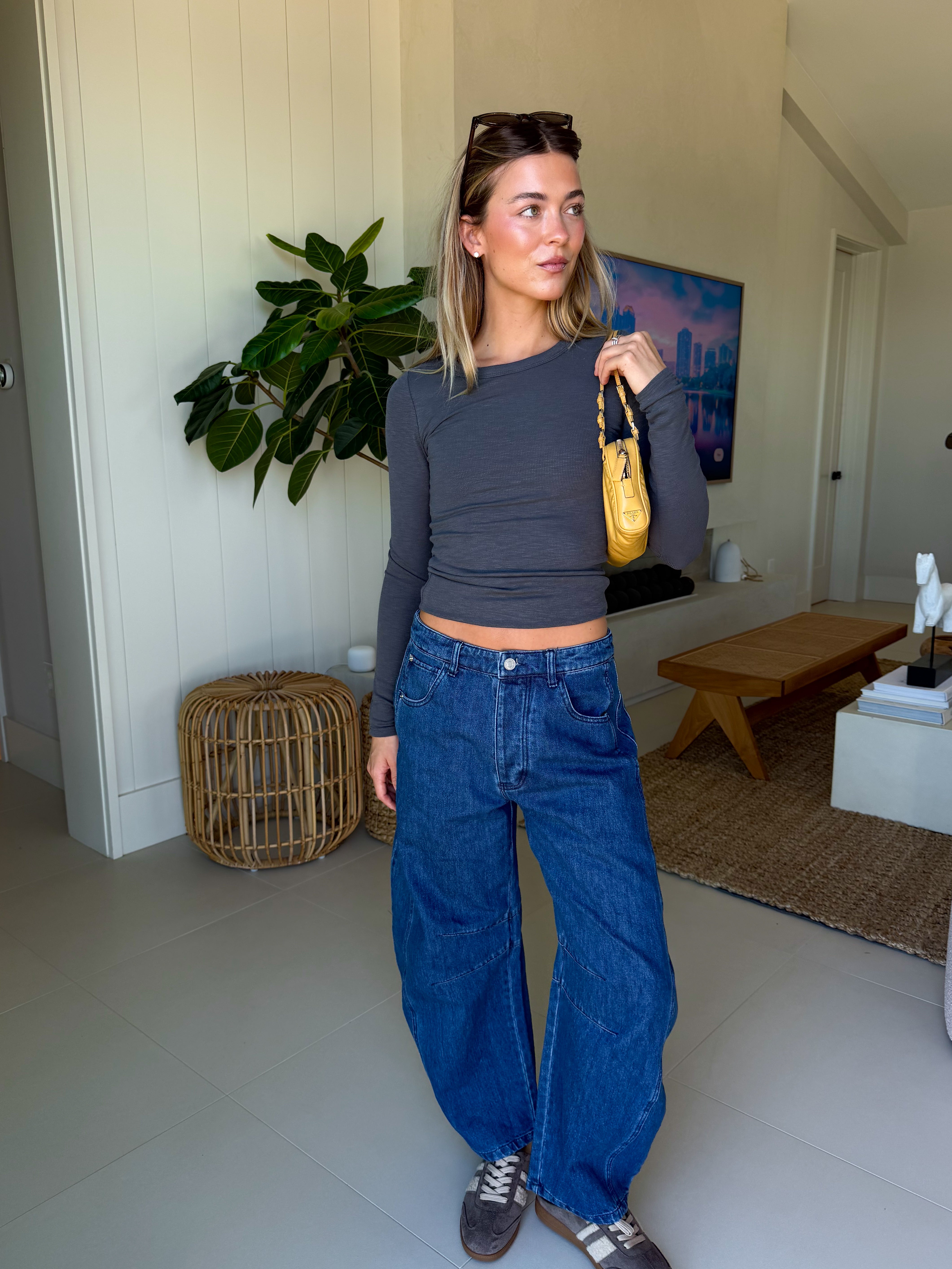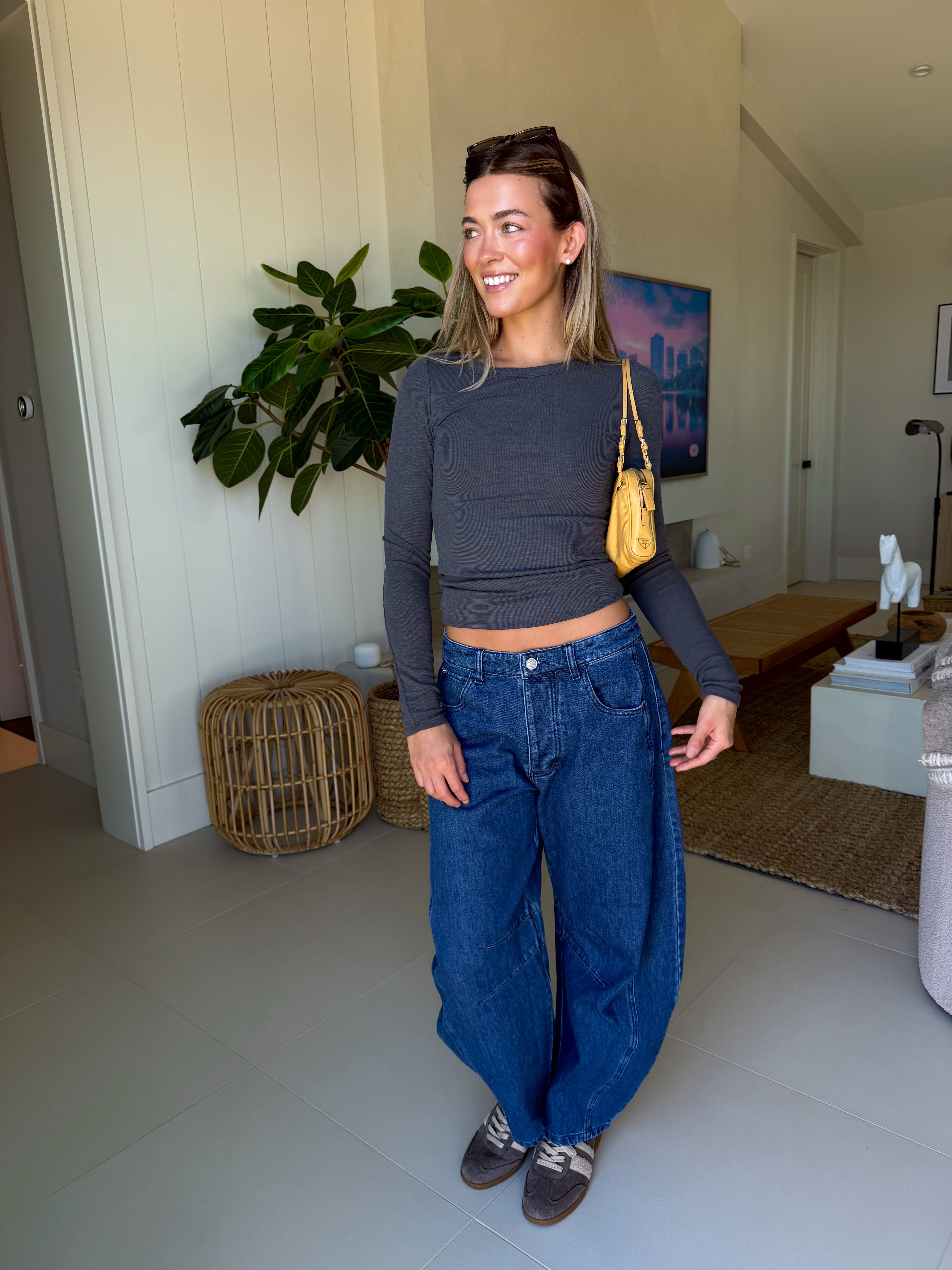 Embrace effortless elegance with the Madi Long Sleeve Top in Dark Grey. This thoughtfully designed piece combines a soft ribbed knit fabric that hugs your silhouette beautifully with generously long sleeves that add a contemporary touch. Perfect for layering or wearing solo, the Abbey delivers both comfort and style for your everyday wardrobe. Whether you're dressing up or keeping it casual, this versatile top supports your personal style with its flattering fit and cozy appeal.