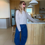 Elevate your everyday style with the Maggie Cable Knit Sweater in a timeless cream shade. This cropped silhouette features intricate cable braid crochet detailing that adds texture and visual interest to any outfit. The cozy knit construction provides warmth without bulk, making it perfect for layering or wearing solo. Whether you're dressing up for a night out or keeping it casual, this versatile sweater top works beautifully with jeans, skirts, or tailored trousers. Embrace comfort and sophistication in one piece.