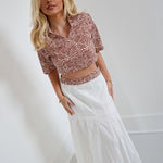Makayle Double Layer Pleated Maxi Skirt -Brown/Cream Zebra