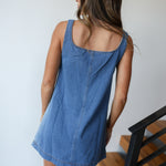 Mallory Denim Colorblock Shift Mini Dress - Denim 2 Tone