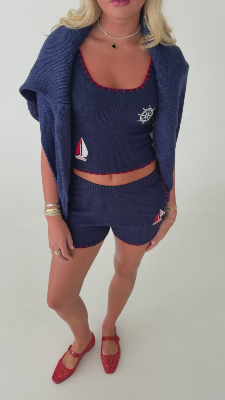 Nautical Wheel Knit Tank - Navy
