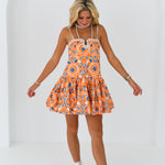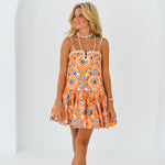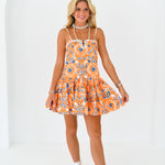 Olivia Sweetheart Dress - Orange/Blue