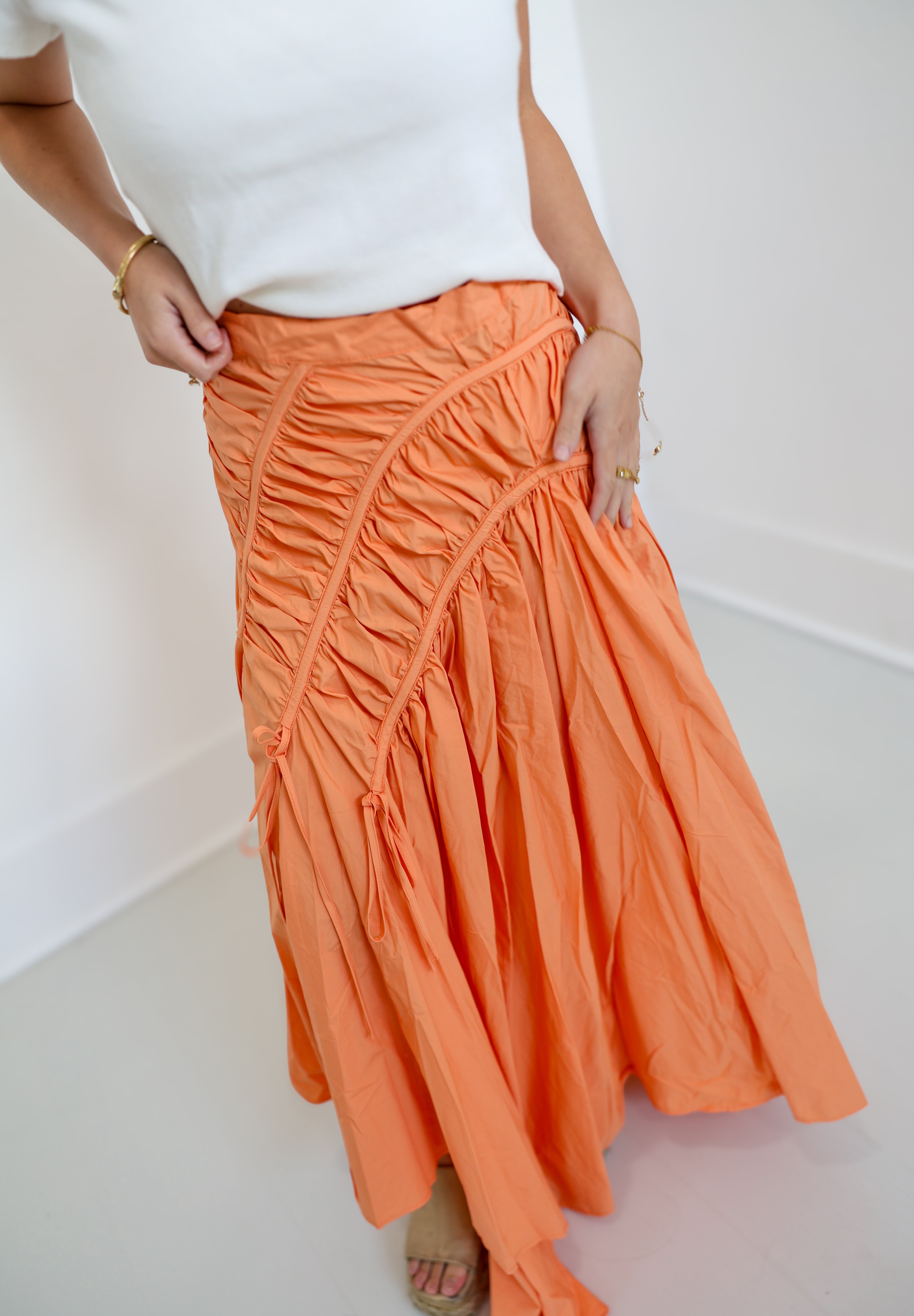 Riley Ruched Asymmetric Midi Skirt - Lt.Coral