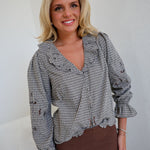 Rylan Ruffle Embroidered Blouse - Black