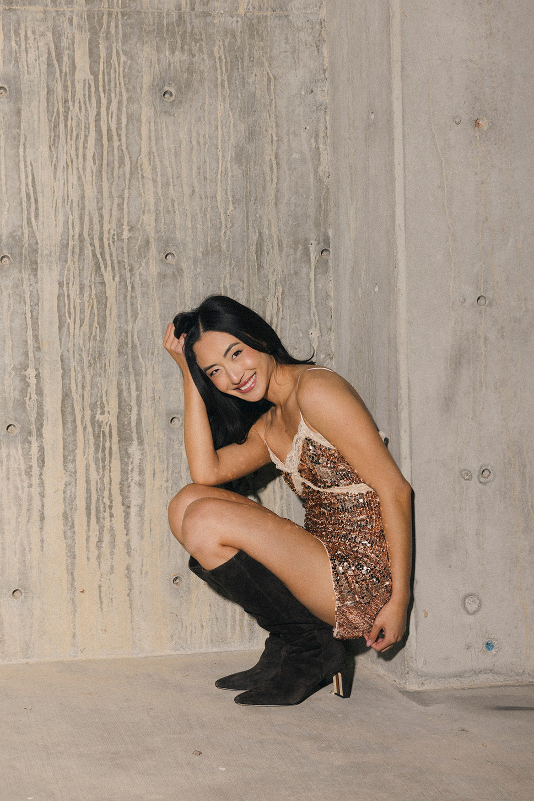 The Valoria Sequin Mini Dress in Dusty Rose is a stunning sleeveless piece that brings effortless elegance to any occasion. Featuring delicate lace trim detailing, this mini dress combines sparkle with sophistication. The soft dusty rose hue flatters a variety of skin tones, while the sleeveless silhouette keeps you cool and comfortable. Perfect for date nights, celebrations, or whenever you want to feel confident and radiant. Pair it with heels and your favorite accessories for a complete look that turns heads.