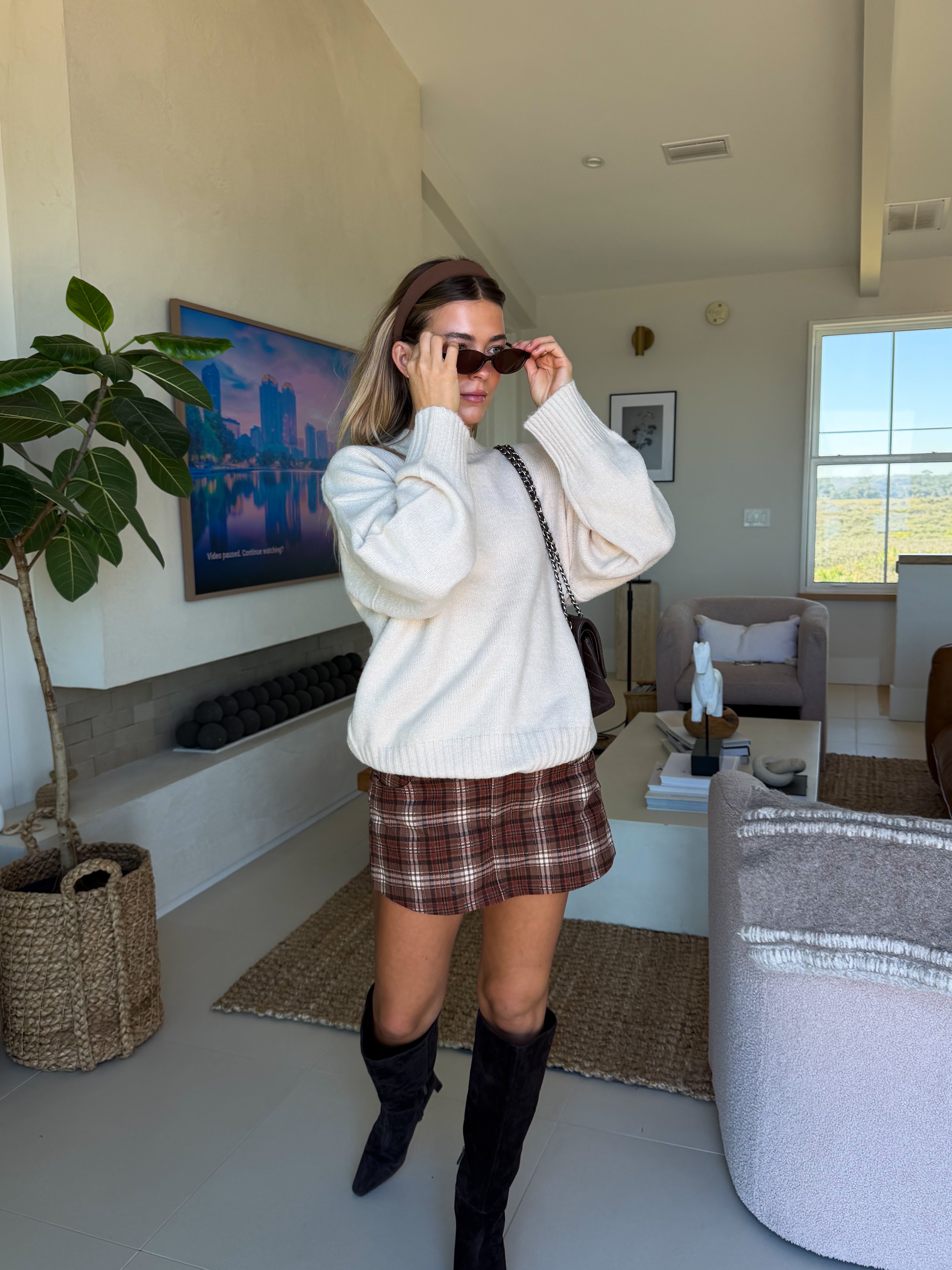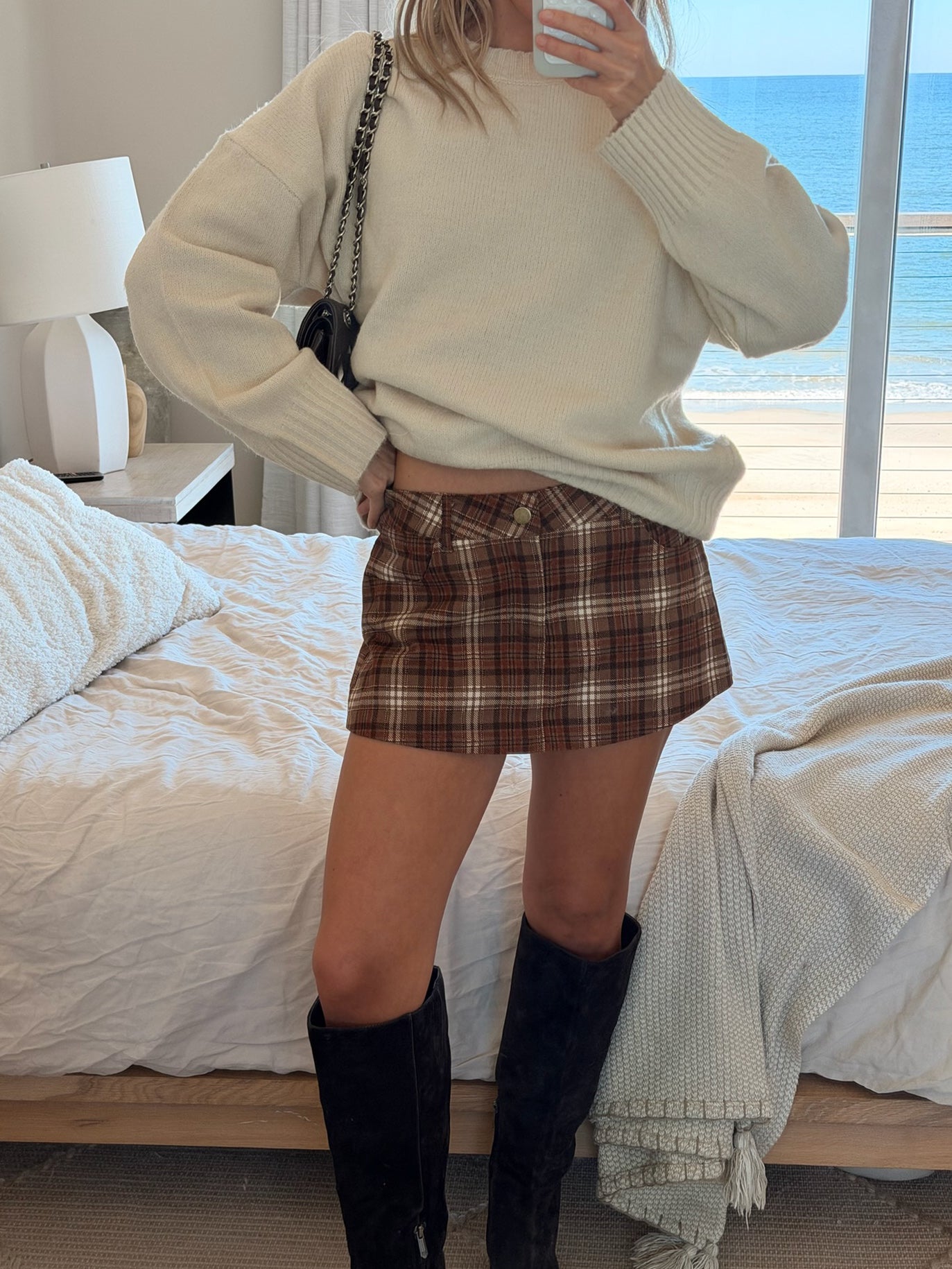 Victoria Mini Skort - Taupe Plaid
