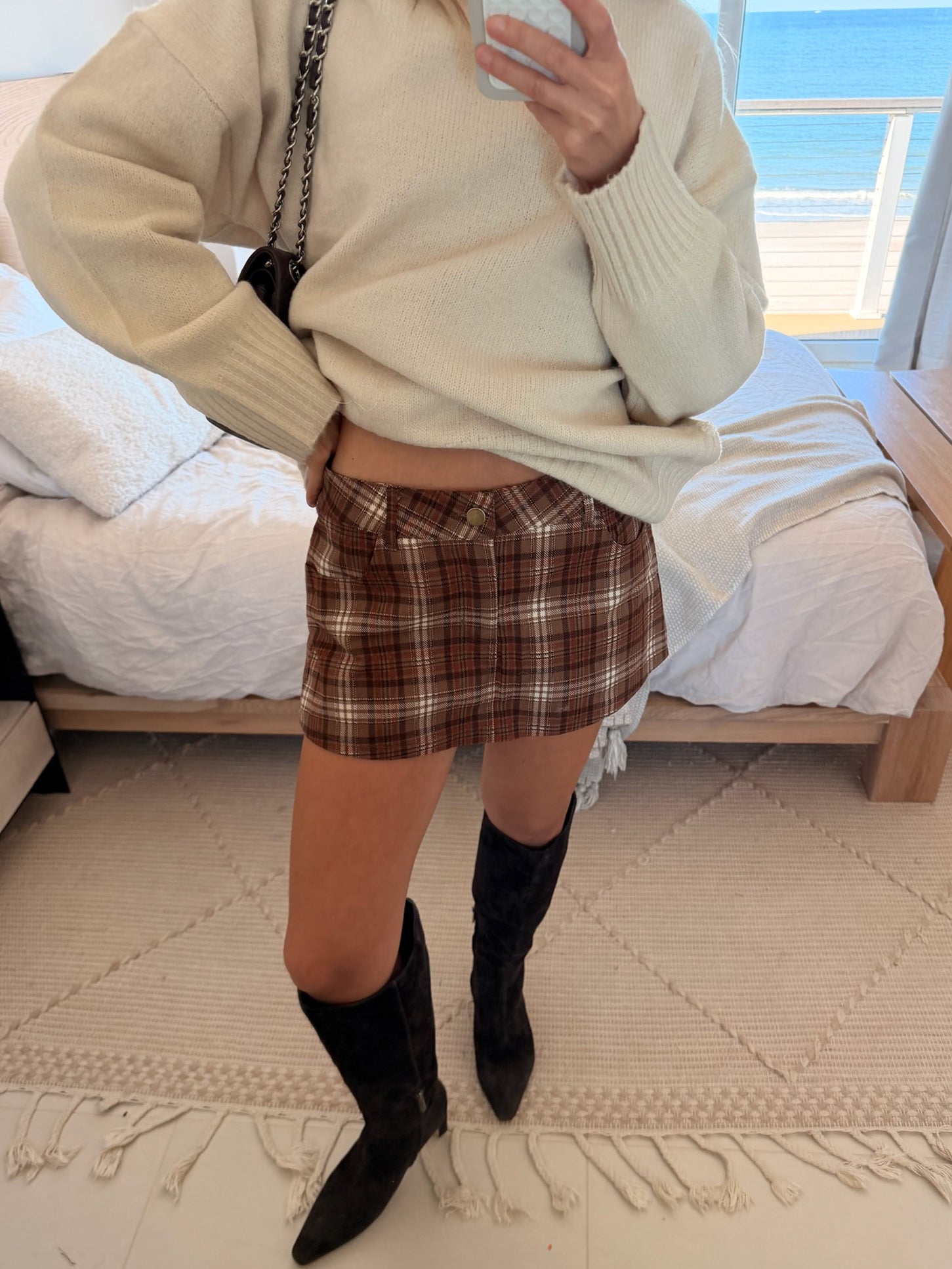 The Victoria Mini Skort in Taupe Plaid combines classic gingham style with modern comfort. Designed with a flattering low rise and convenient button front closure, this versatile piece transitions effortlessly from casual outings to weekend adventures. The timeless plaid pattern pairs beautifully with your favorite tops, making it a wardrobe essential that works hard to keep you looking put-together and feeling confident all season long.